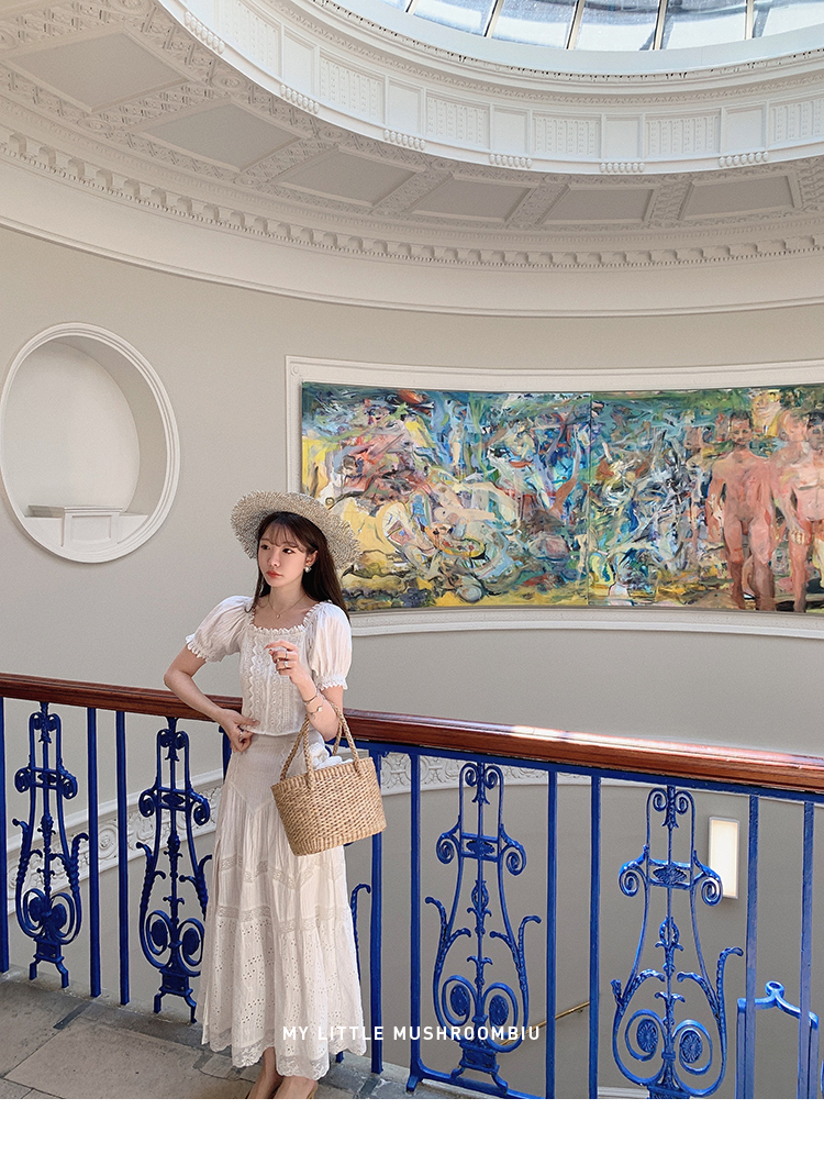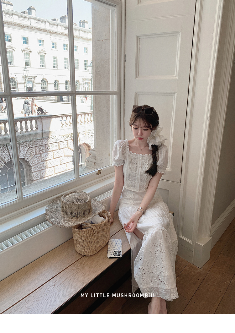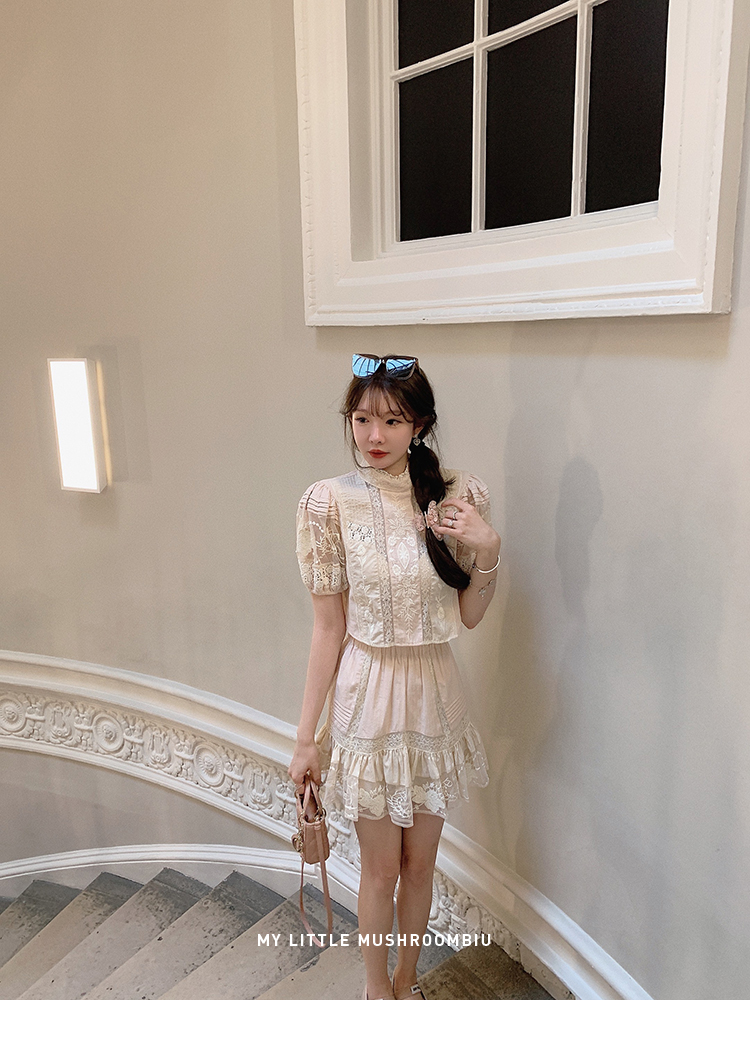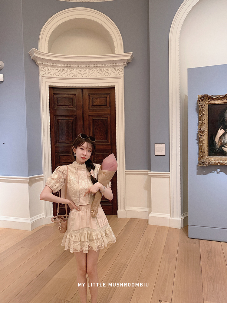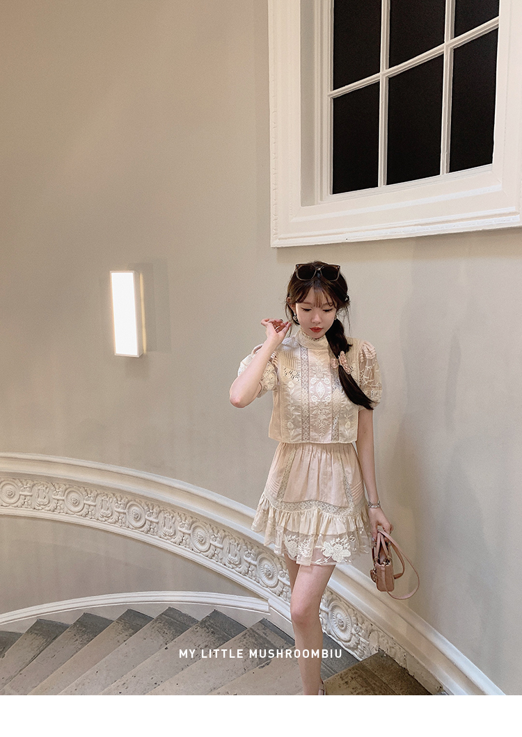 白茉莉/桃肉桂 半裙XS-S码 金蘑菇菇 June party浮绘子 生日裙系列/仙气刺绣上衣半裙套装