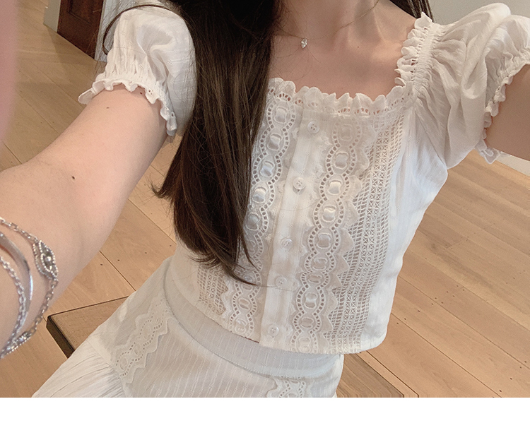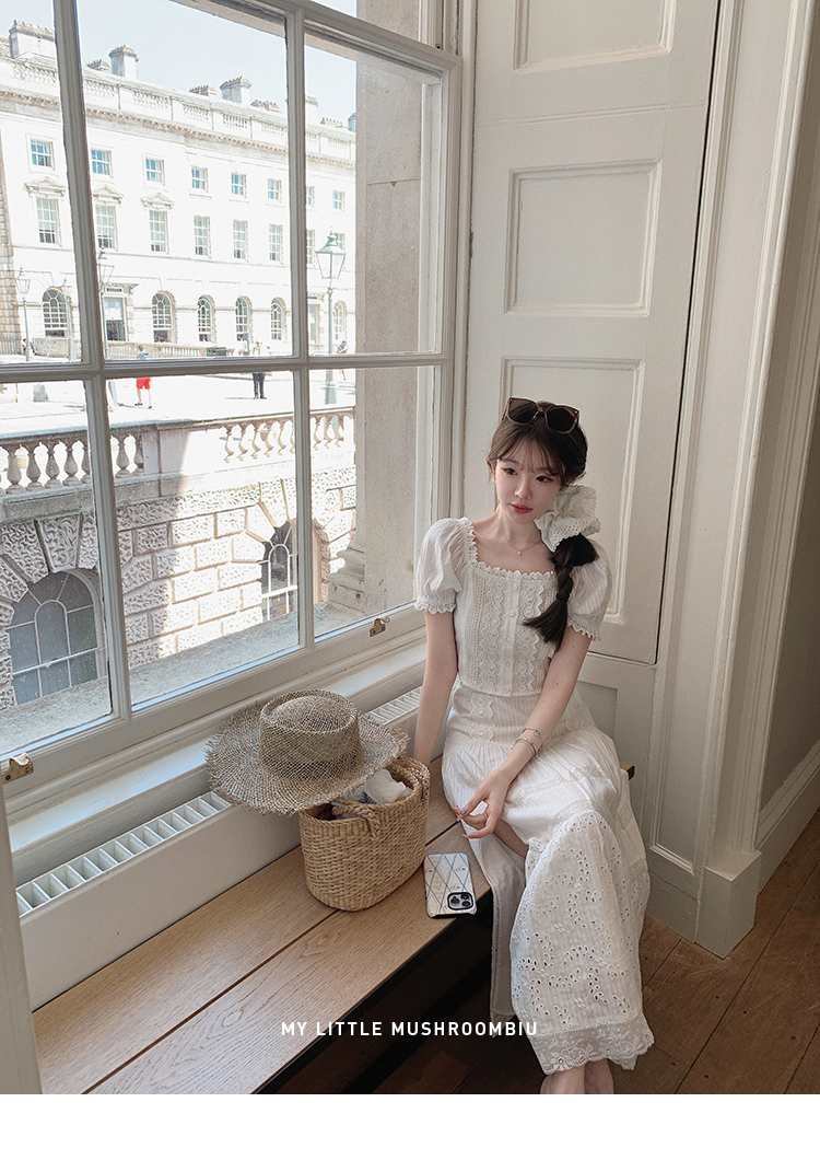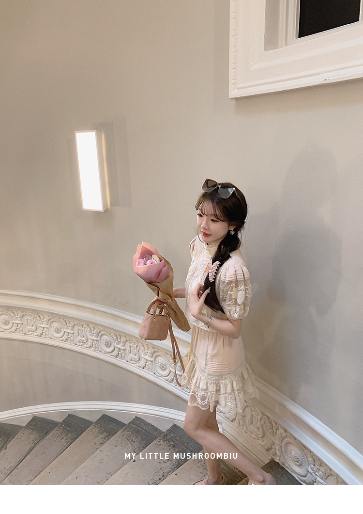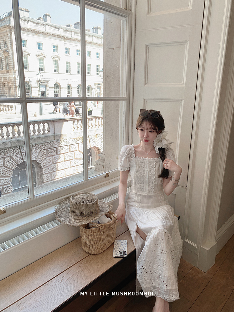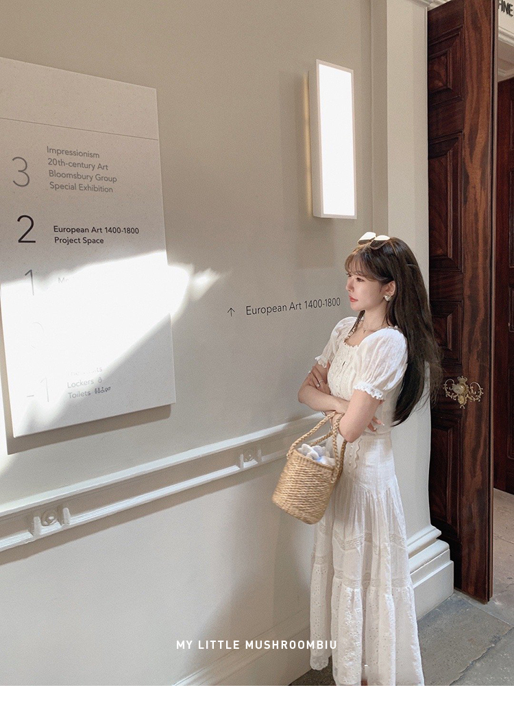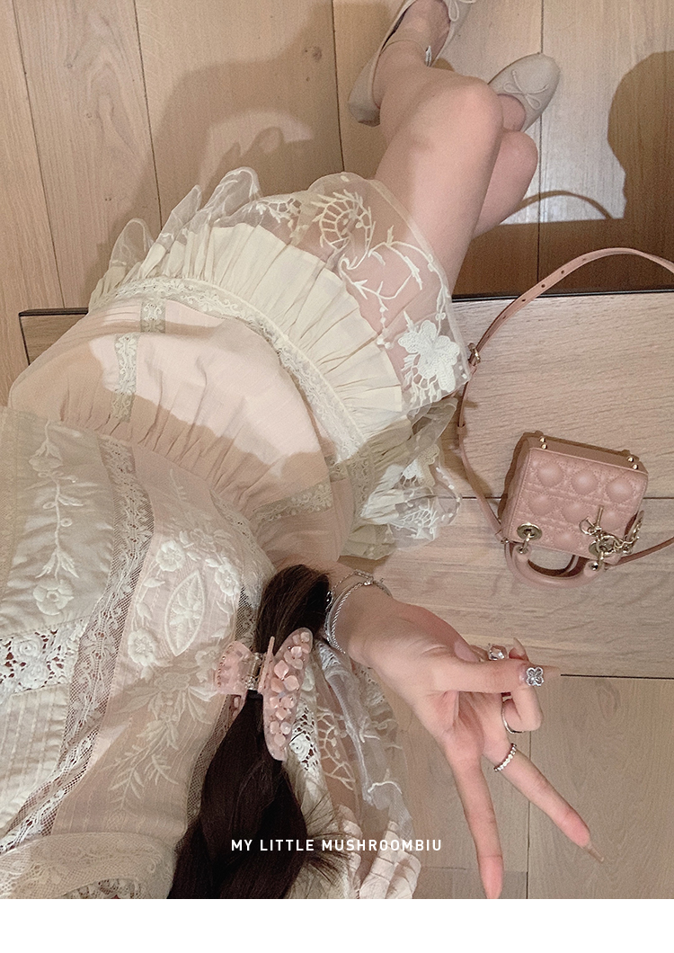 白茉莉/桃肉桂 半裙XS-S码 金蘑菇菇 June party浮绘子 生日裙系列/仙气刺绣上衣半裙套装