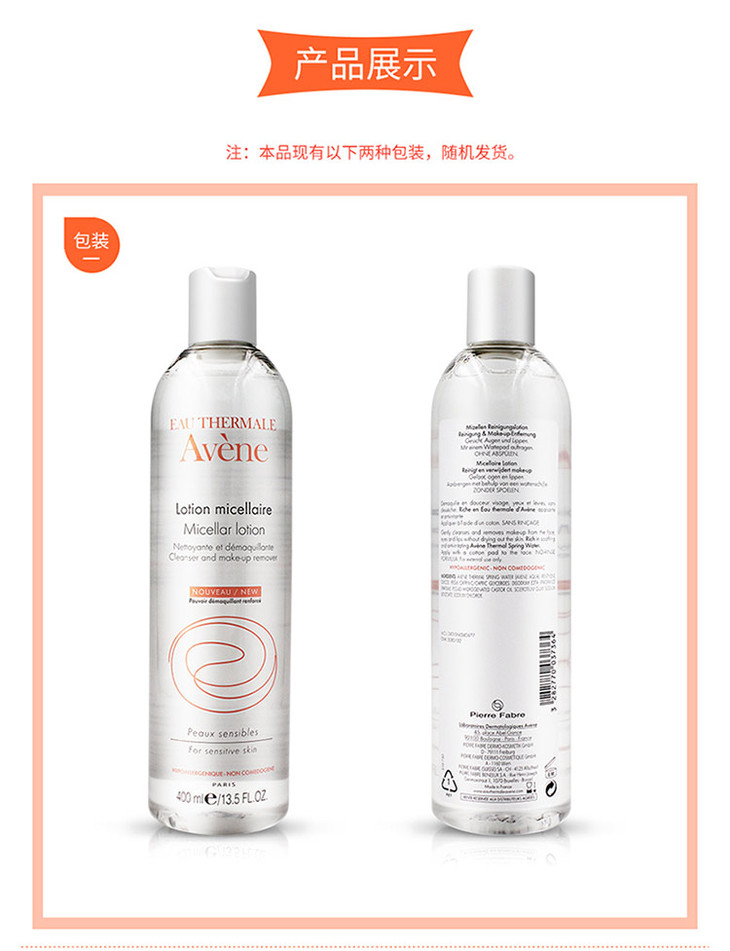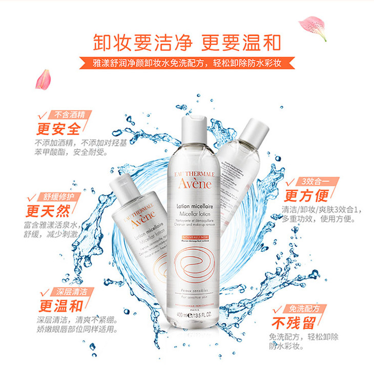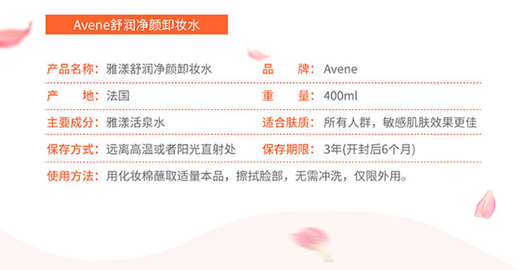 【荷兰直邮】Avene雅漾法国进口舒润净颜卸妆水爽肤温和免洗400ml