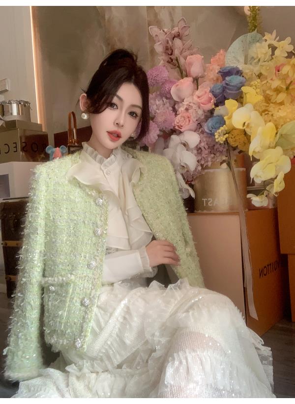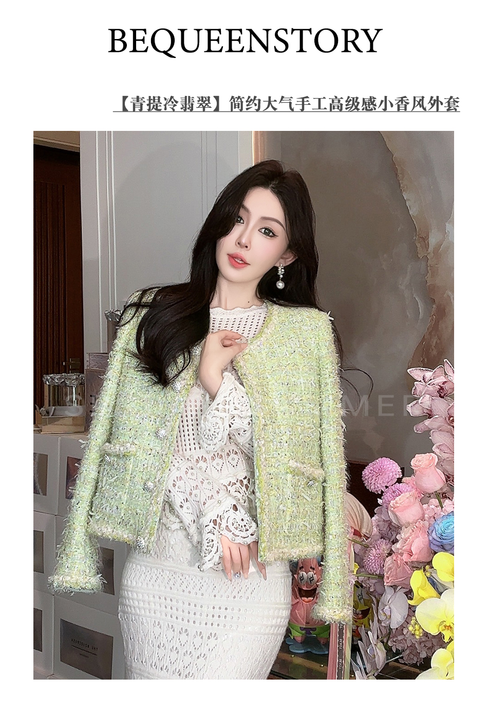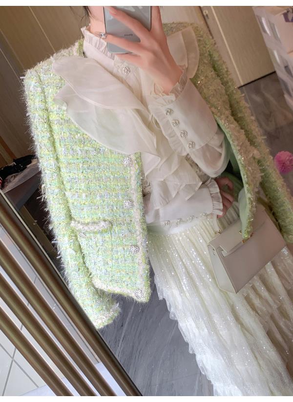 BeQueenStory【青提冷翡翠】简约大气手工高级感小香风外套女