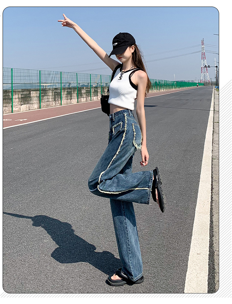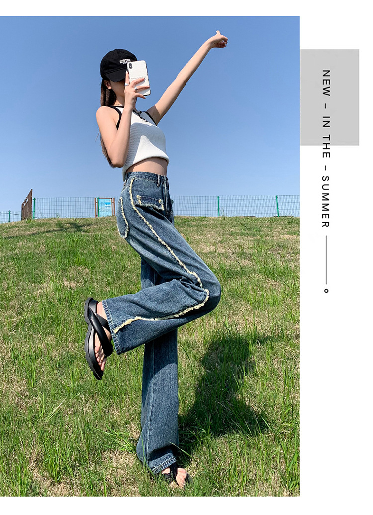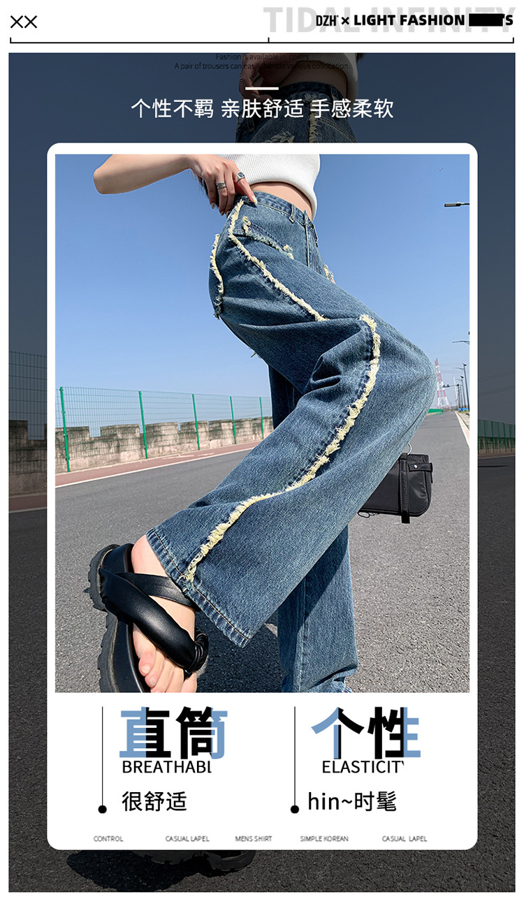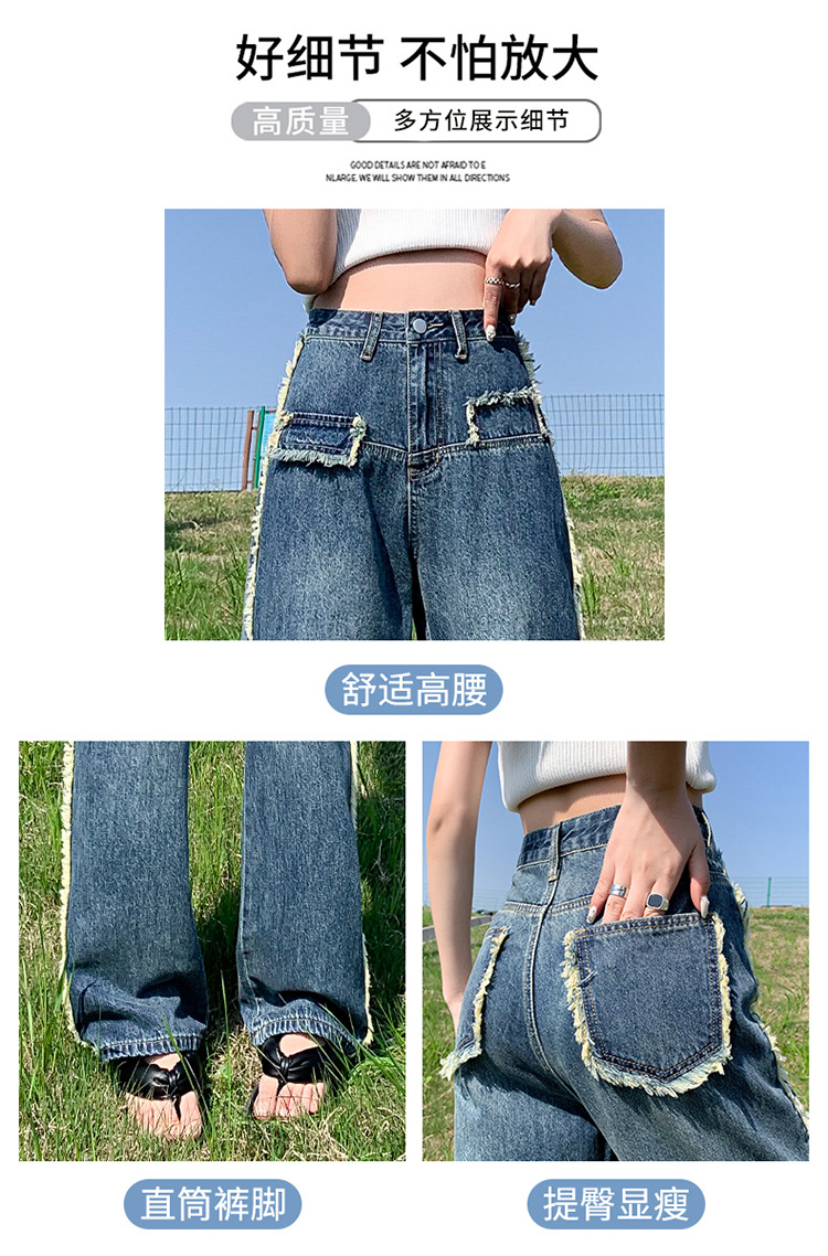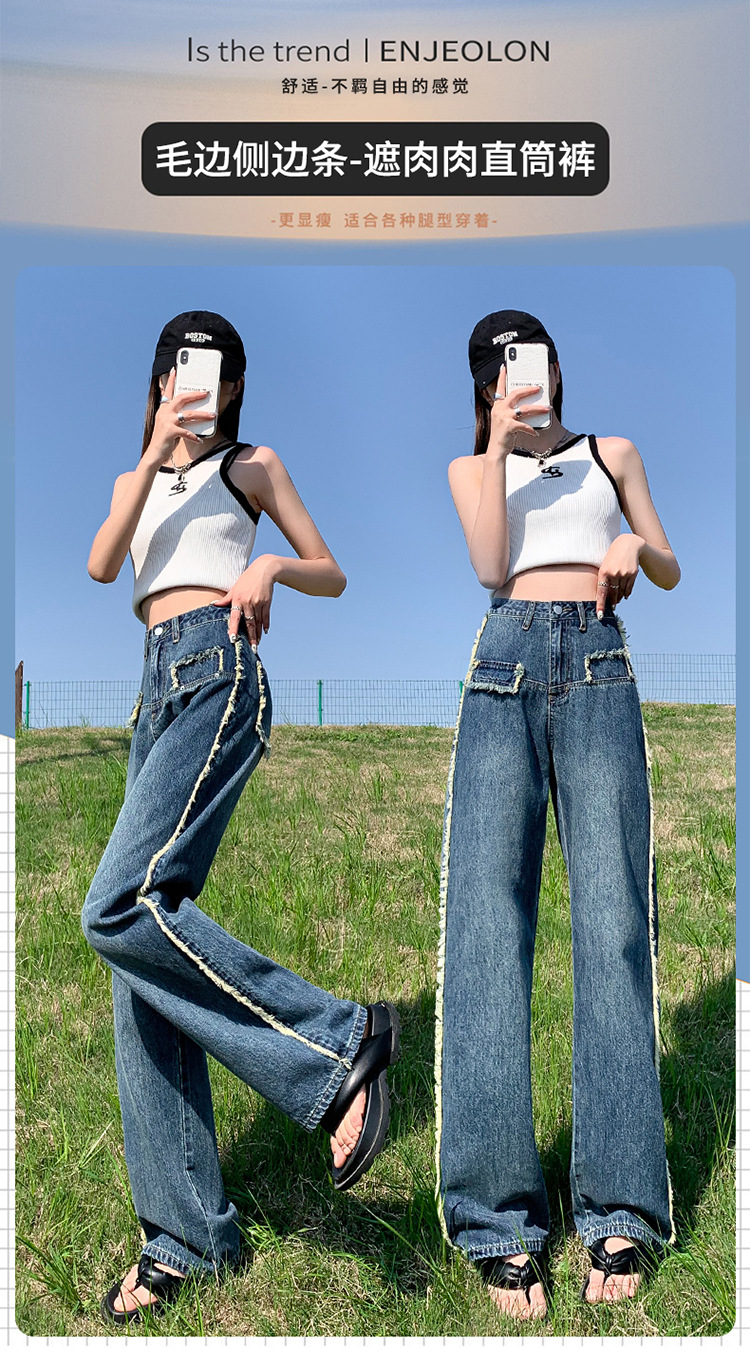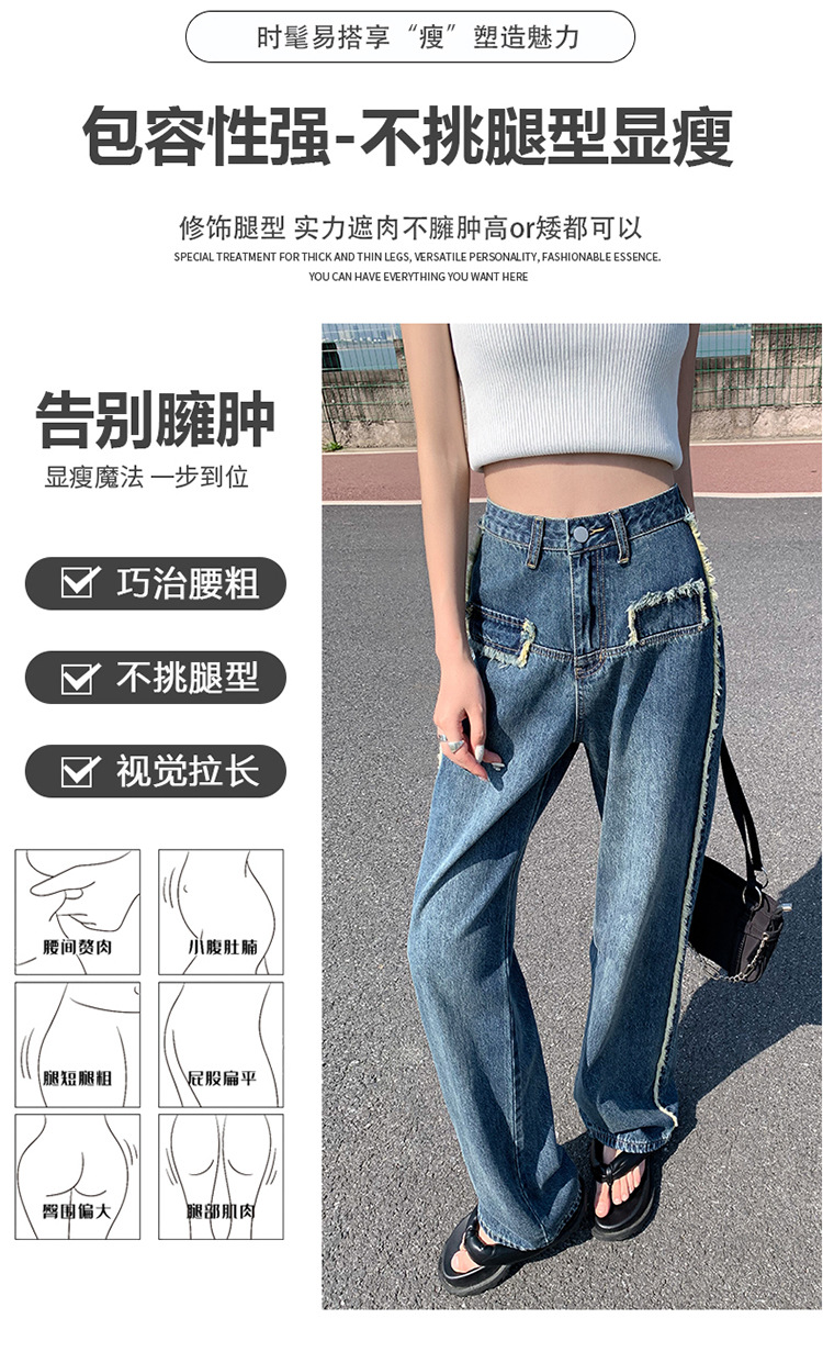 春季新款【柔纱软 直筒牛仔裤女 个性设计】九分垂感 百搭时尚 小个子裤