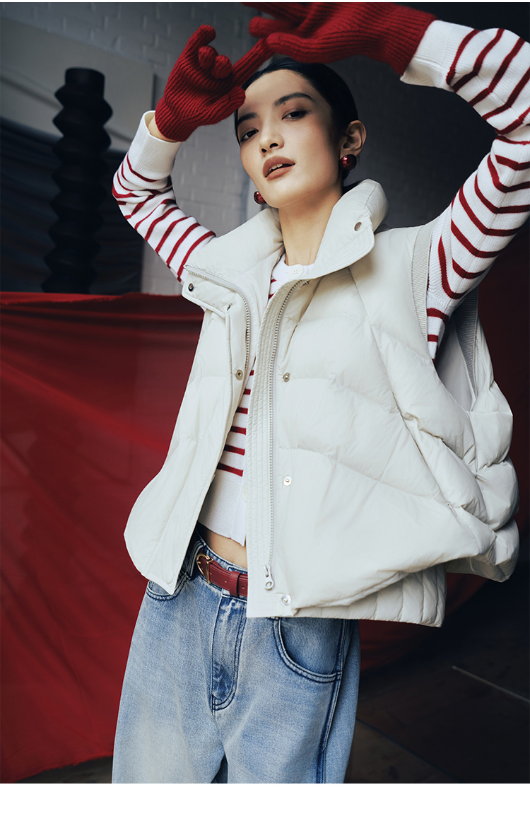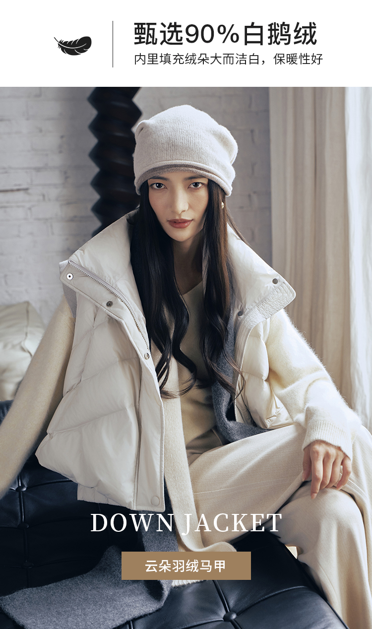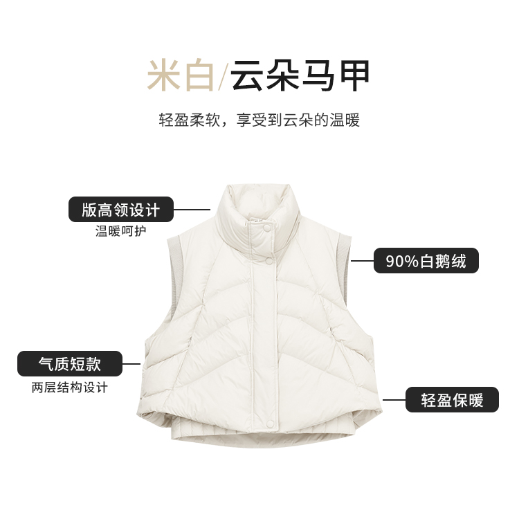 【商场同款】CNO5003 “ 云朵马甲 ” 甄选90白鹅绒轻盈、保暖 假两件层设计 减龄好看