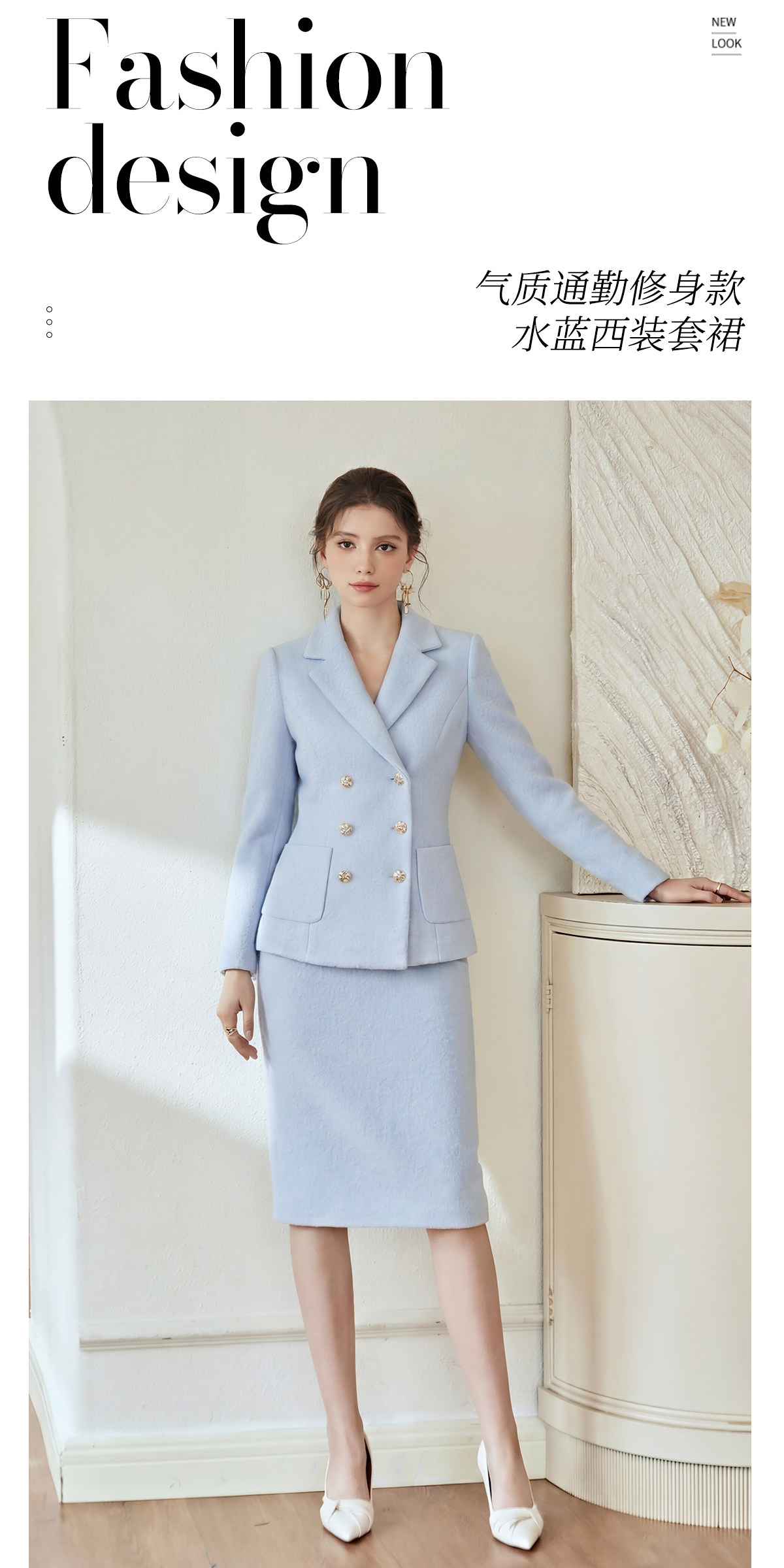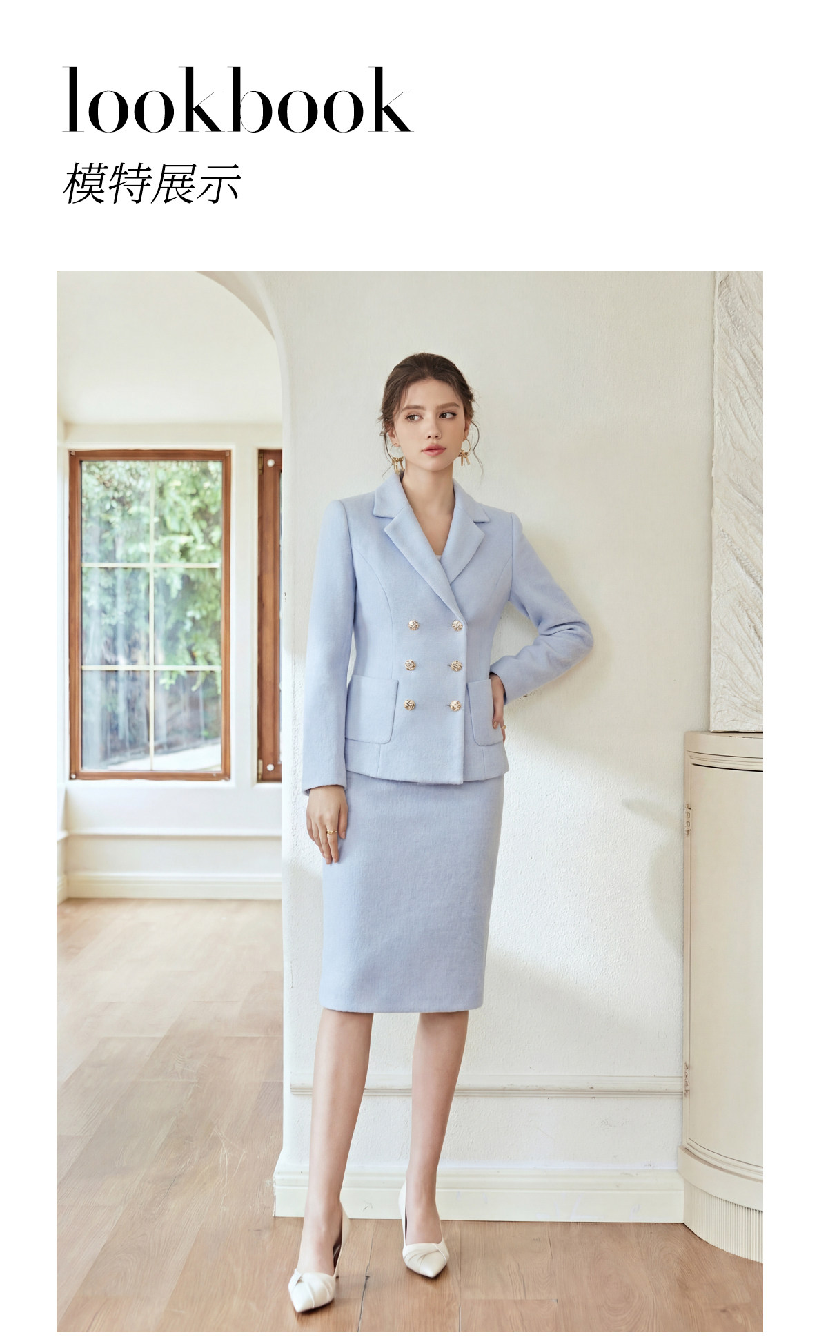 IWY/气质蓝色小香风西装套裙女2026春季新款美容院接待职业正装1024CS103