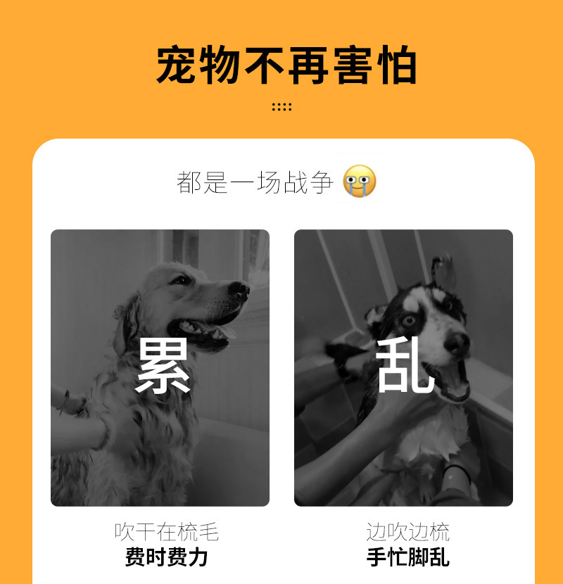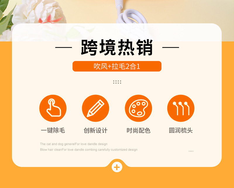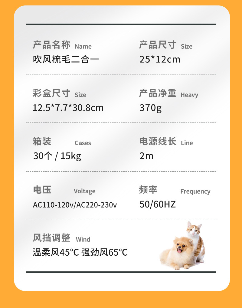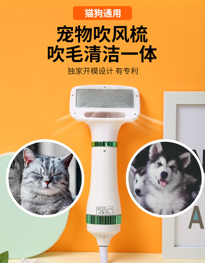 宠物2合1吹风梳 多功能电动热风梳 低音底噪 圆润梳头美容清洁