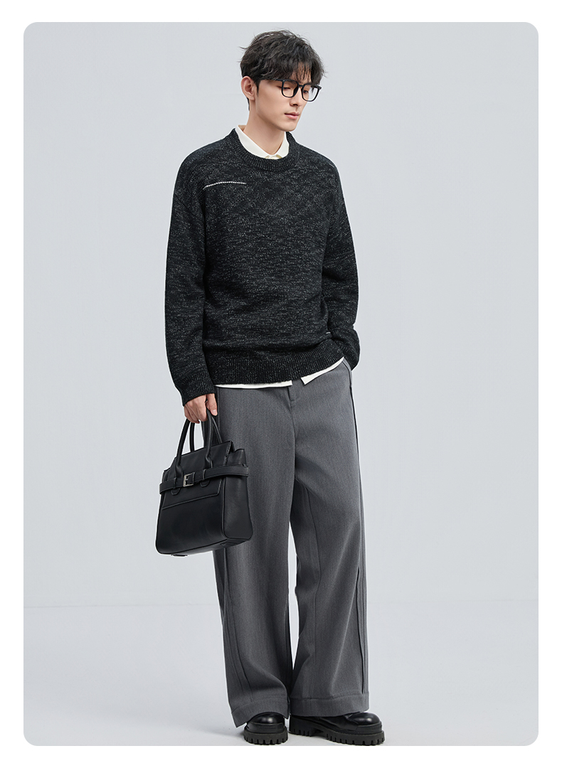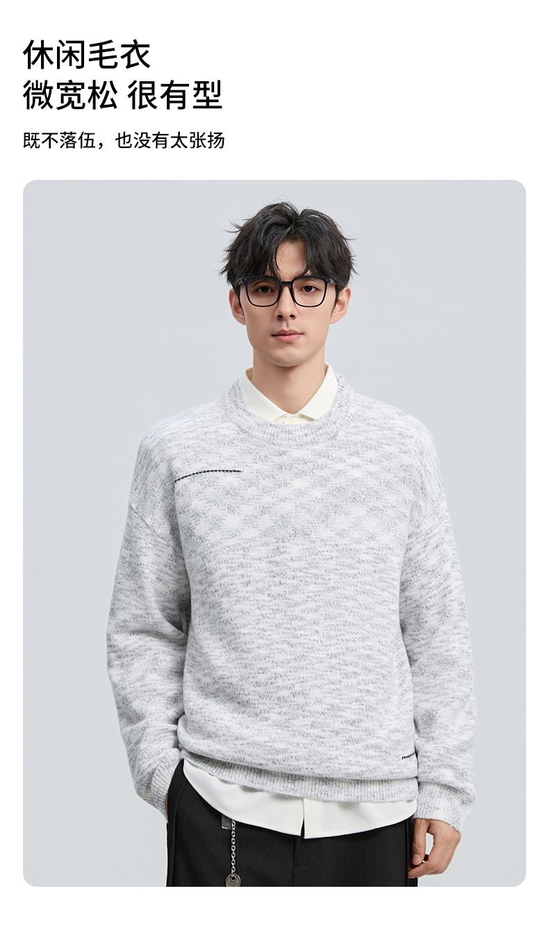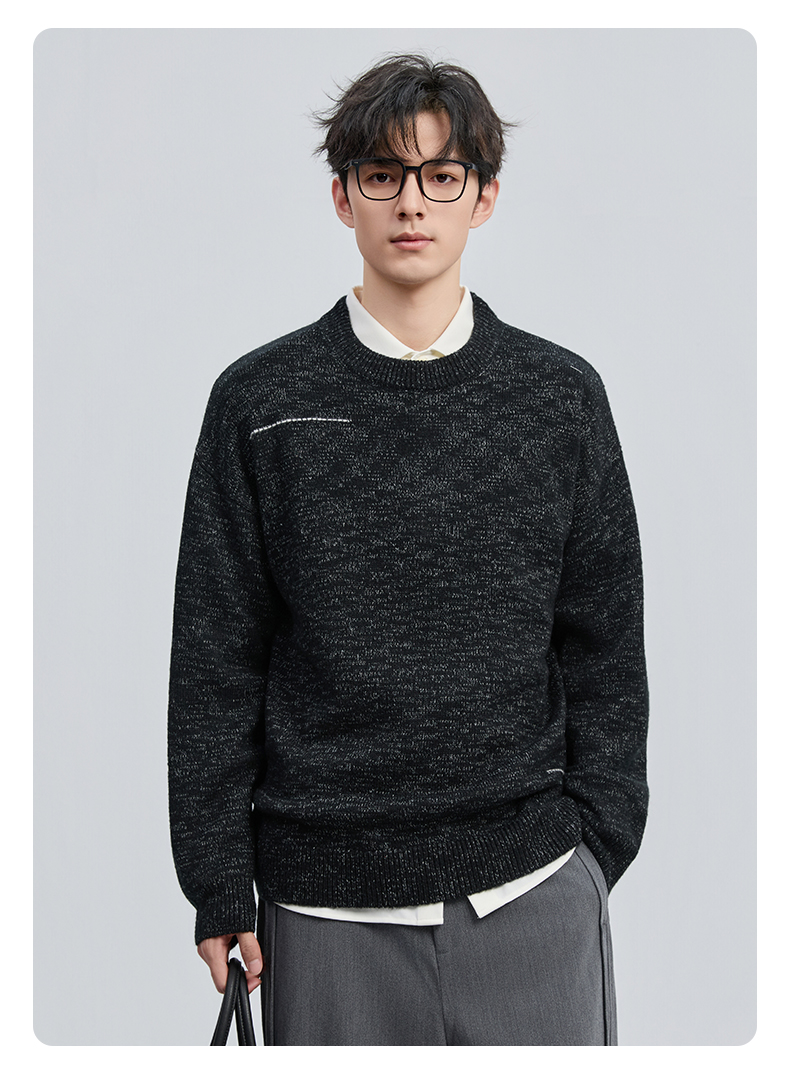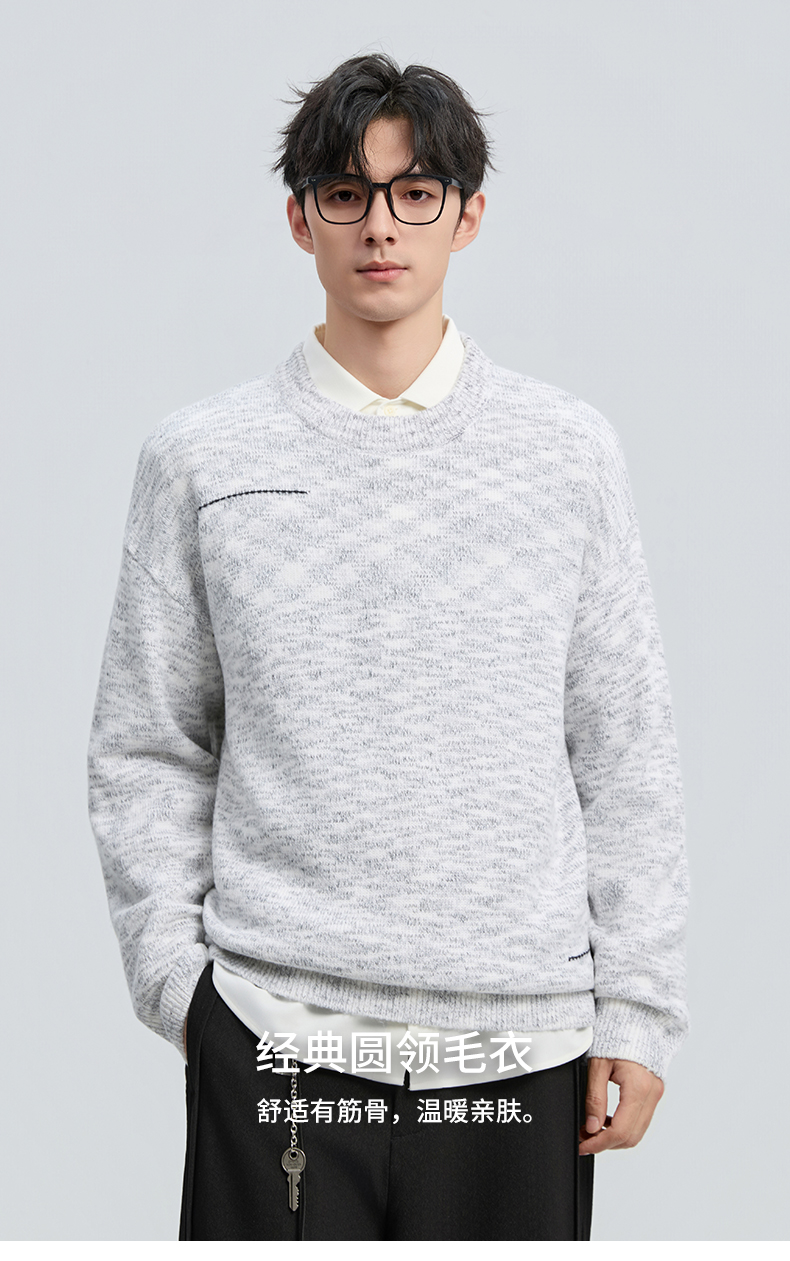 贝纳川冬季新品双纱圆领套头毛衣ECF416002