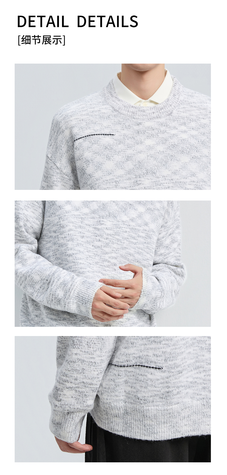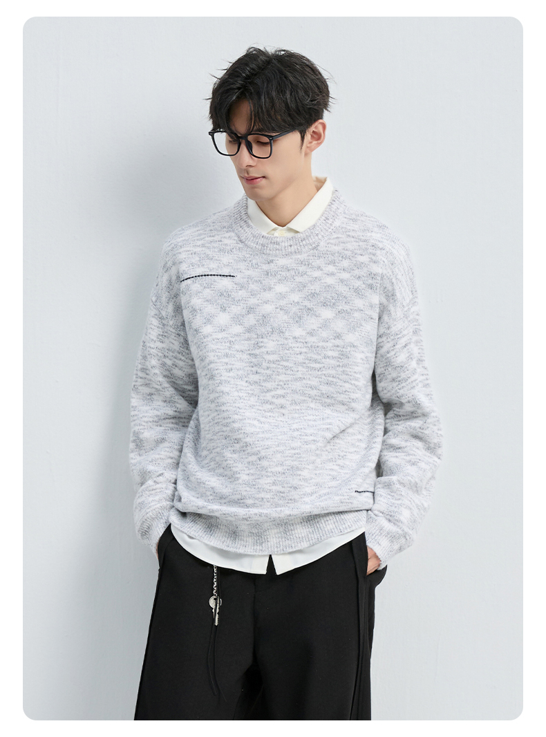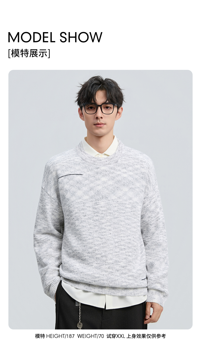 贝纳川冬季新品双纱圆领套头毛衣ECF416002