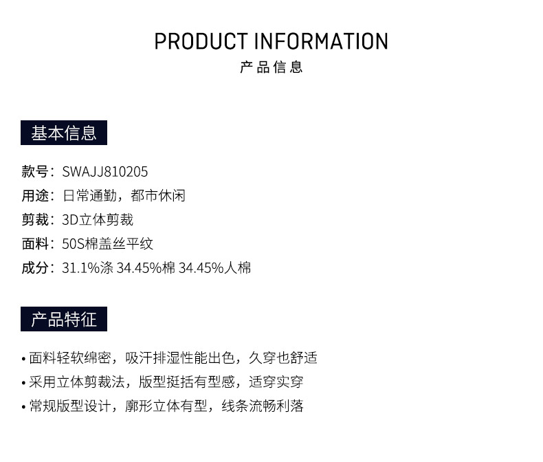 Senselead森力/男式短袖棉T恤 SSAJI81163