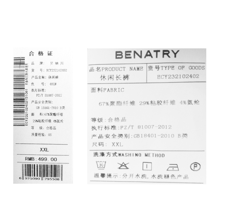 贝纳川男士休闲裤薄款宽松直筒长裤ECY232102402