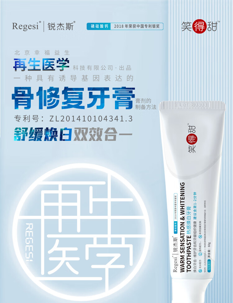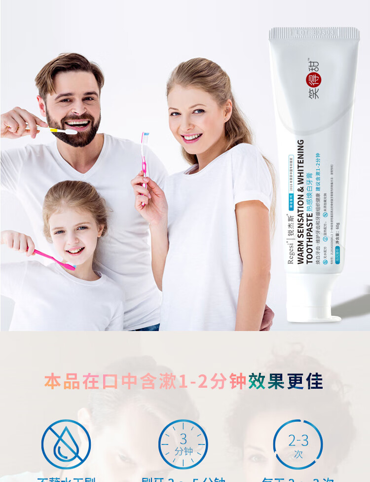 锐杰斯(Regesi)锐杰斯笑的甜热感焕白牙膏60g/盒再生硅热感焕白牙膏清新口气亮白牙齿修护牙釉质无氟牙龈出血敏感 1支 【体验装】