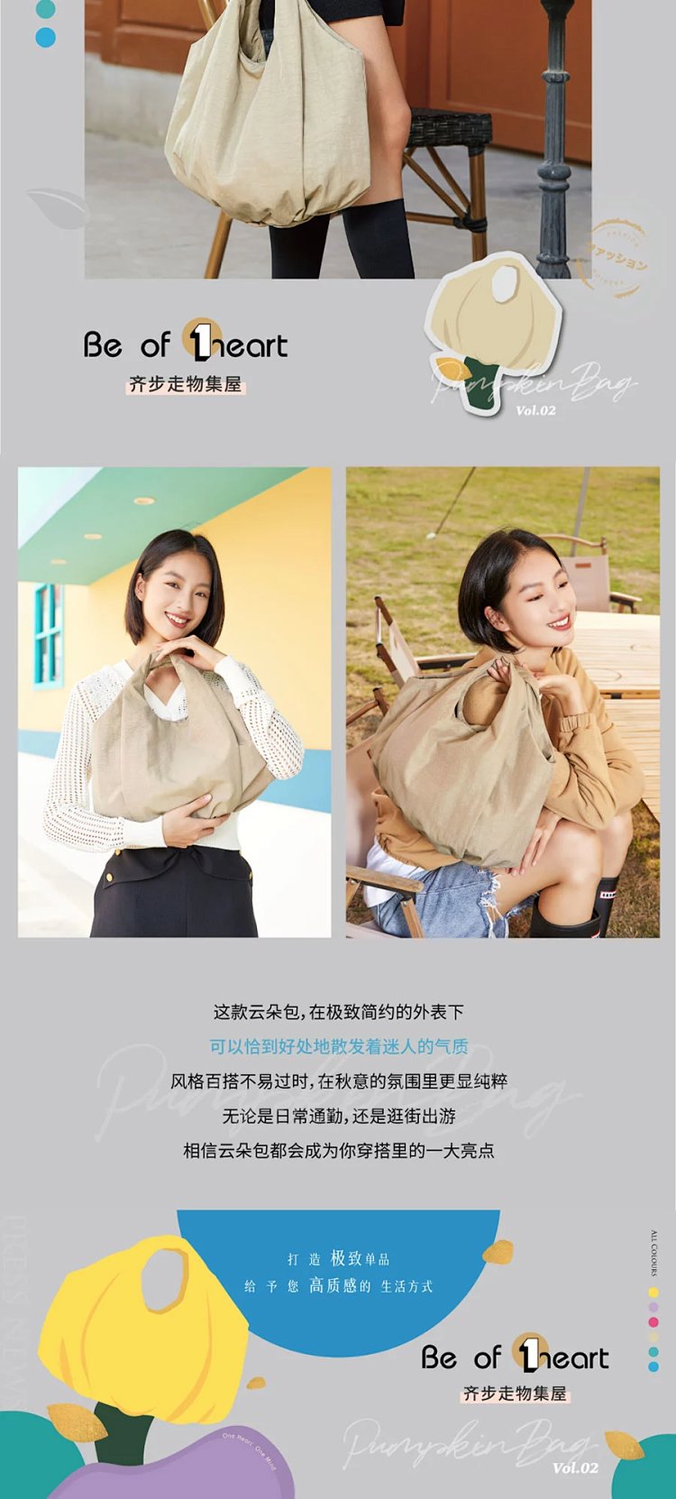 【Be Of①heart】原宿南瓜风云朵包 自然随性的设计优雅又简练