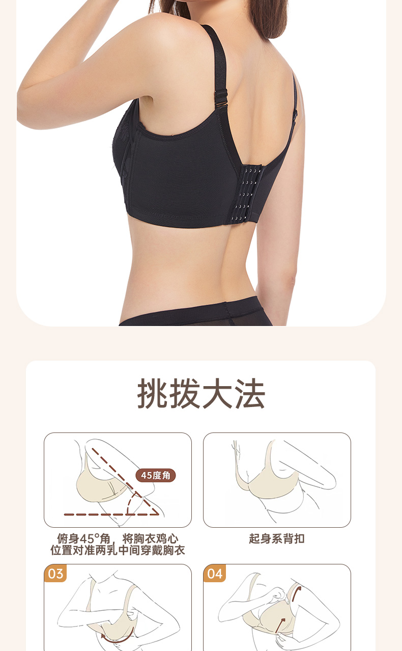 高弹无痕舒适文胸 超薄防凸兔耳婴儿棉内杯 大胸显小无钢圈 网纱抹胸防走光 无痕隐形 柔软舒适不勒身