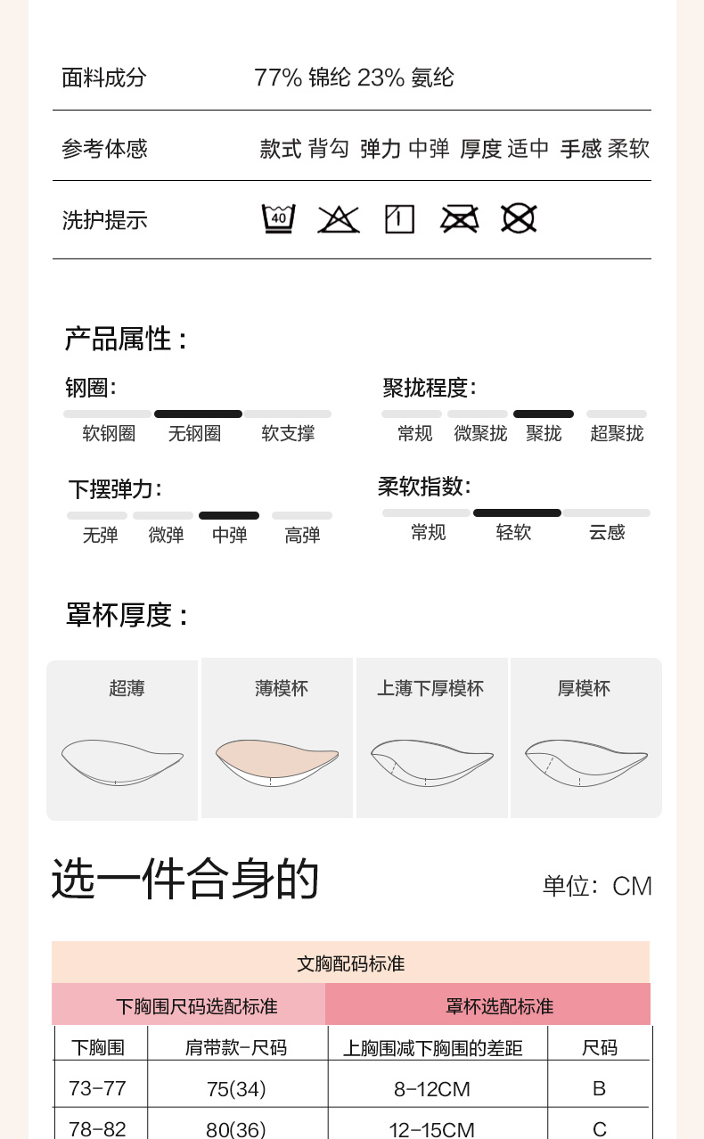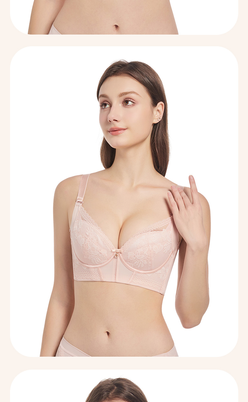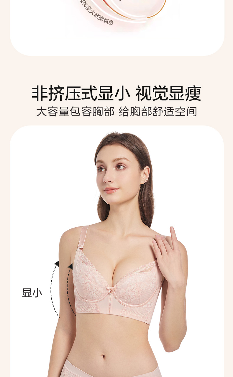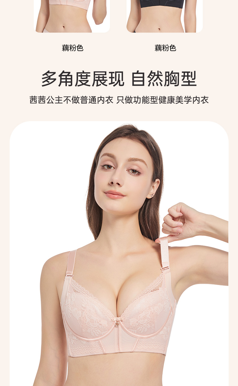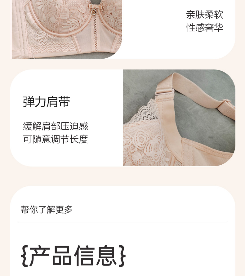 轻奢法式调整型文胸 软钢圈聚拢 柔软承托不下垂 夹棉薄杯 感温记忆3D立体数码印花蕾丝