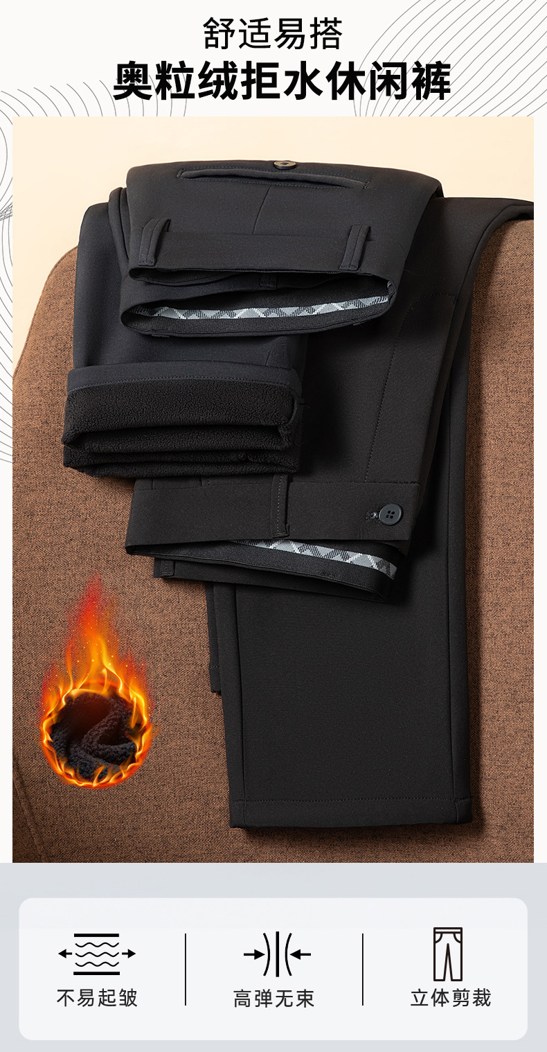【奥粒绒】圣得西男士商务休闲裤子男秋冬年直筒加绒长裤