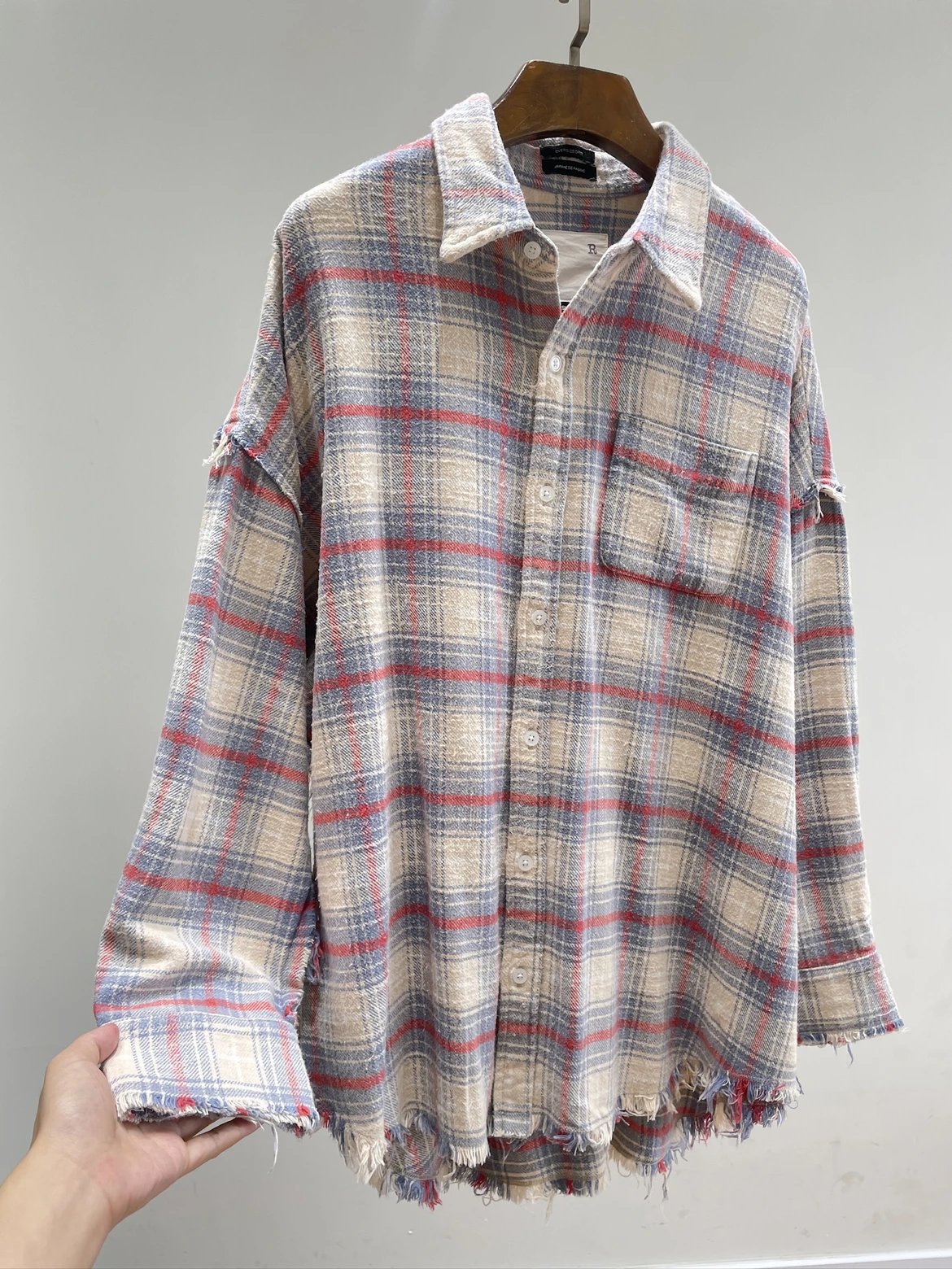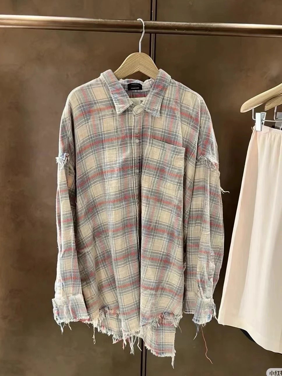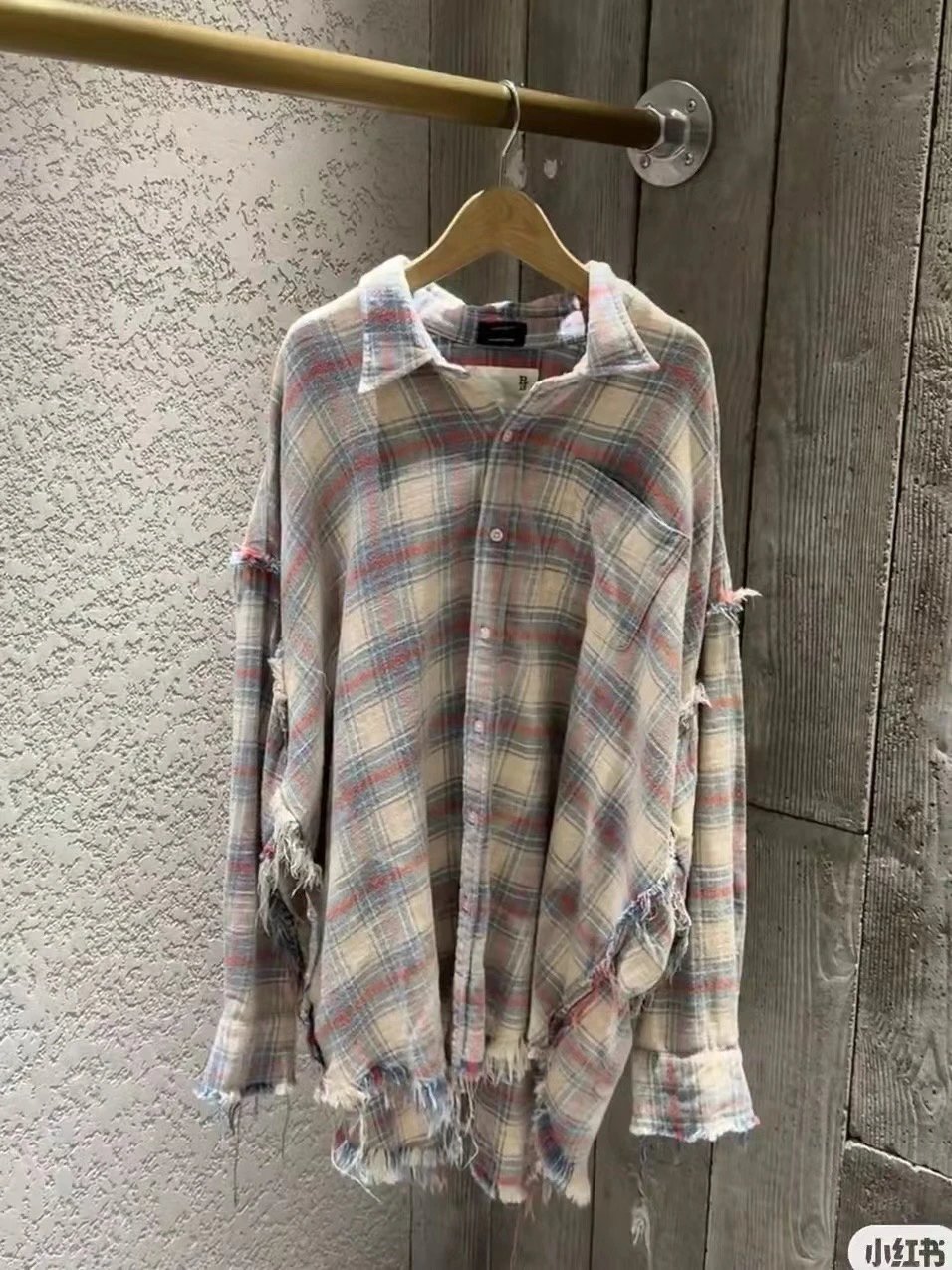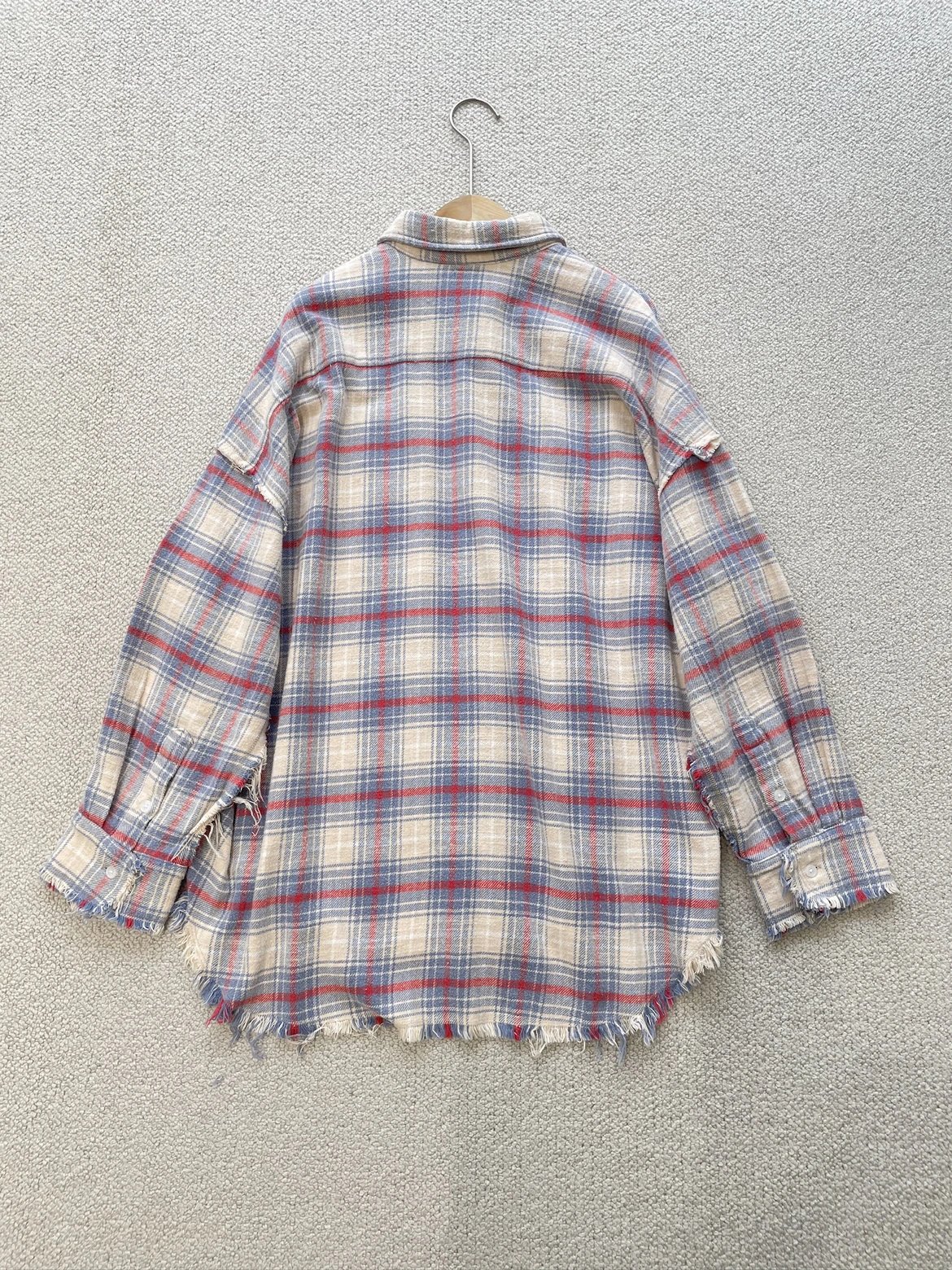 重磅纯元 R13衬衣 毛边破坏格纹衬衫 落肩格纹长袖 杨幂IU同款
