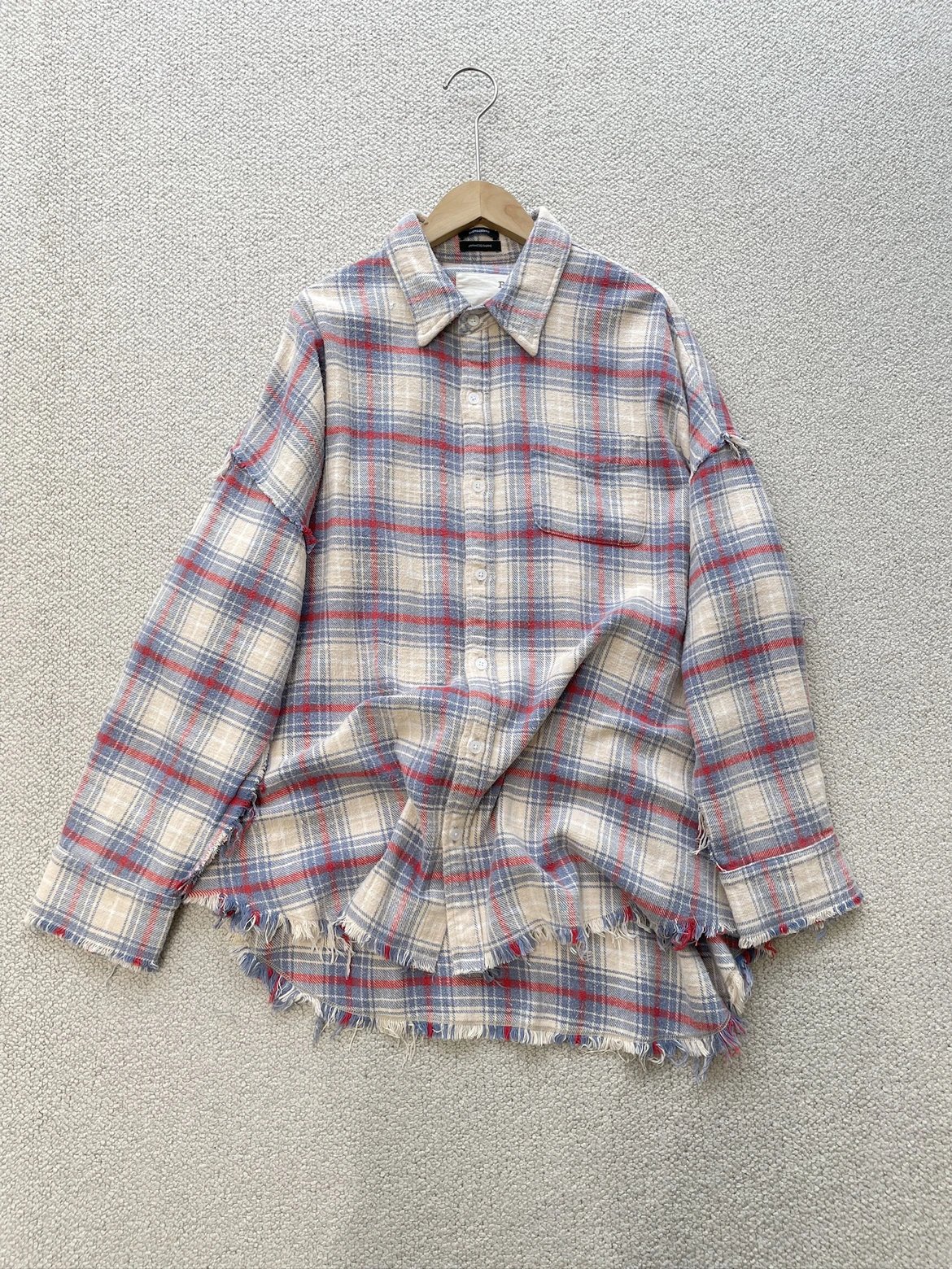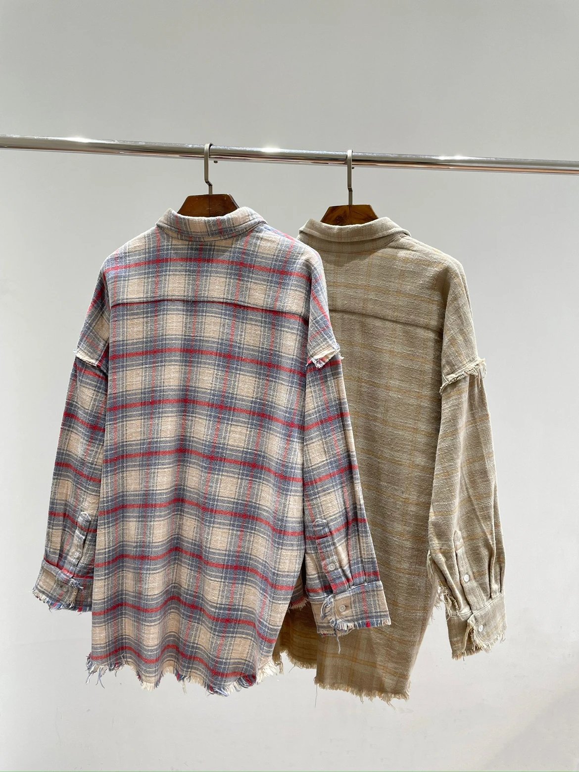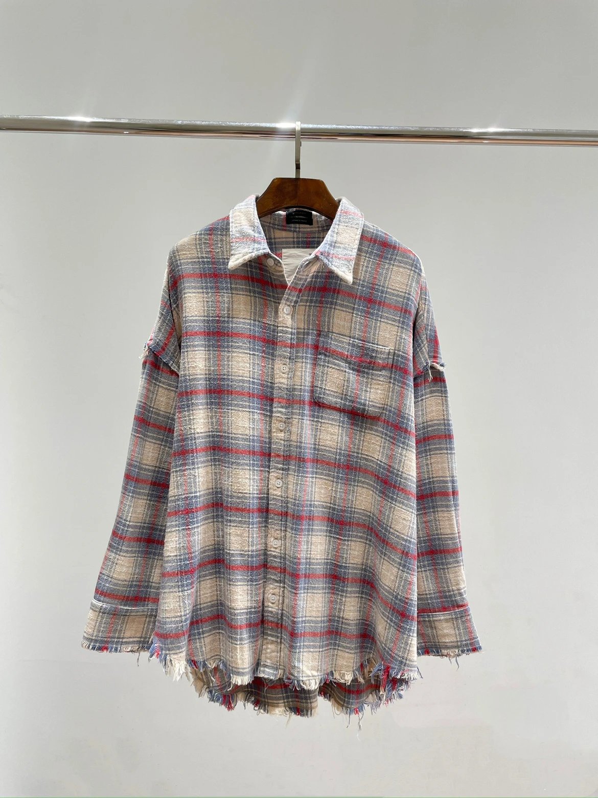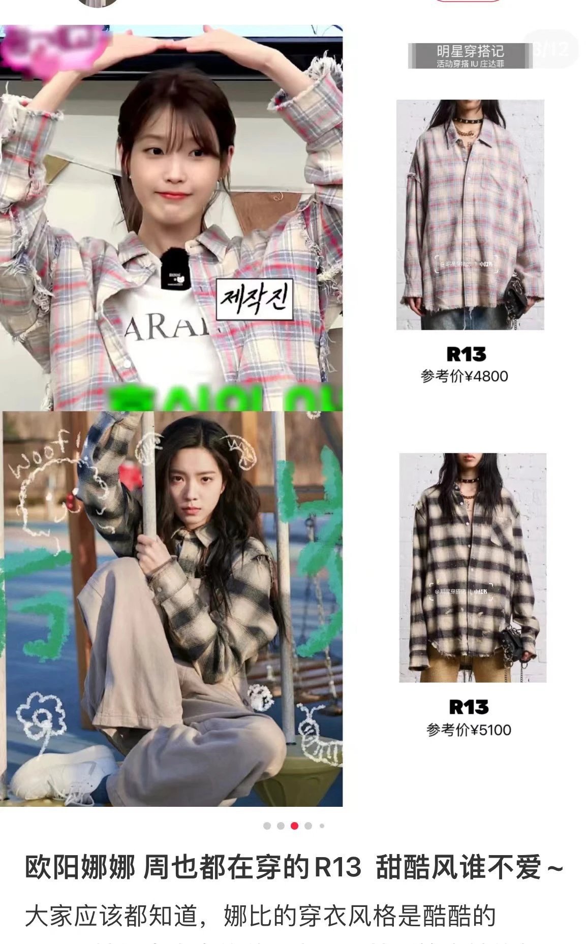 重磅纯元 R13衬衣 毛边破坏格纹衬衫 落肩格纹长袖 杨幂IU同款