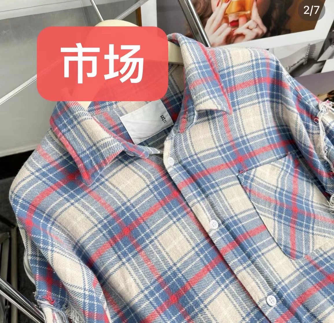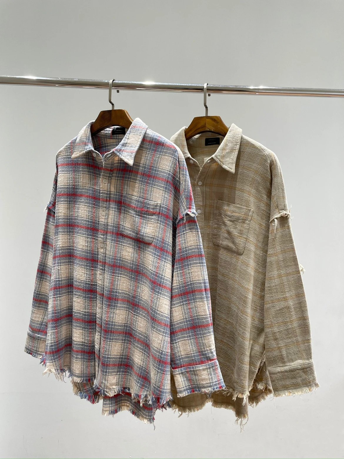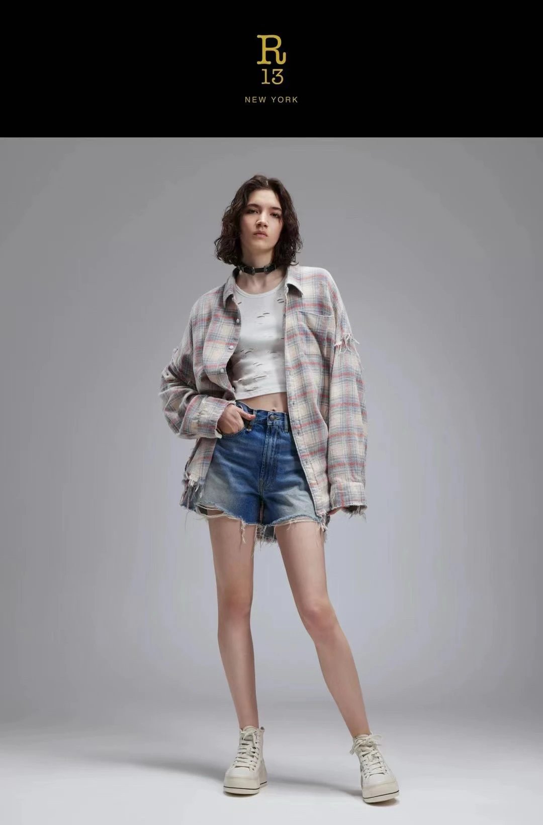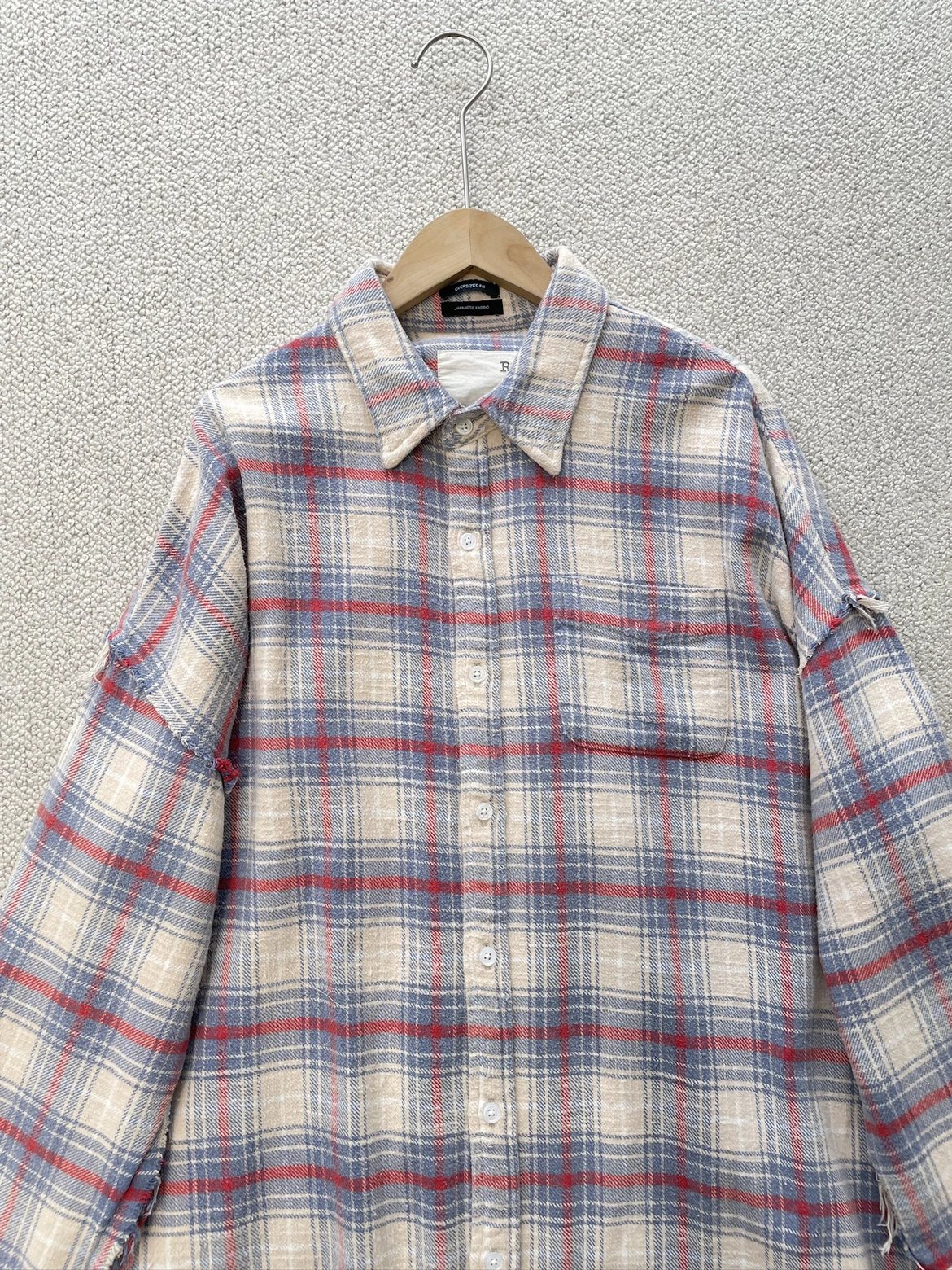 重磅纯元 R13衬衣 毛边破坏格纹衬衫 落肩格纹长袖 杨幂IU同款