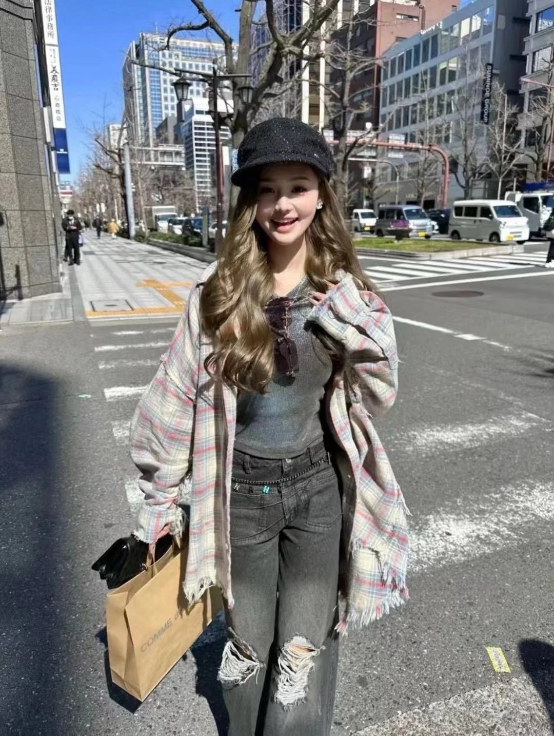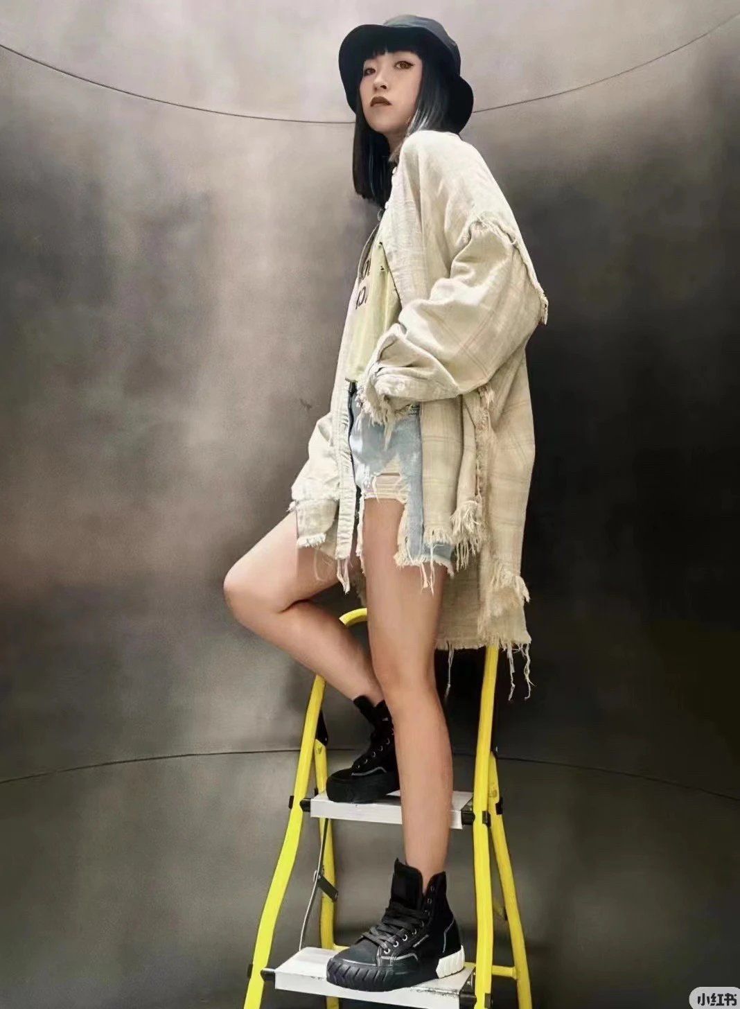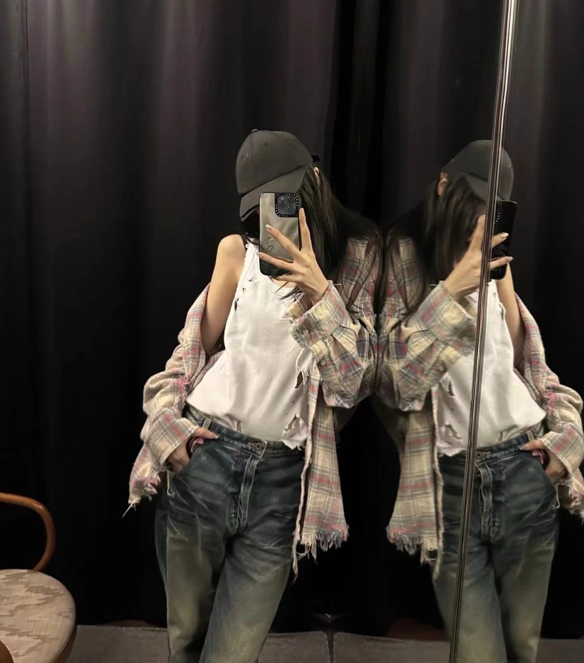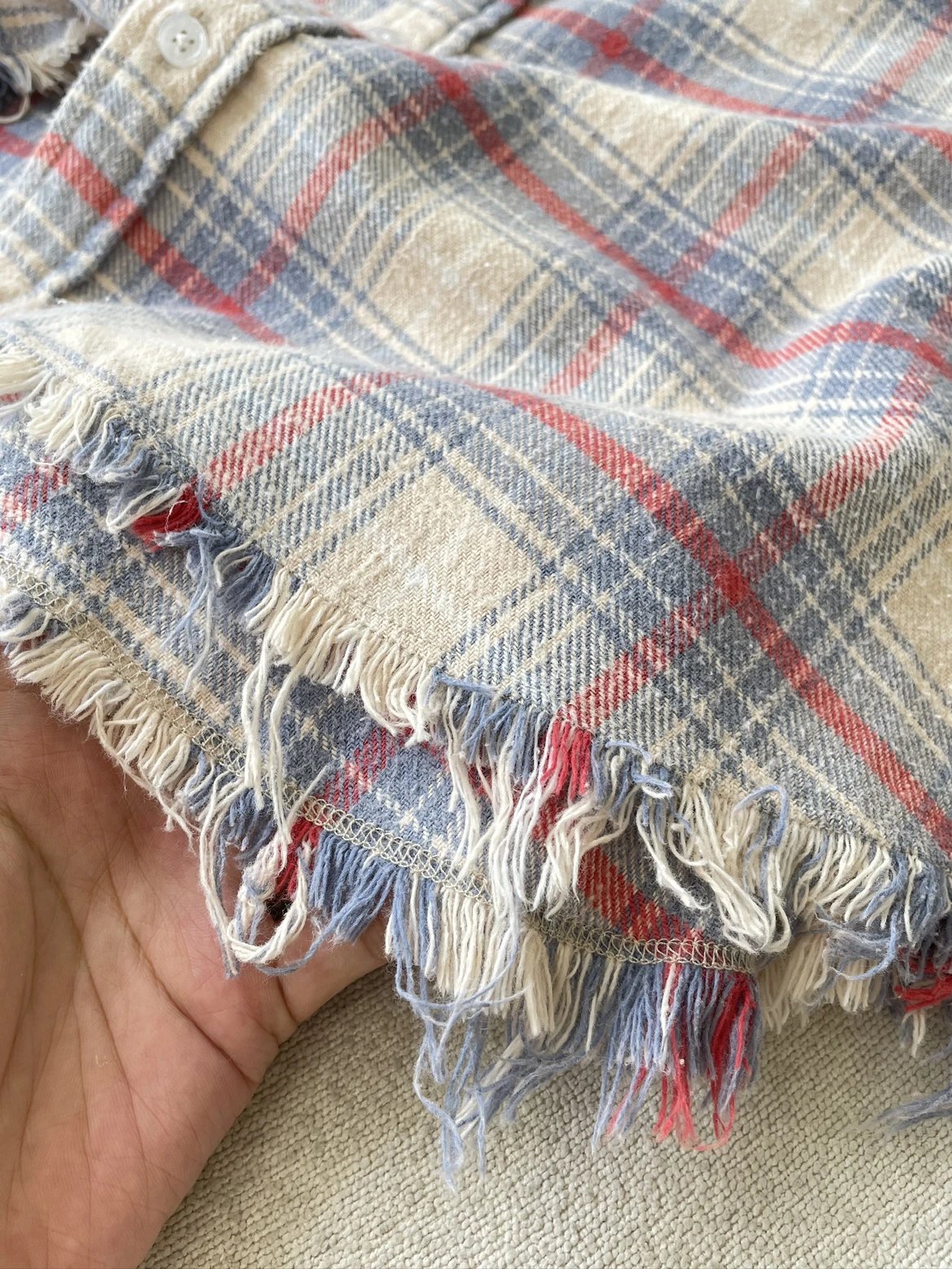 重磅纯元 R13衬衣 毛边破坏格纹衬衫 落肩格纹长袖 杨幂IU同款
