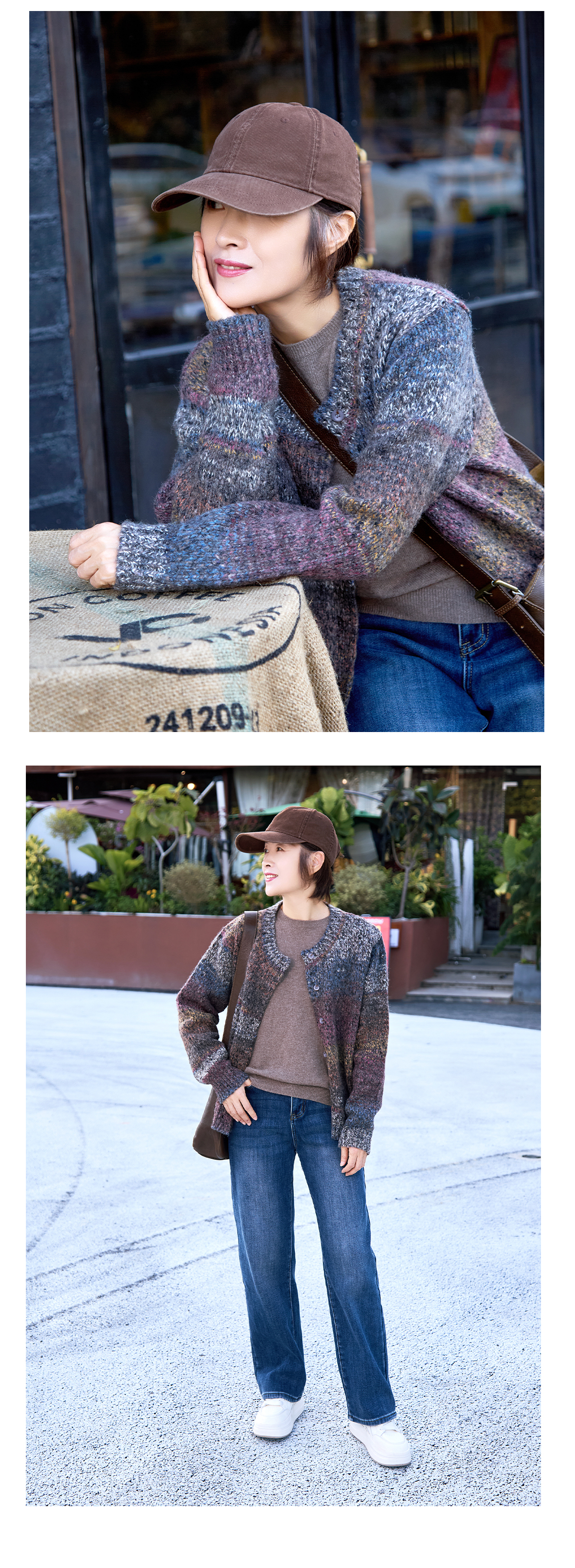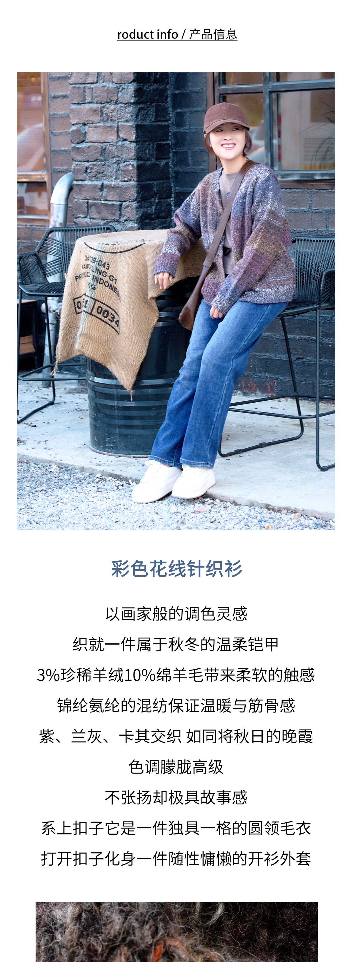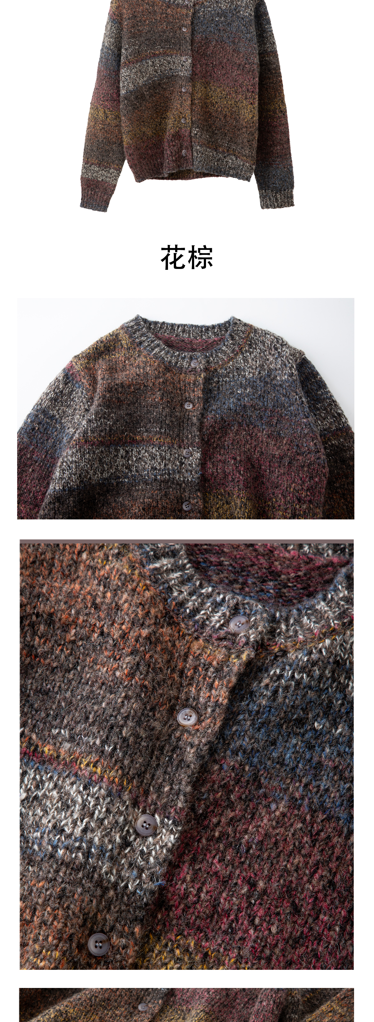 彩扣圆领开衫