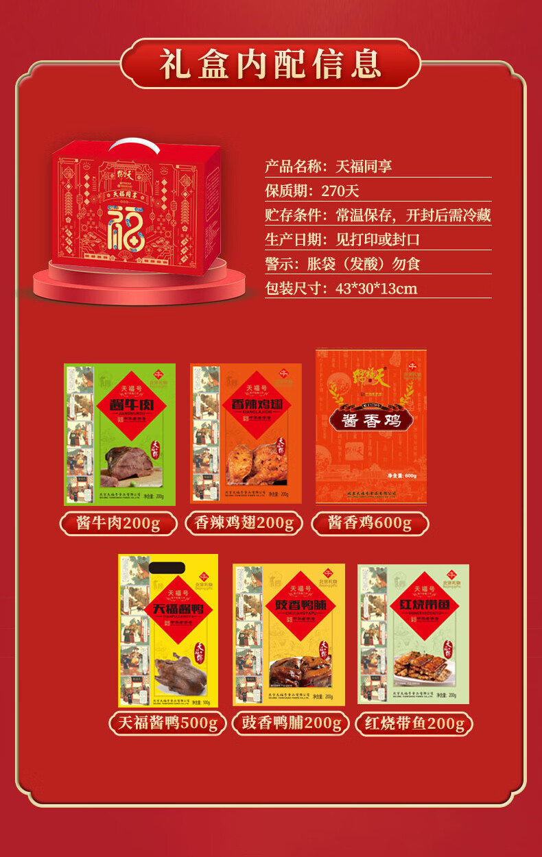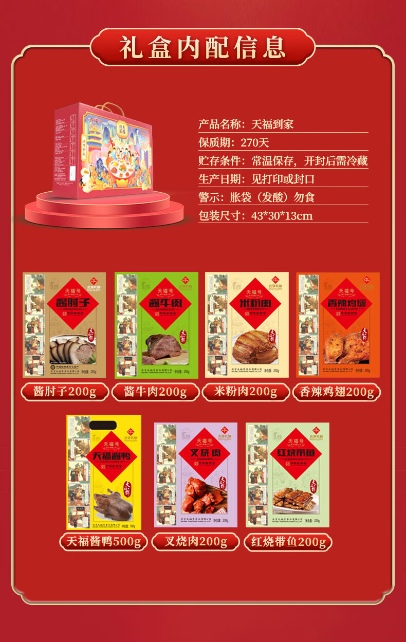 天福号 酱肉熟食礼盒 中华老字号酱肘子酱牛肉组合礼盒企业定制 天官赐福1200g/盒