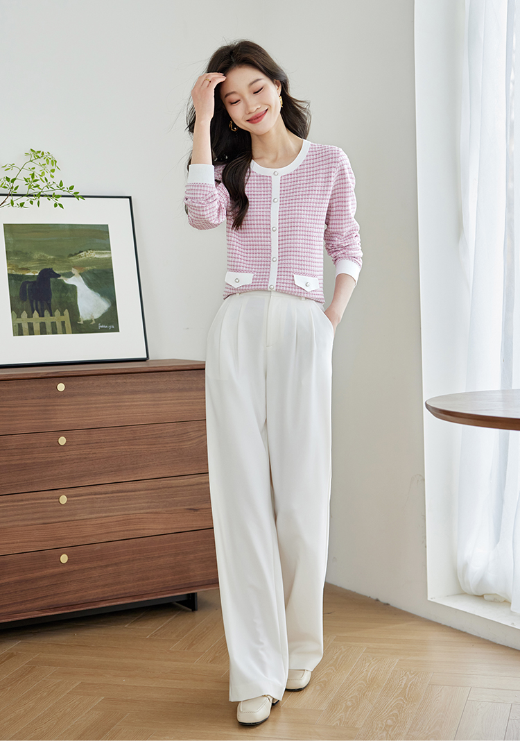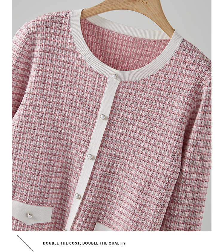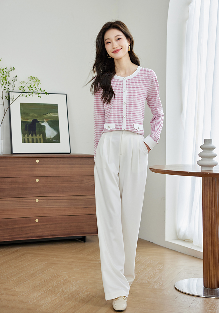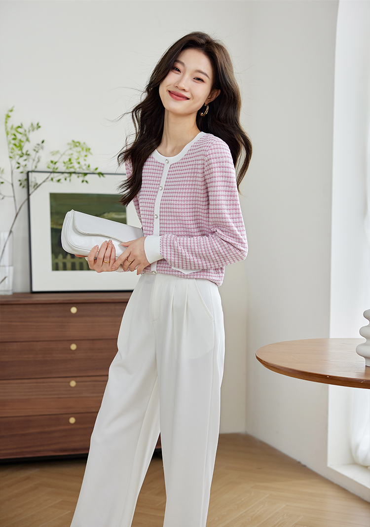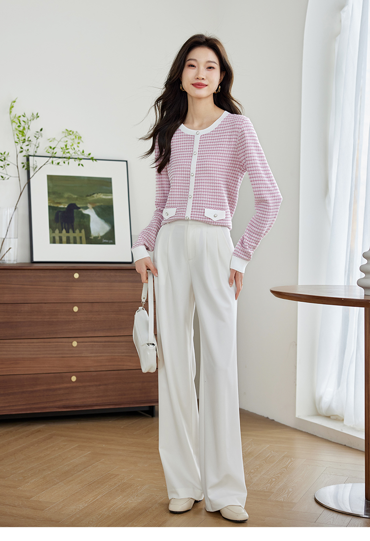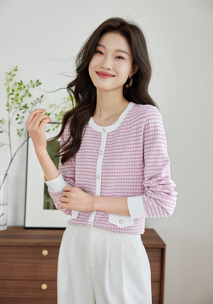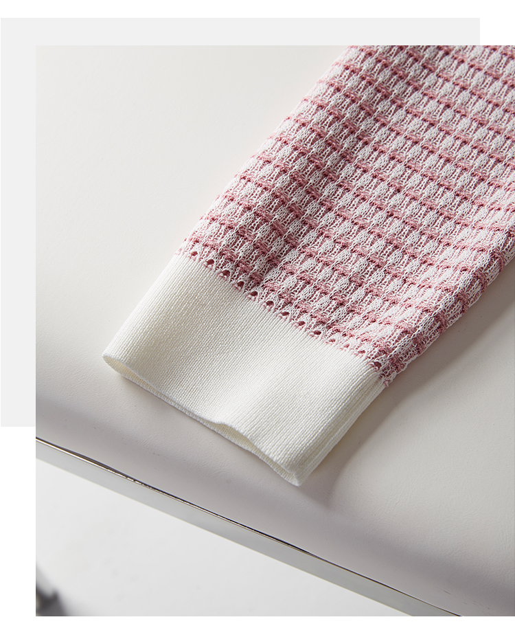 【专属特价】熙世界小香风撞色格子圆领针织衫长袖软糯提花上衣2025秋季新款