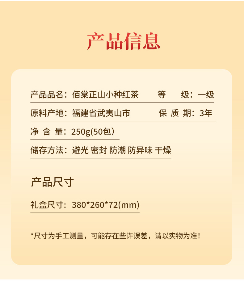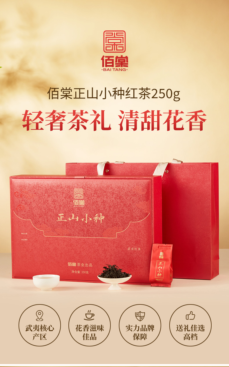 佰棠 红茶 正山小种 武夷红茶 茶叶 礼盒 250g