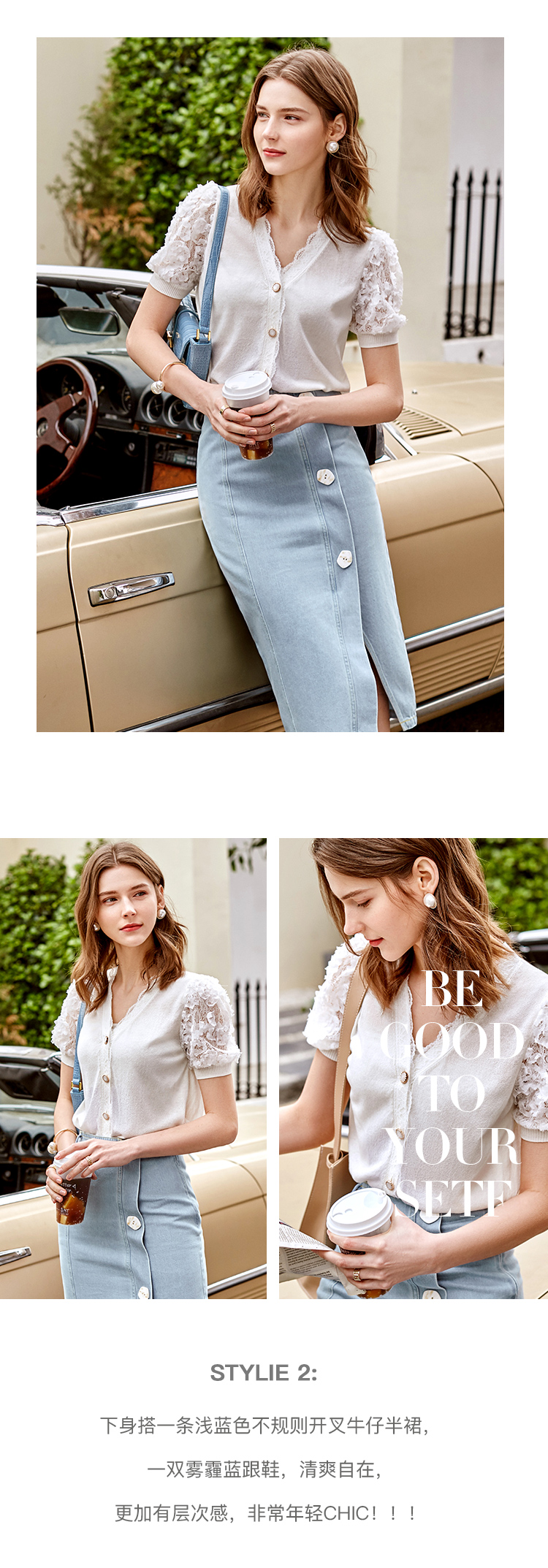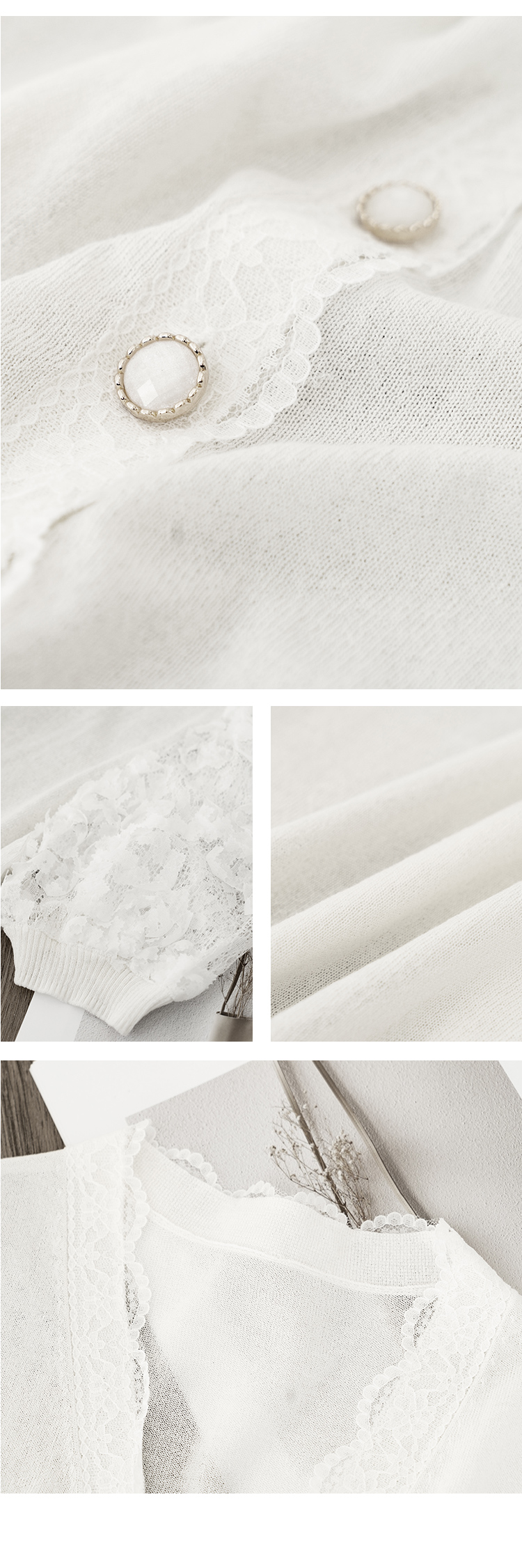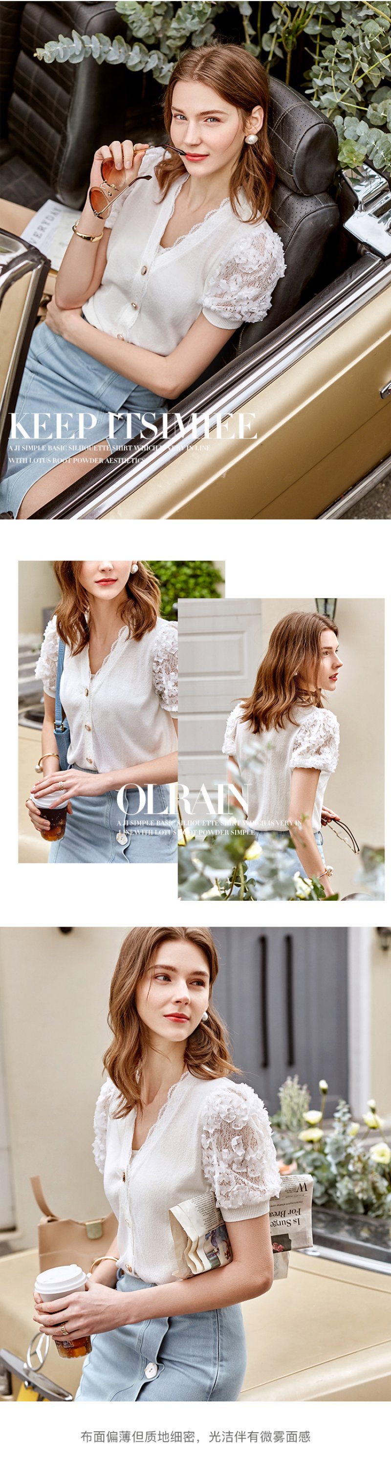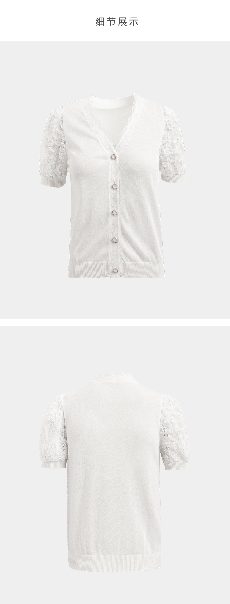 欧芮儿白色毛针织衫女2021新款拼接蕾丝袖气质年轻俏皮法式上衣