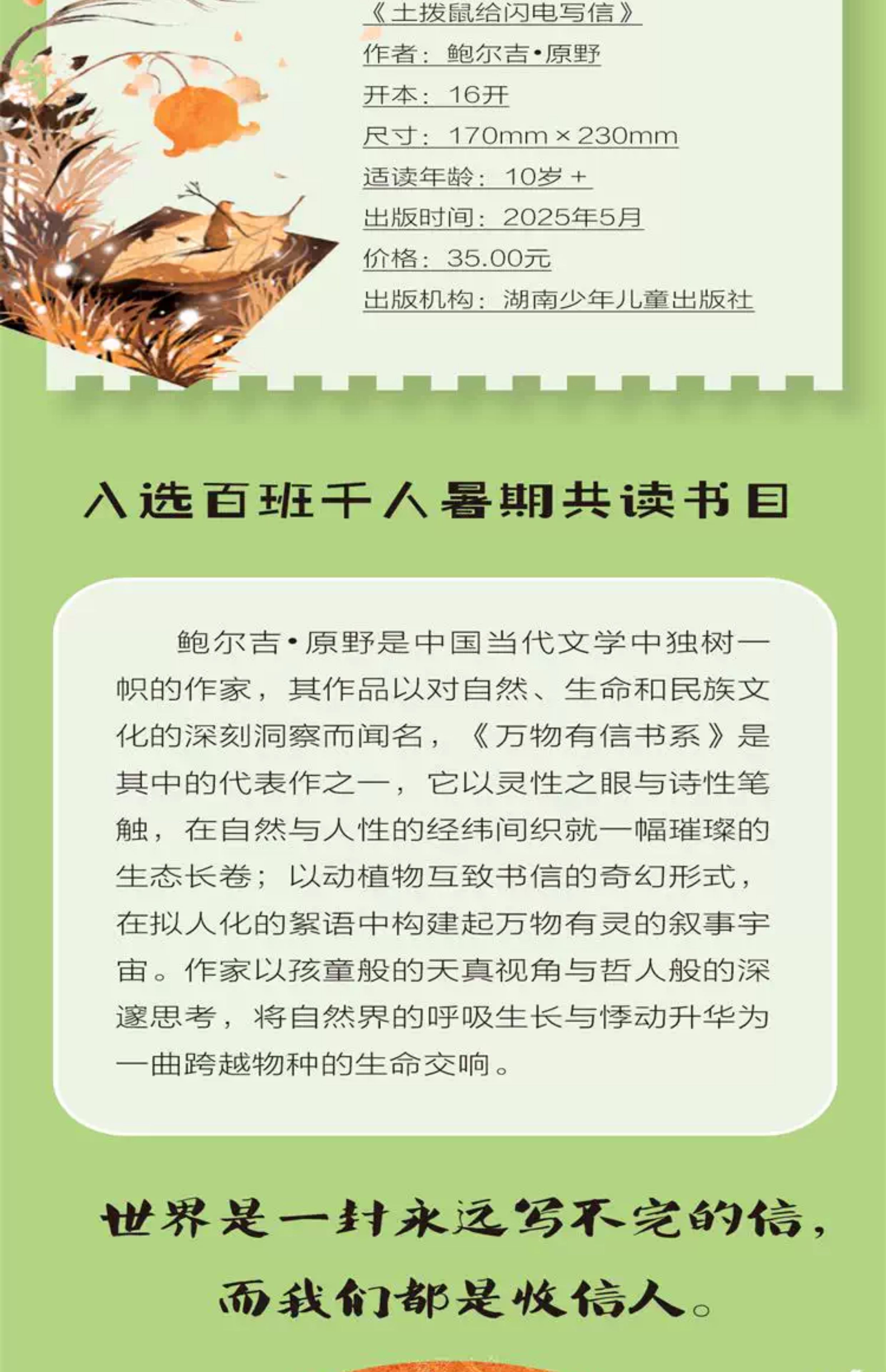 2025年百班千人暑期书目四年级 万物有信书系土拨鼠给闪电写信 名师推荐正版现货