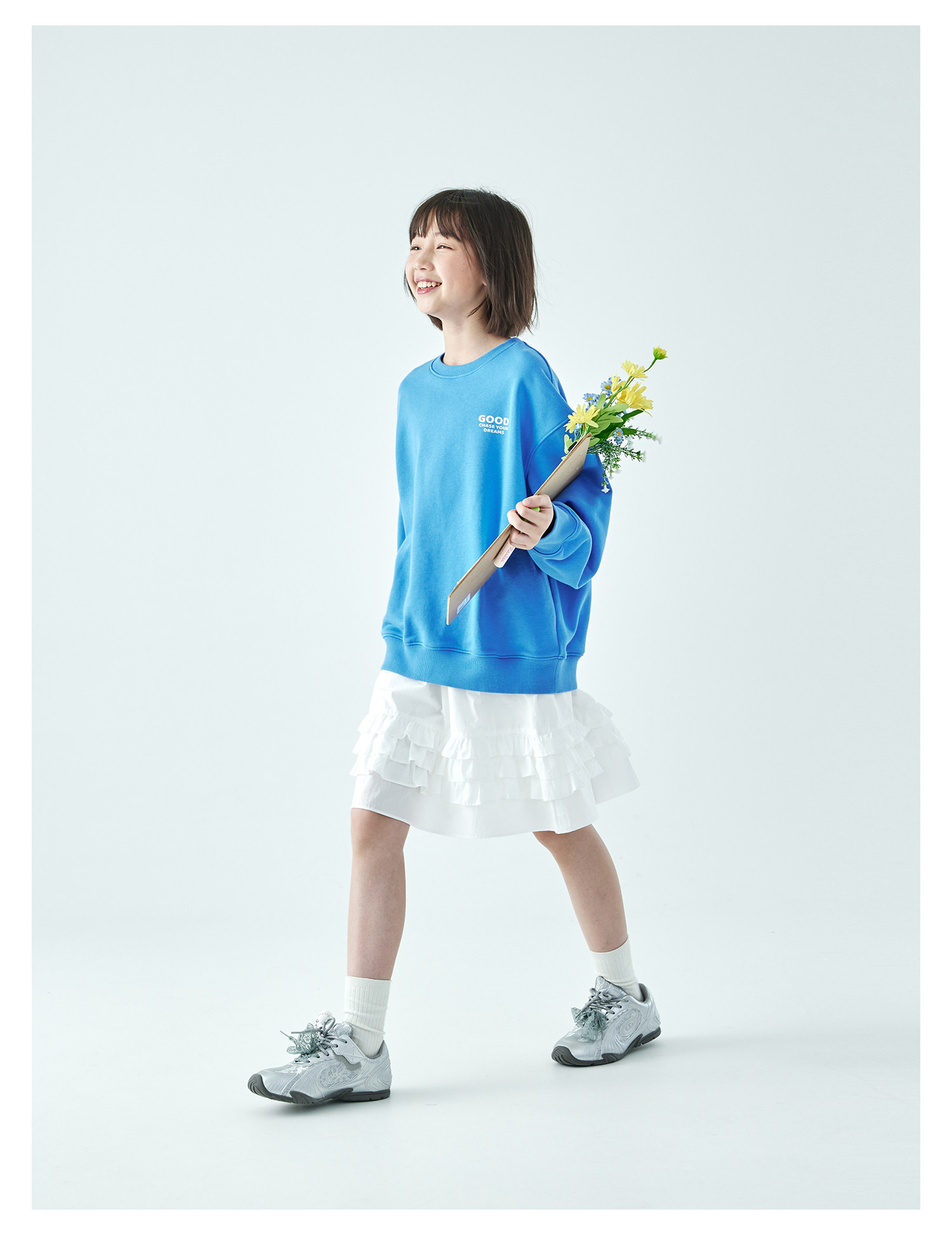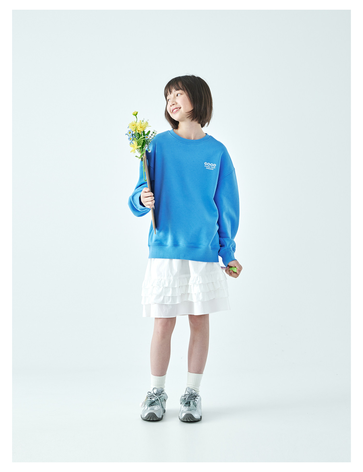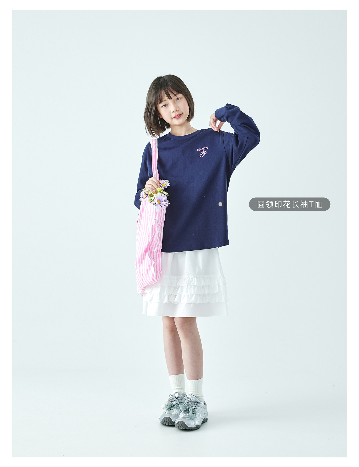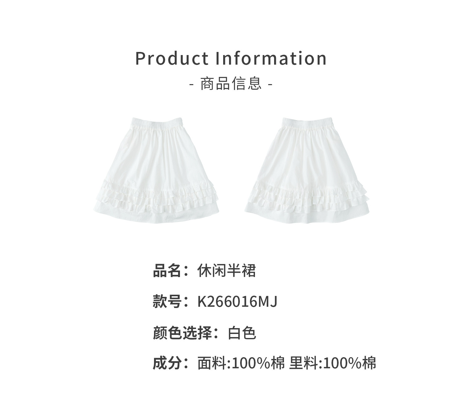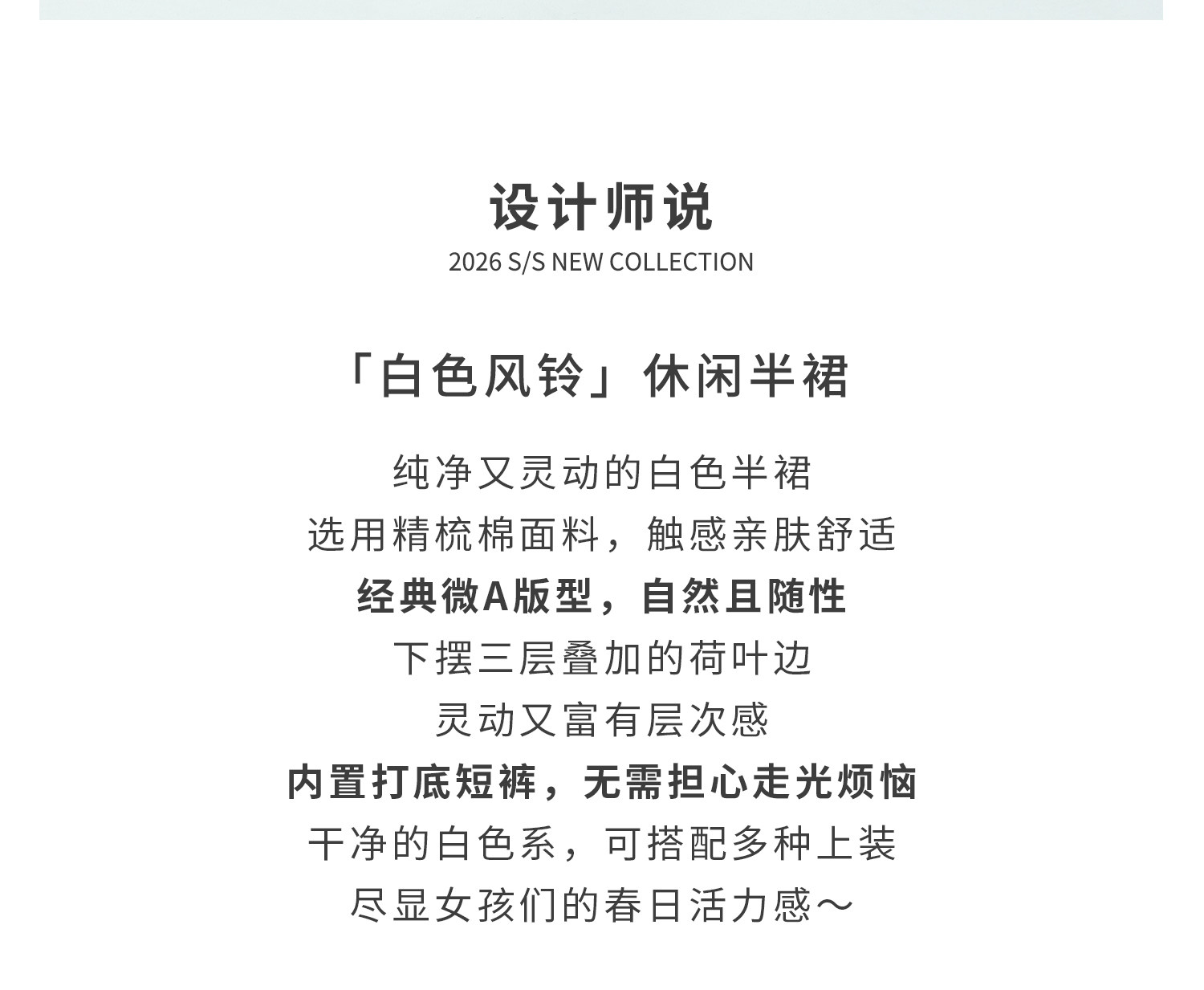 棵初2026年春季新款亲子中大女童纯棉亲肤休闲半裙纯净白色系裙子