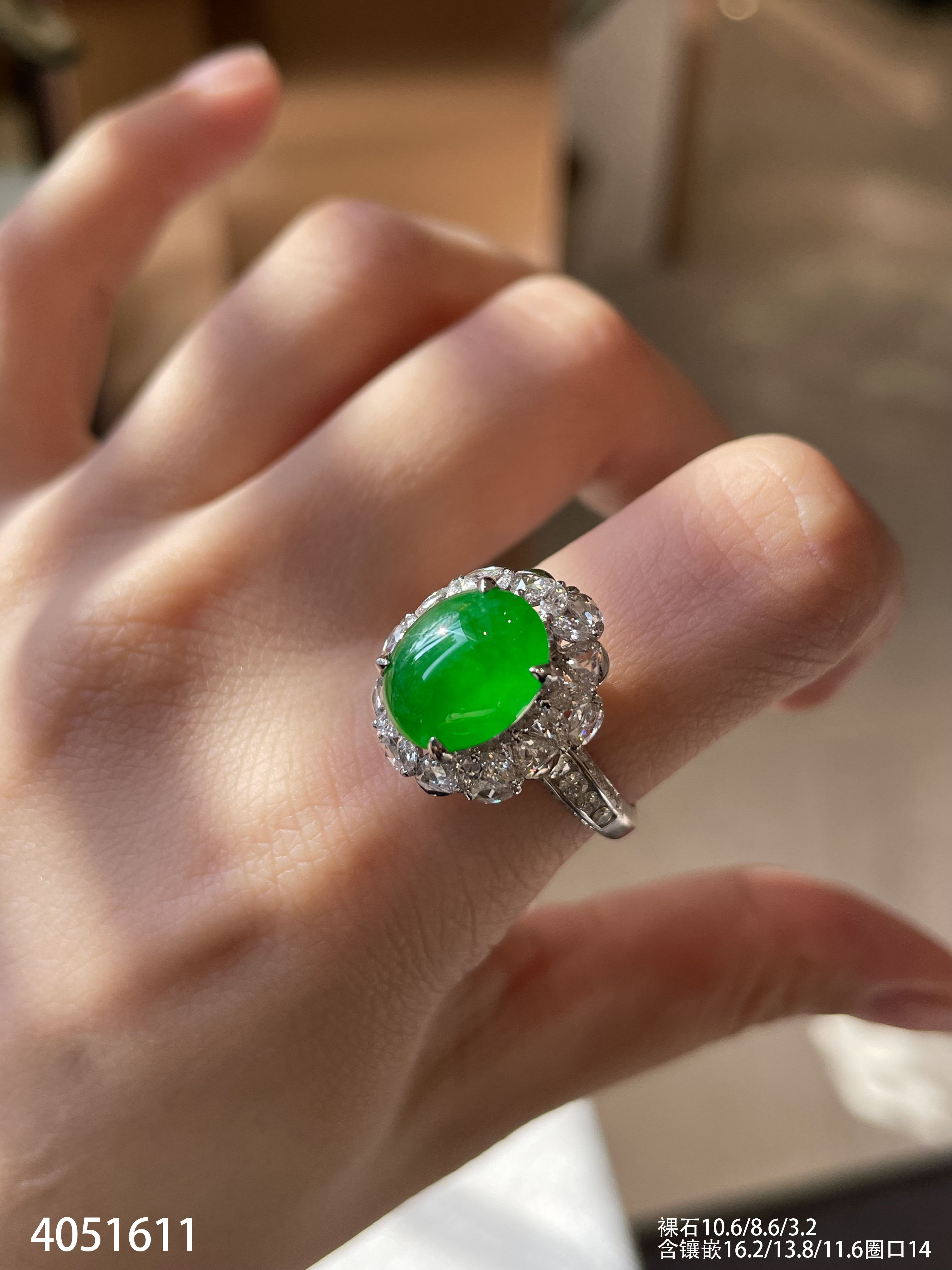 老坑帝王绿蛋面戒指【6240703】具体价格微信咨询