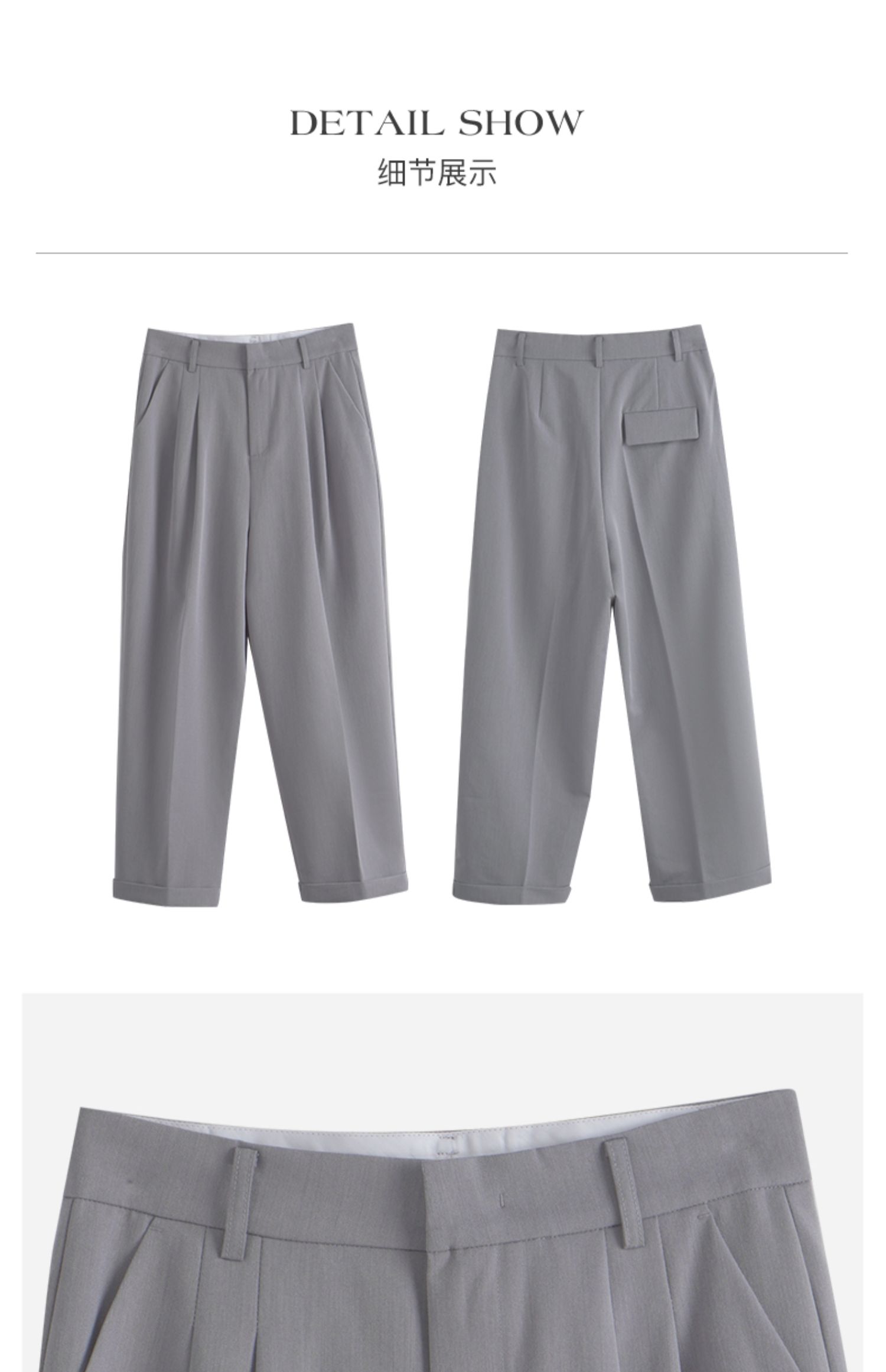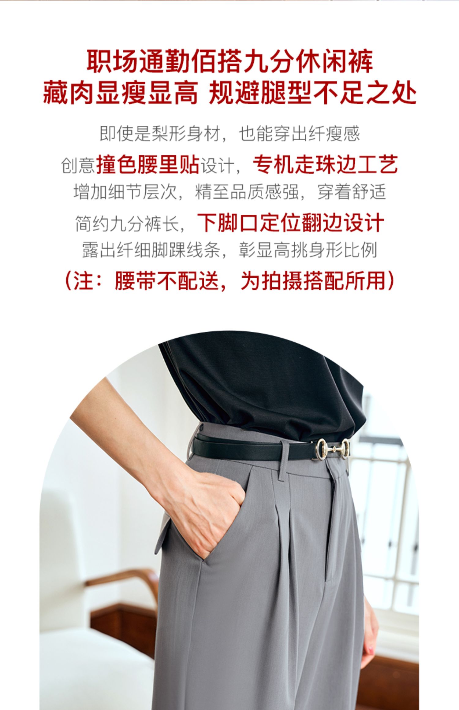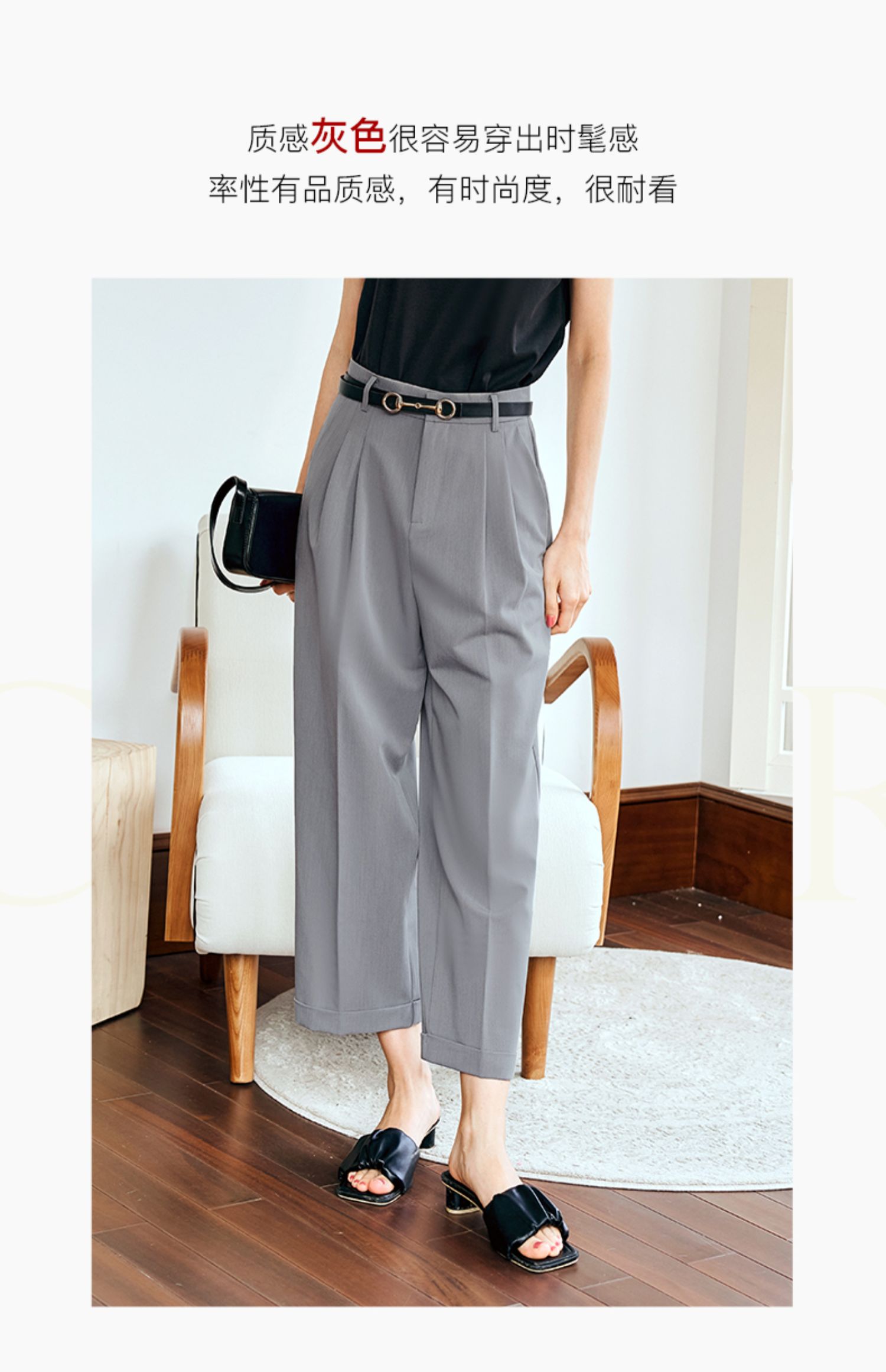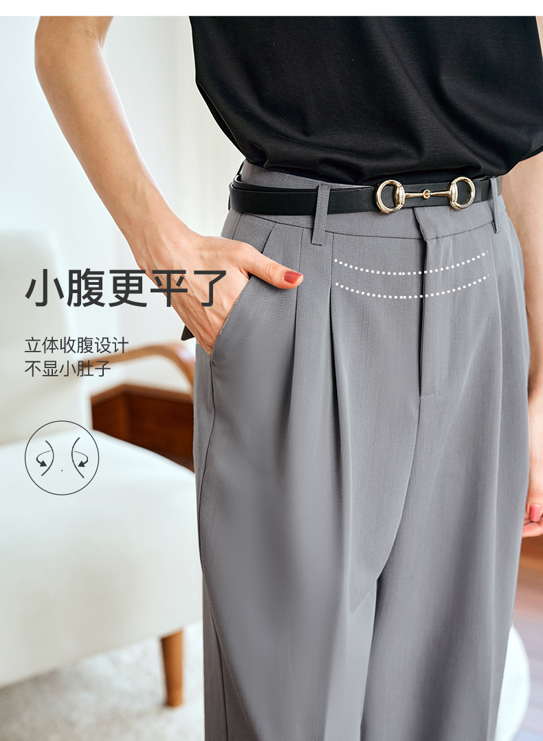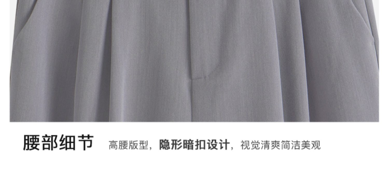 OLrain欧芮儿灰色高腰休闲裤女夏季2024年新款通勤时尚百搭九分裤