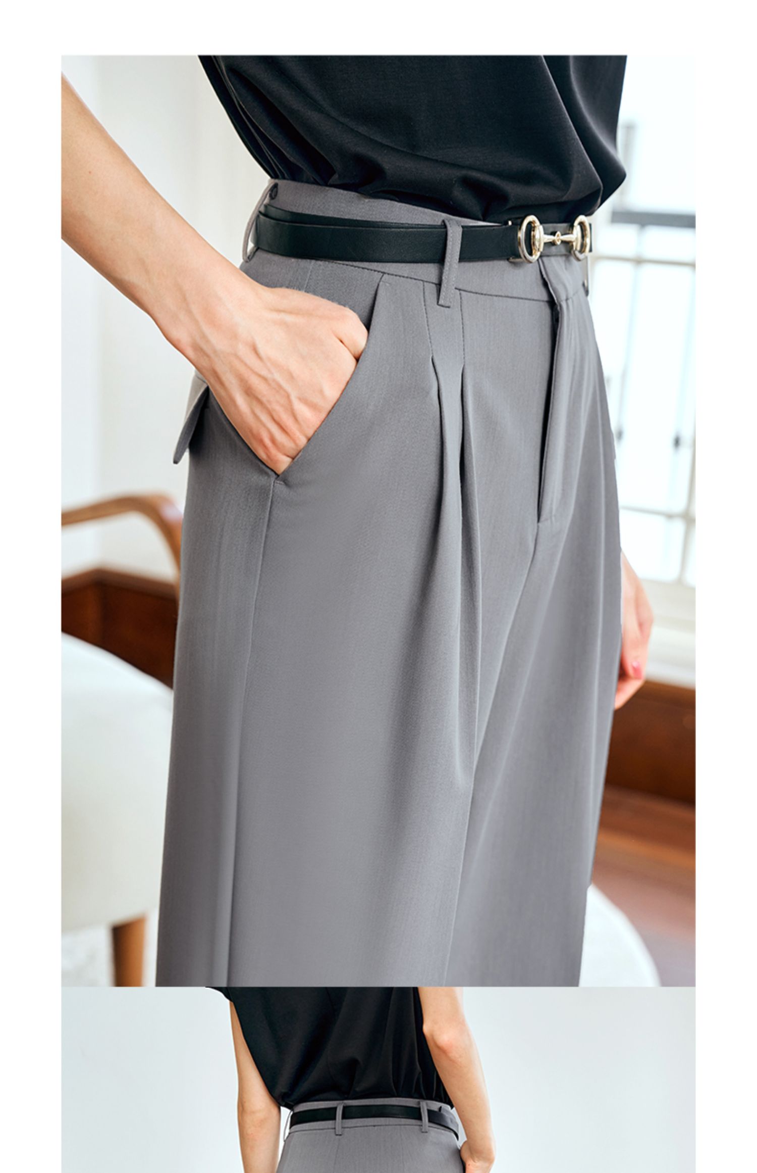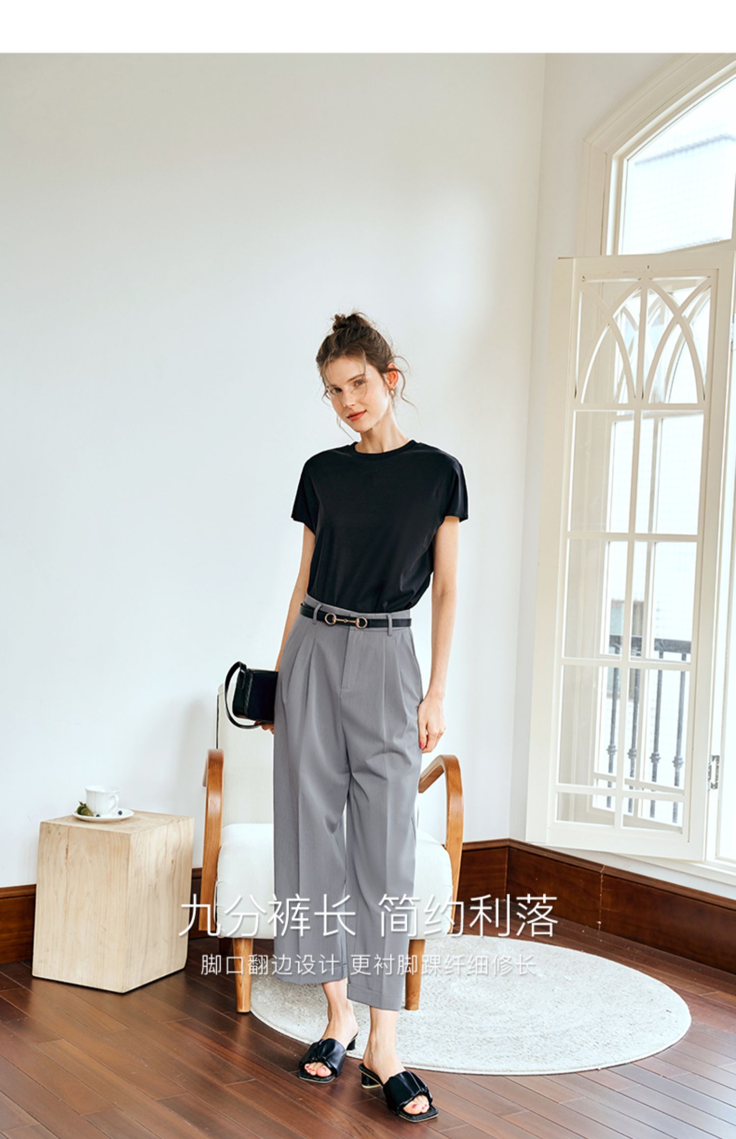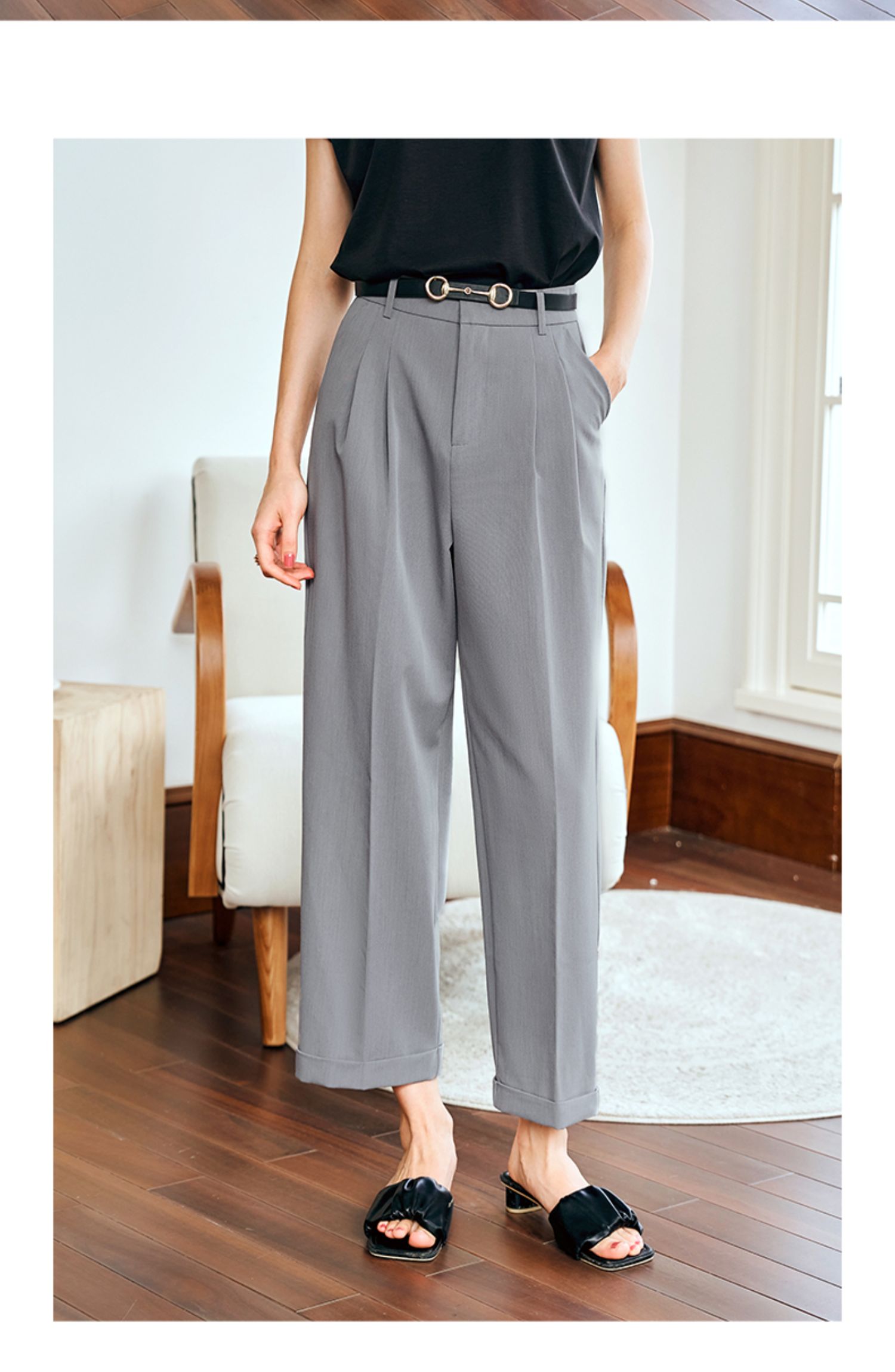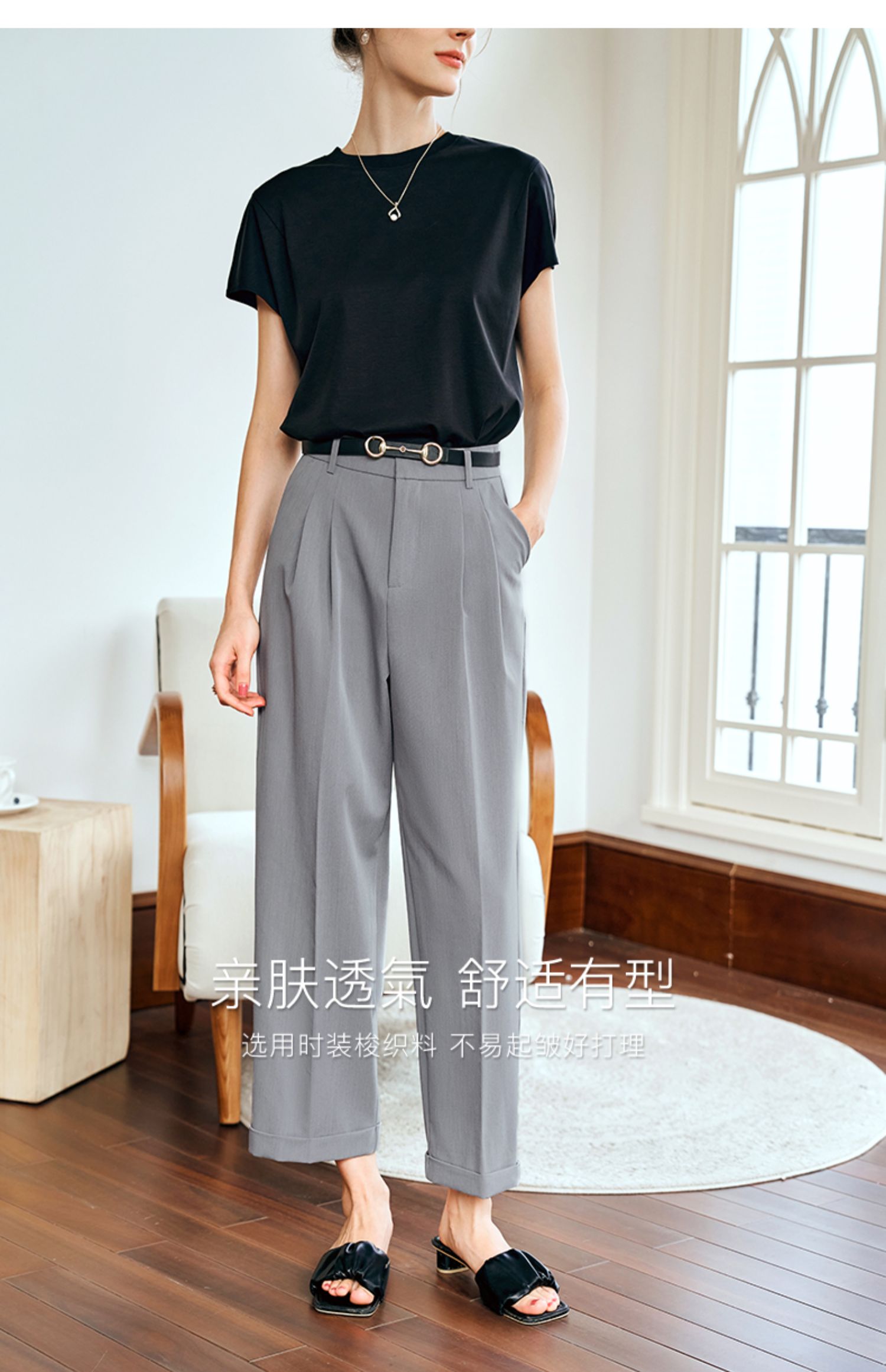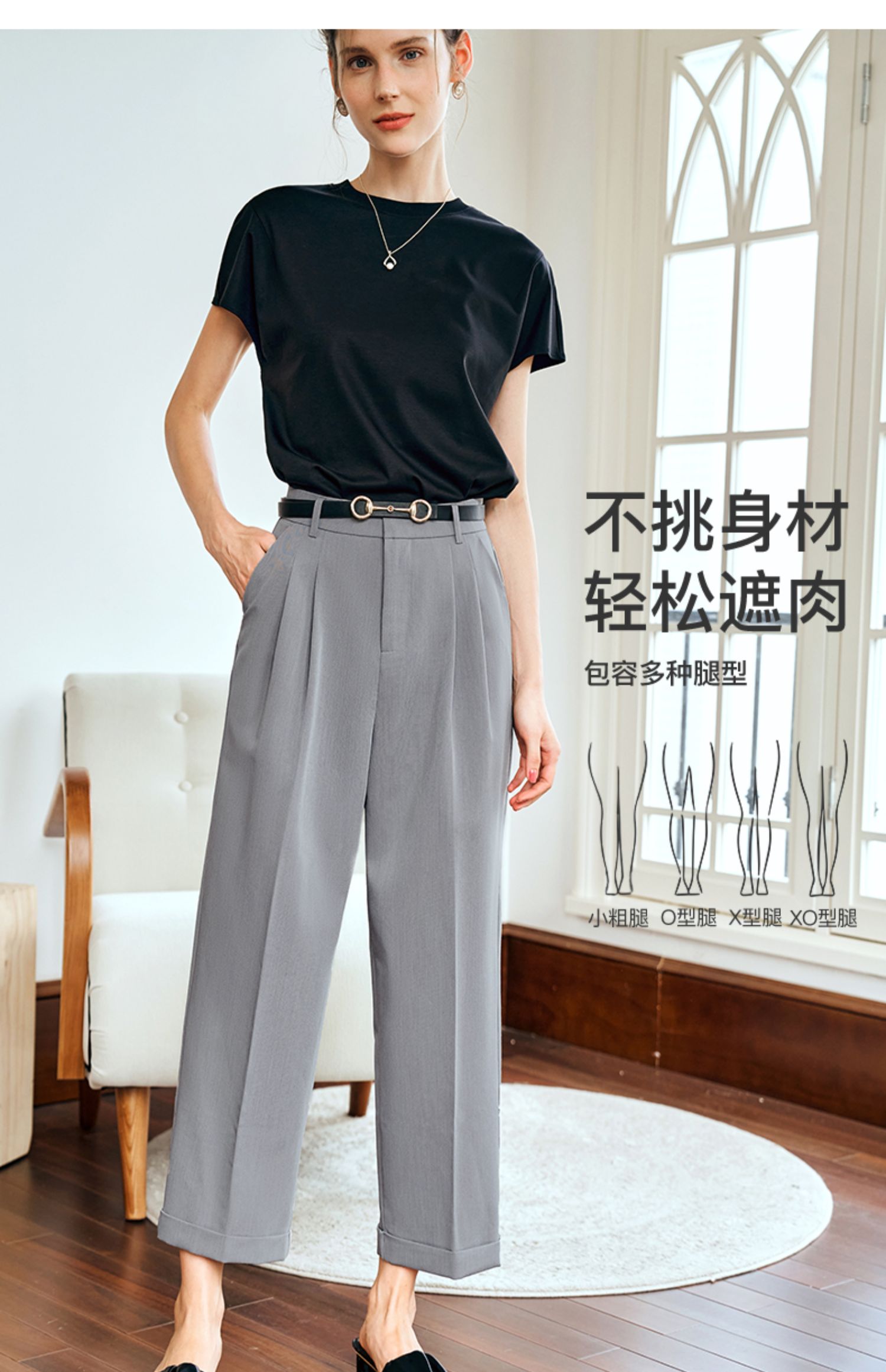 OLrain欧芮儿灰色高腰休闲裤女夏季2024年新款通勤时尚百搭九分裤