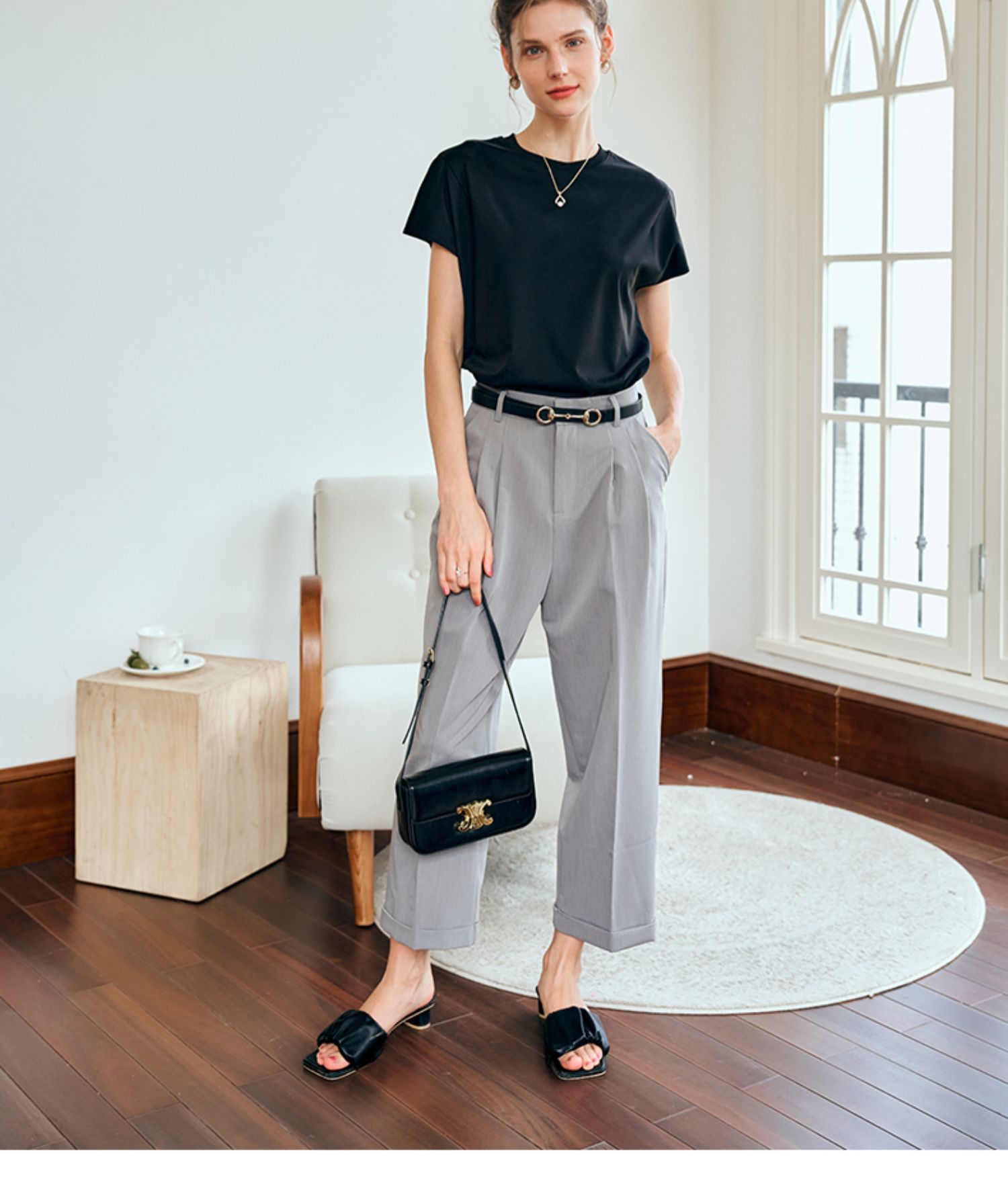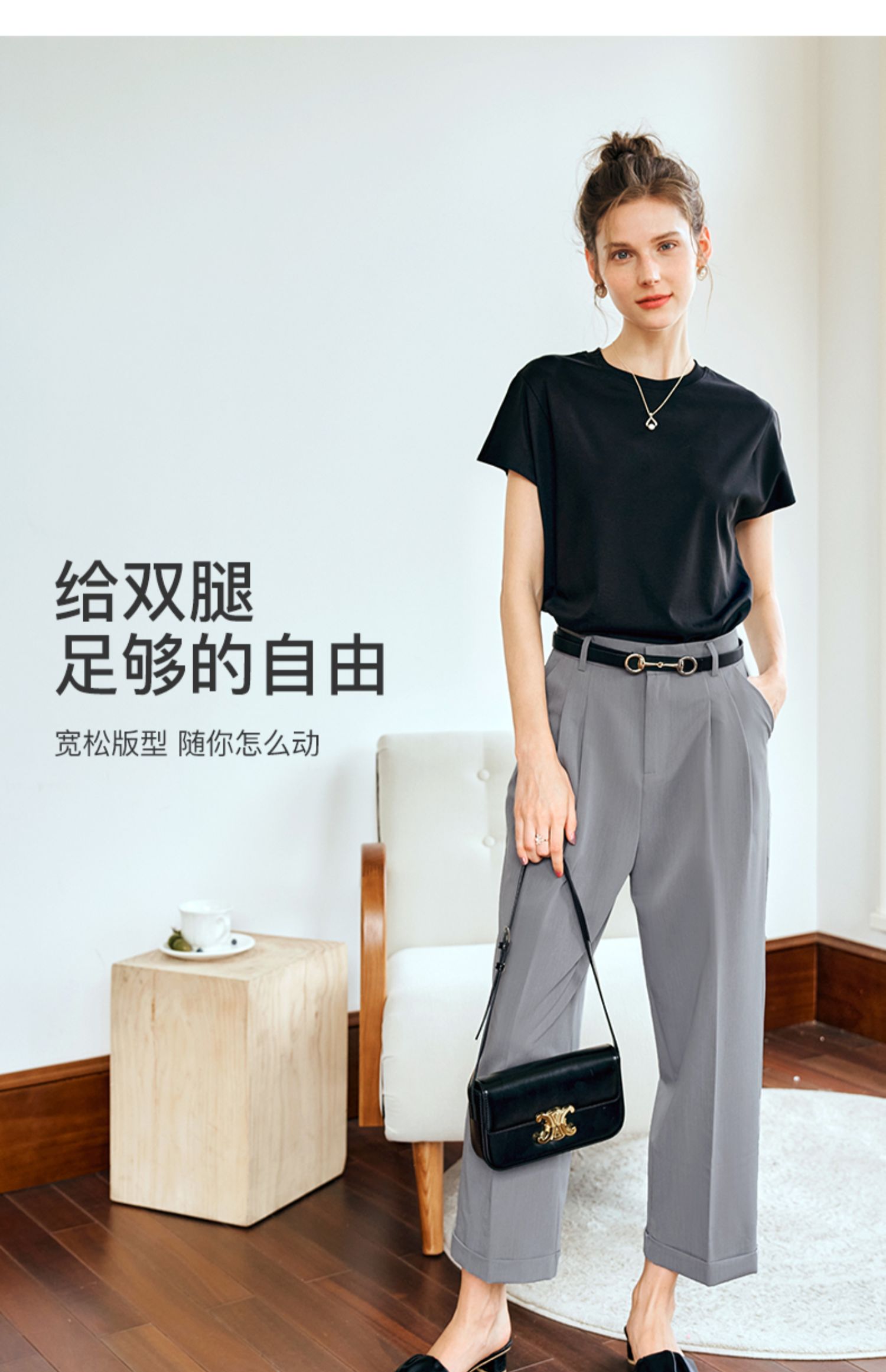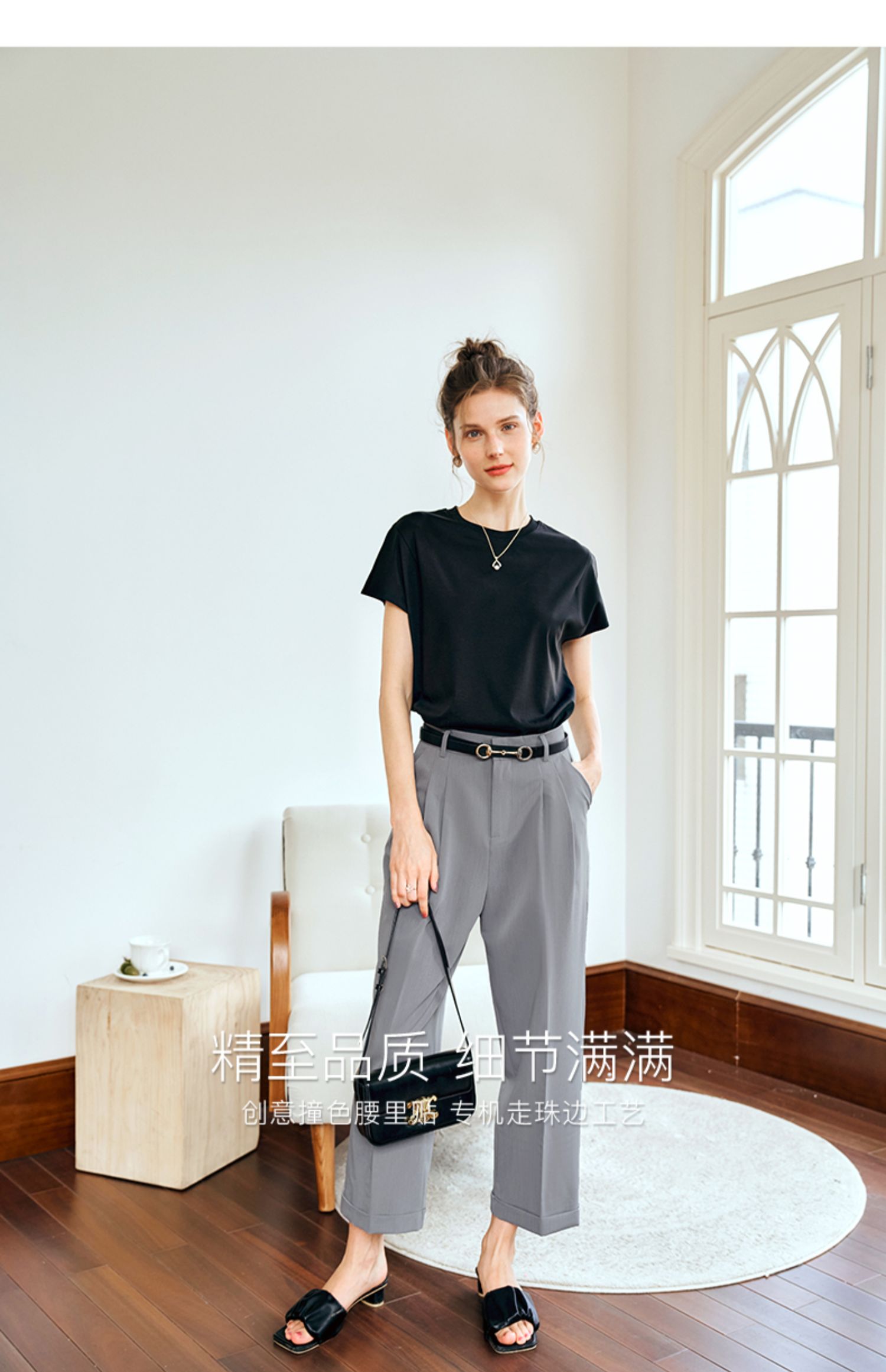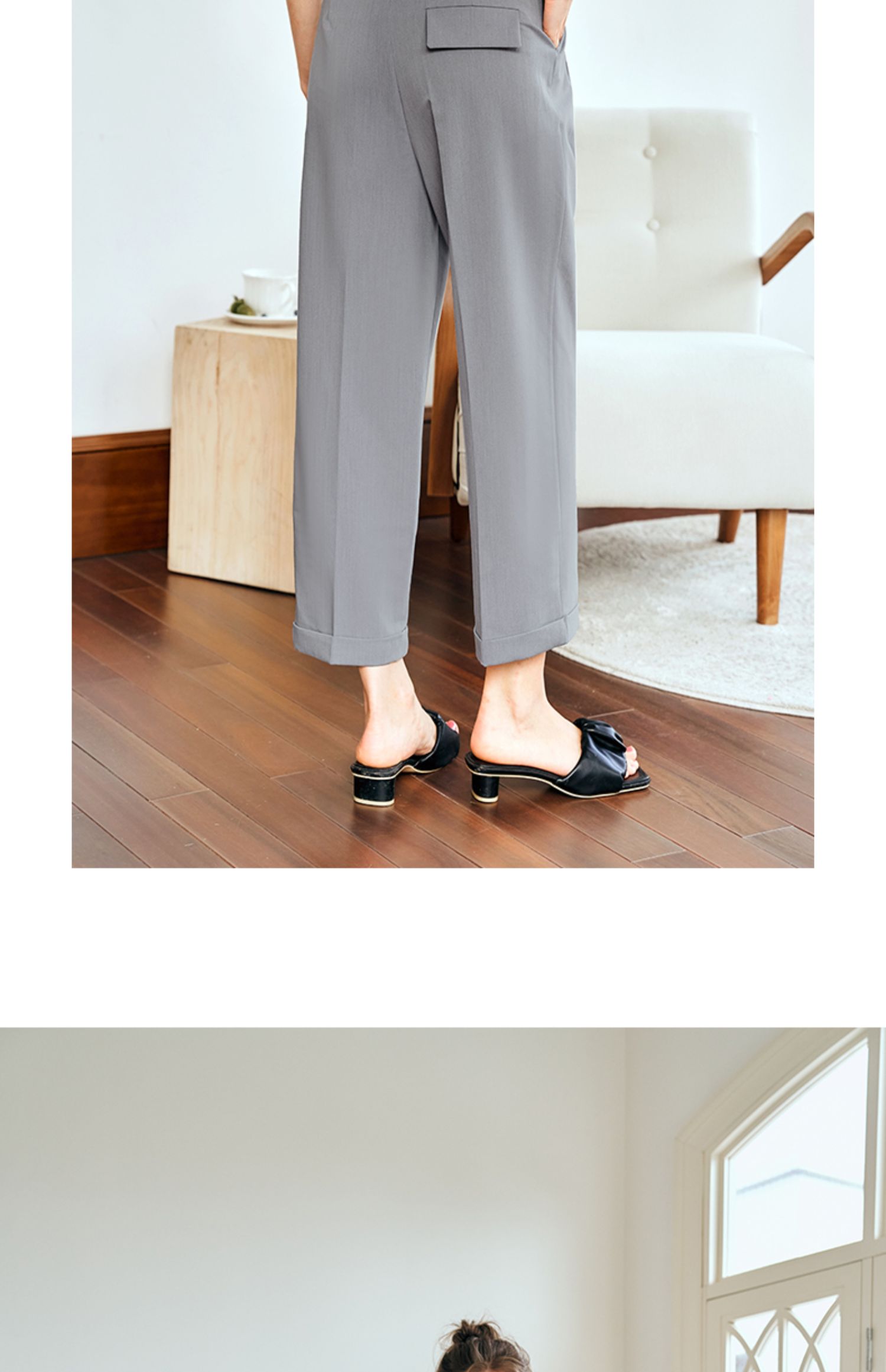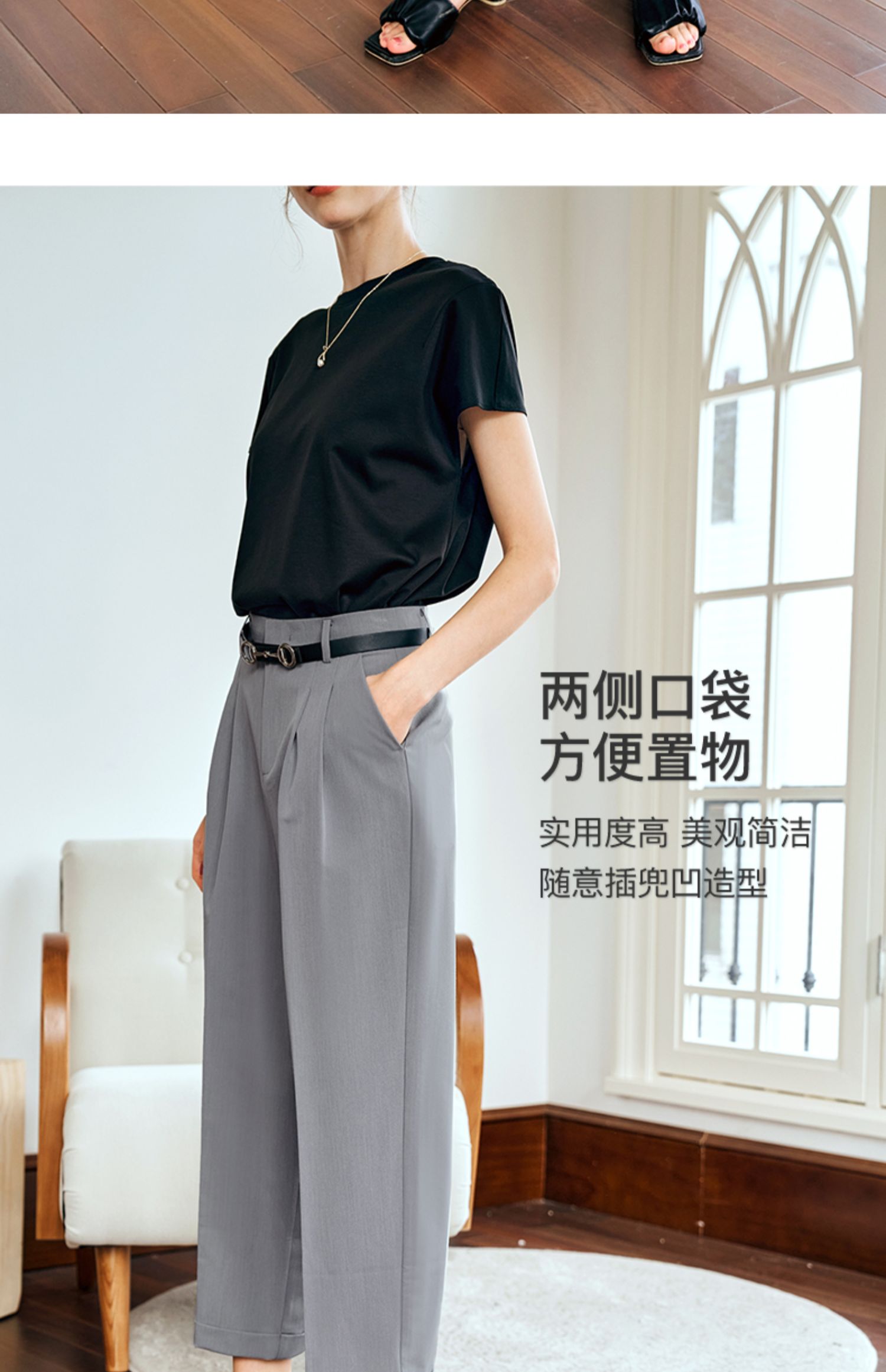 OLrain欧芮儿灰色高腰休闲裤女夏季2024年新款通勤时尚百搭九分裤