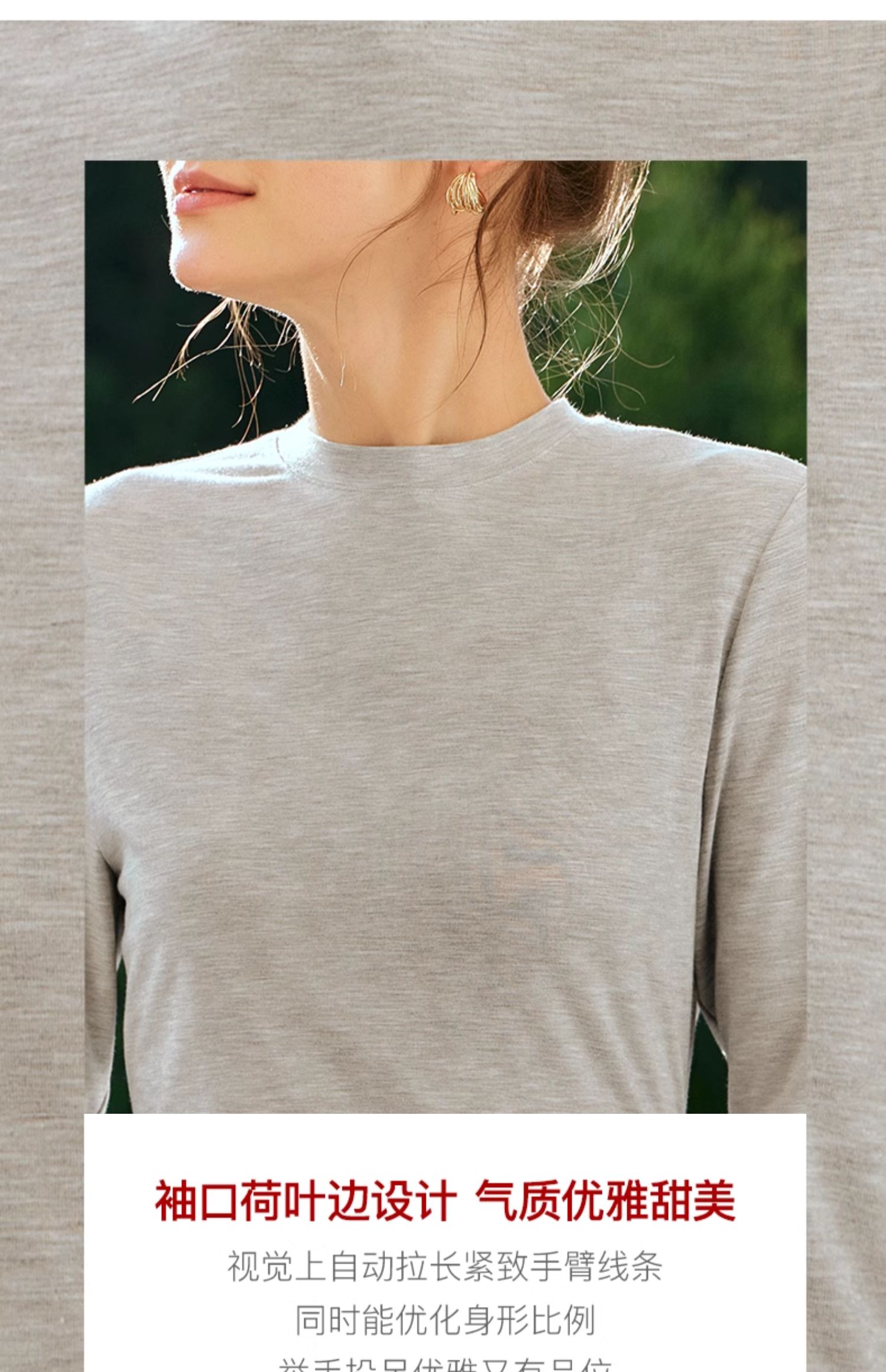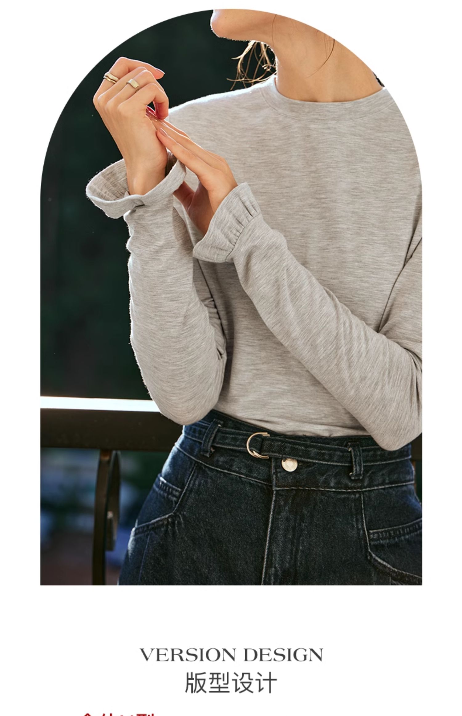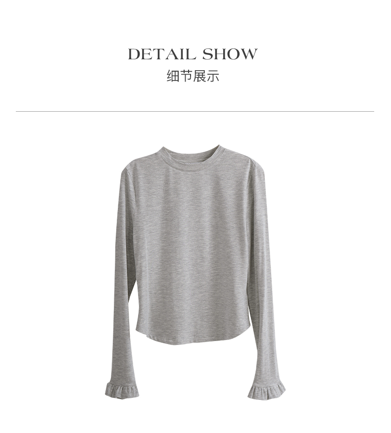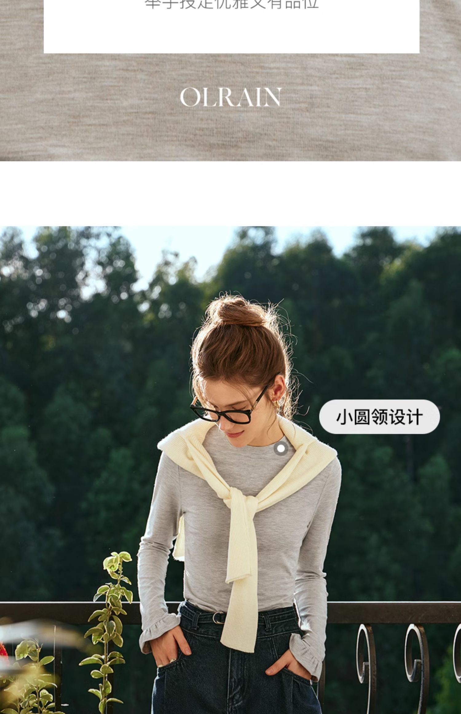 OLrain欧芮儿花灰色长袖T恤女早春2024年新款气质百搭打底衫
