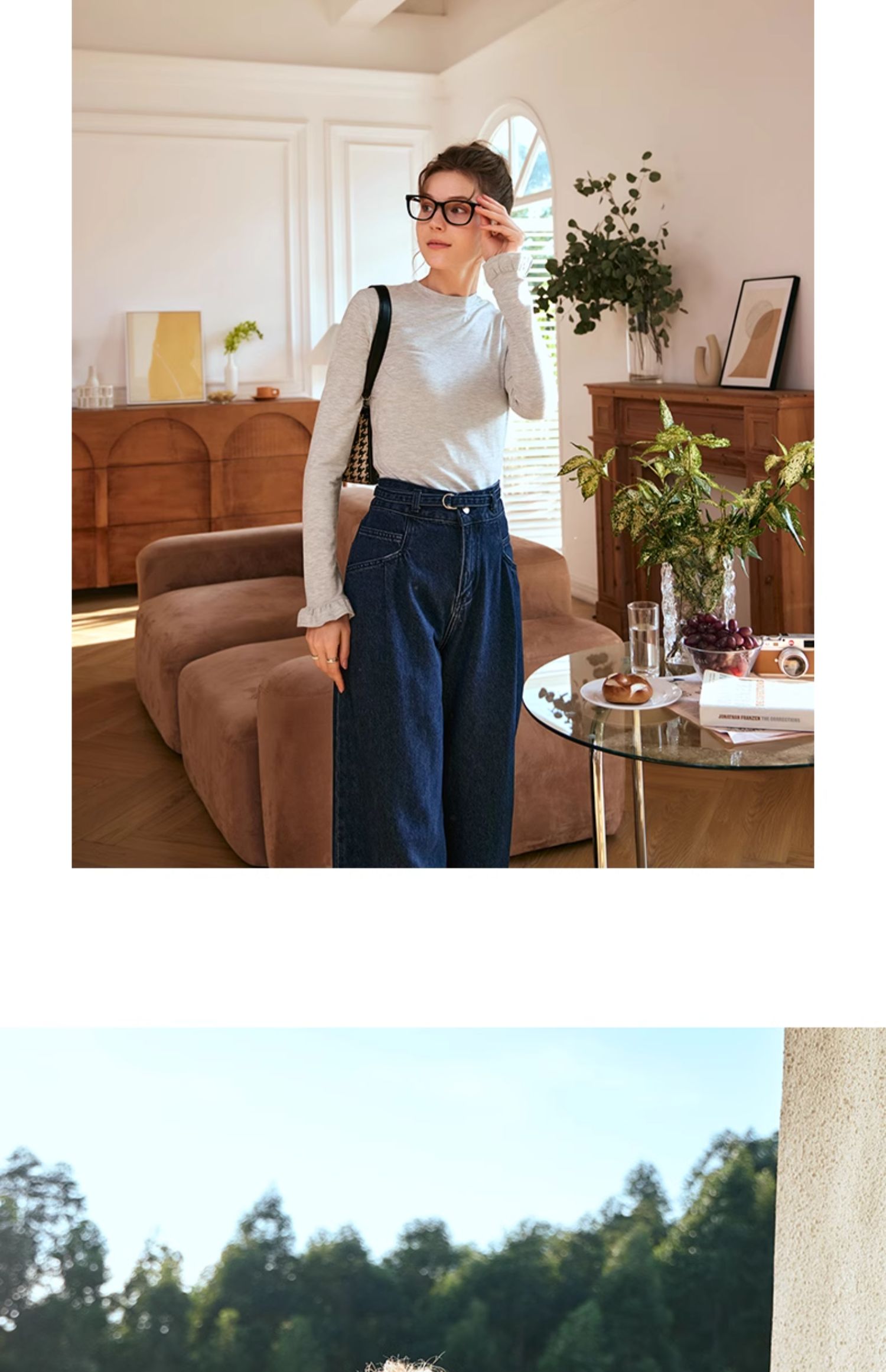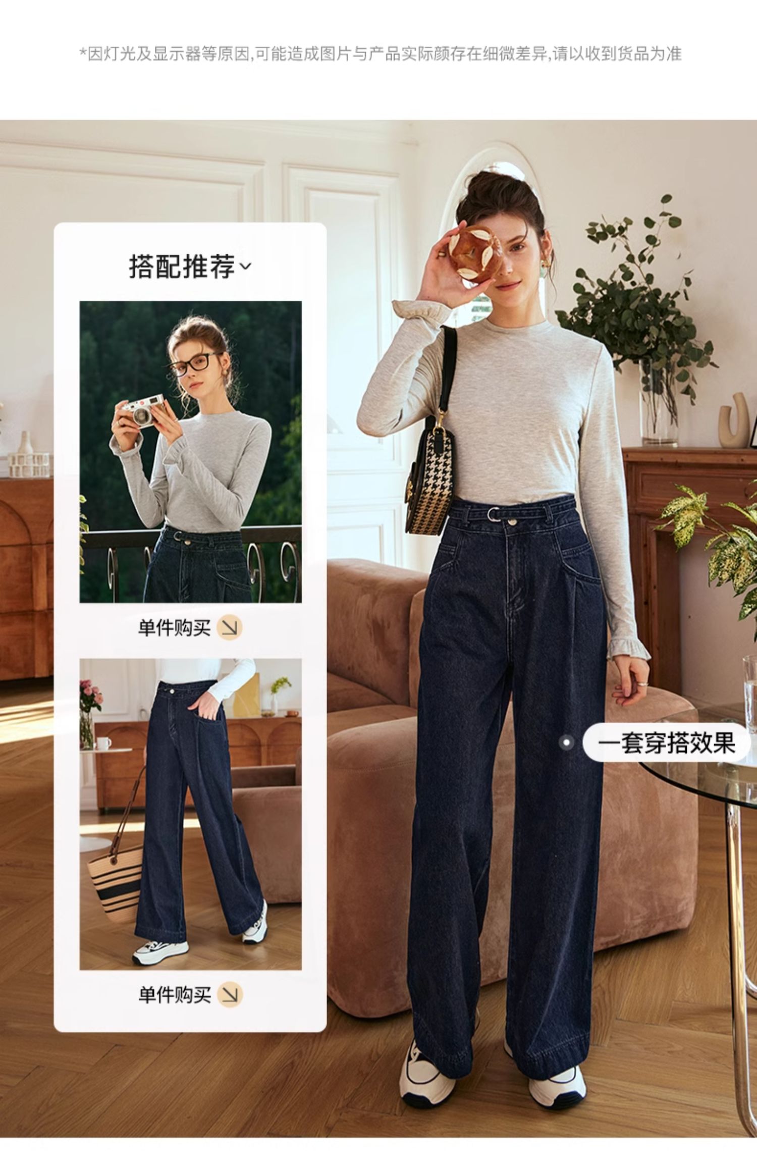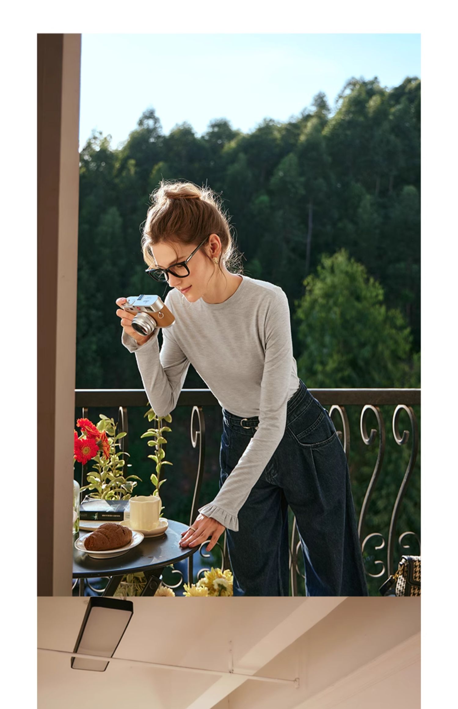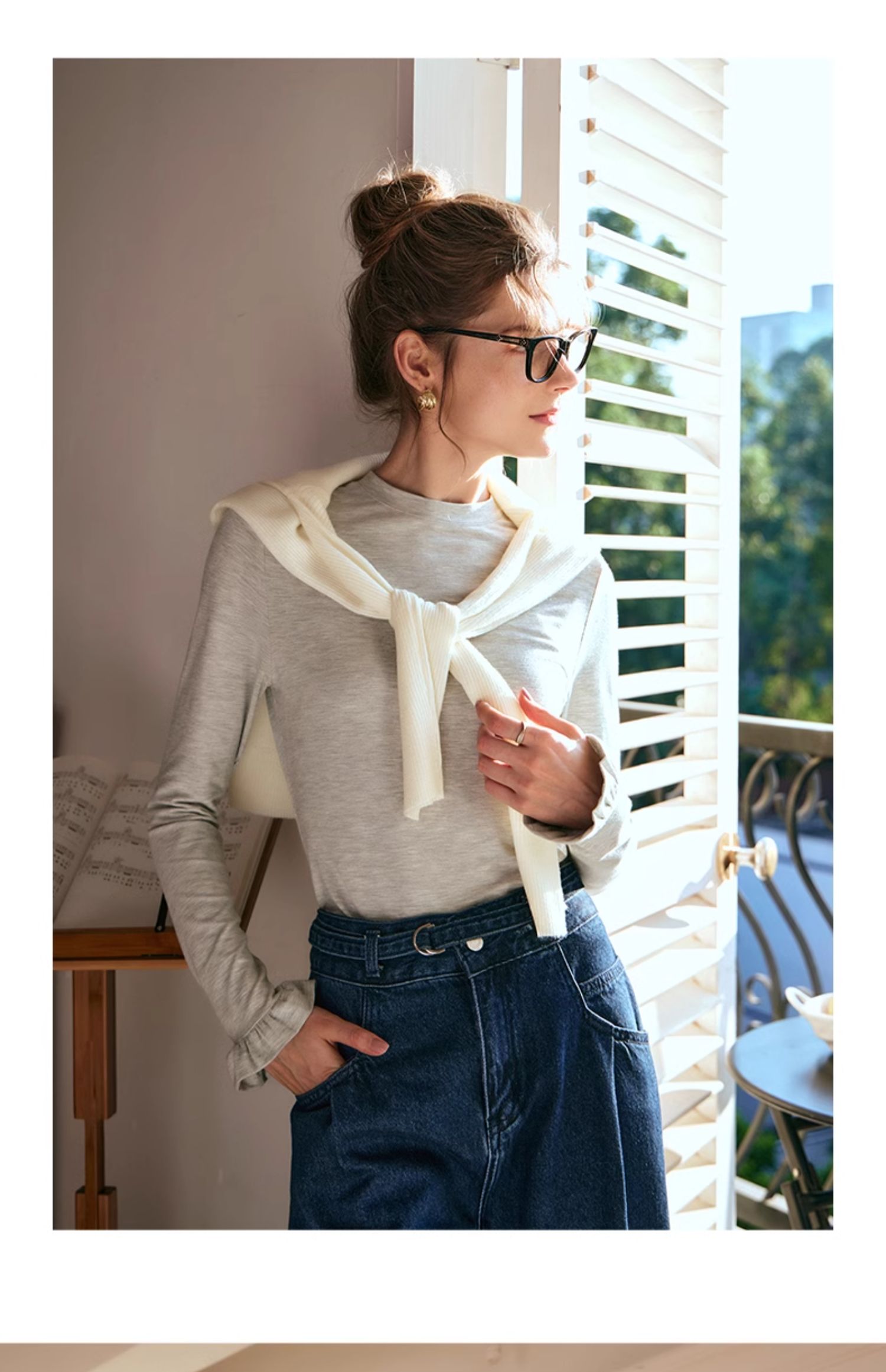 OLrain欧芮儿花灰色长袖T恤女早春2024年新款气质百搭打底衫
