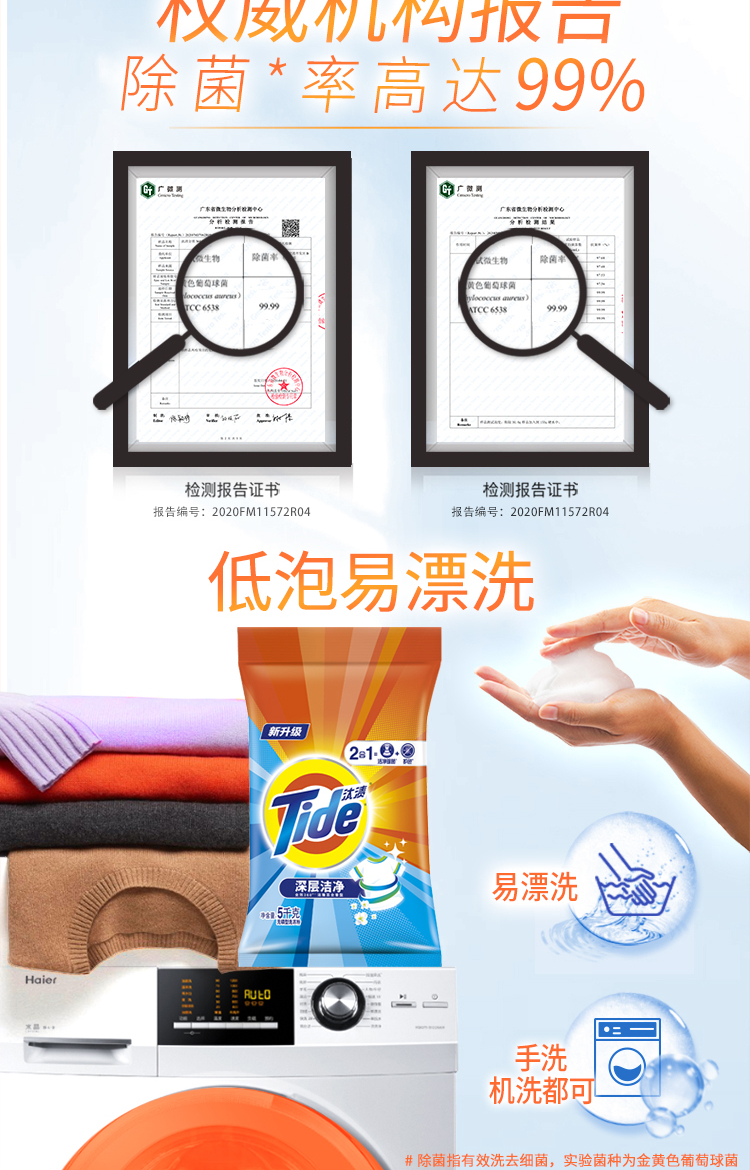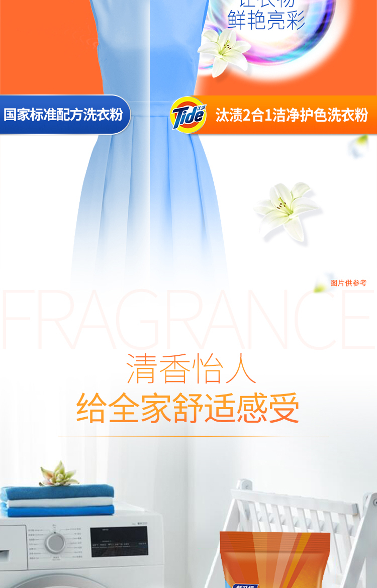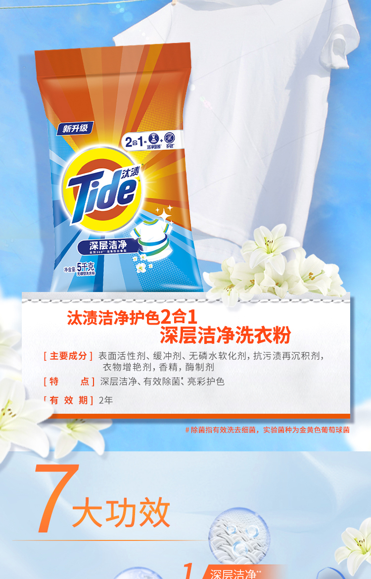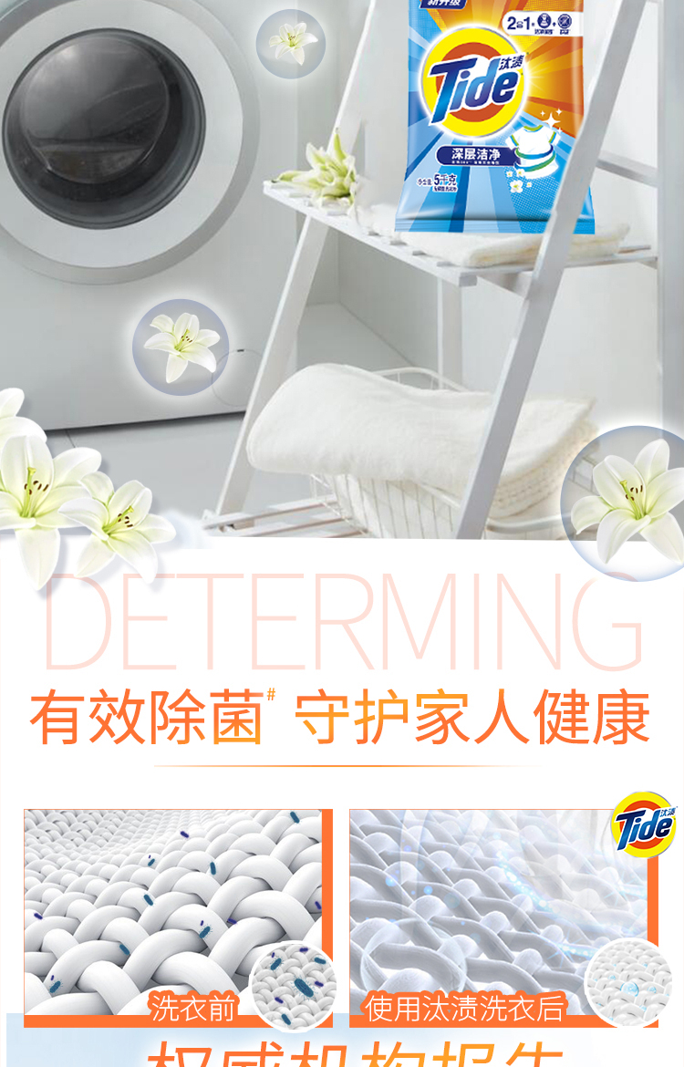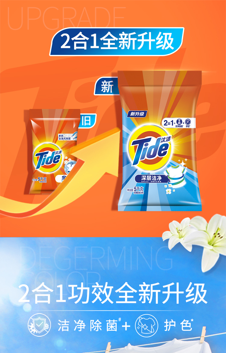 汰渍 Tide 全效除菌洗衣粉(洁雅百合香)5KG袋装 强力去油渍污渍(新旧包装 随机发货)