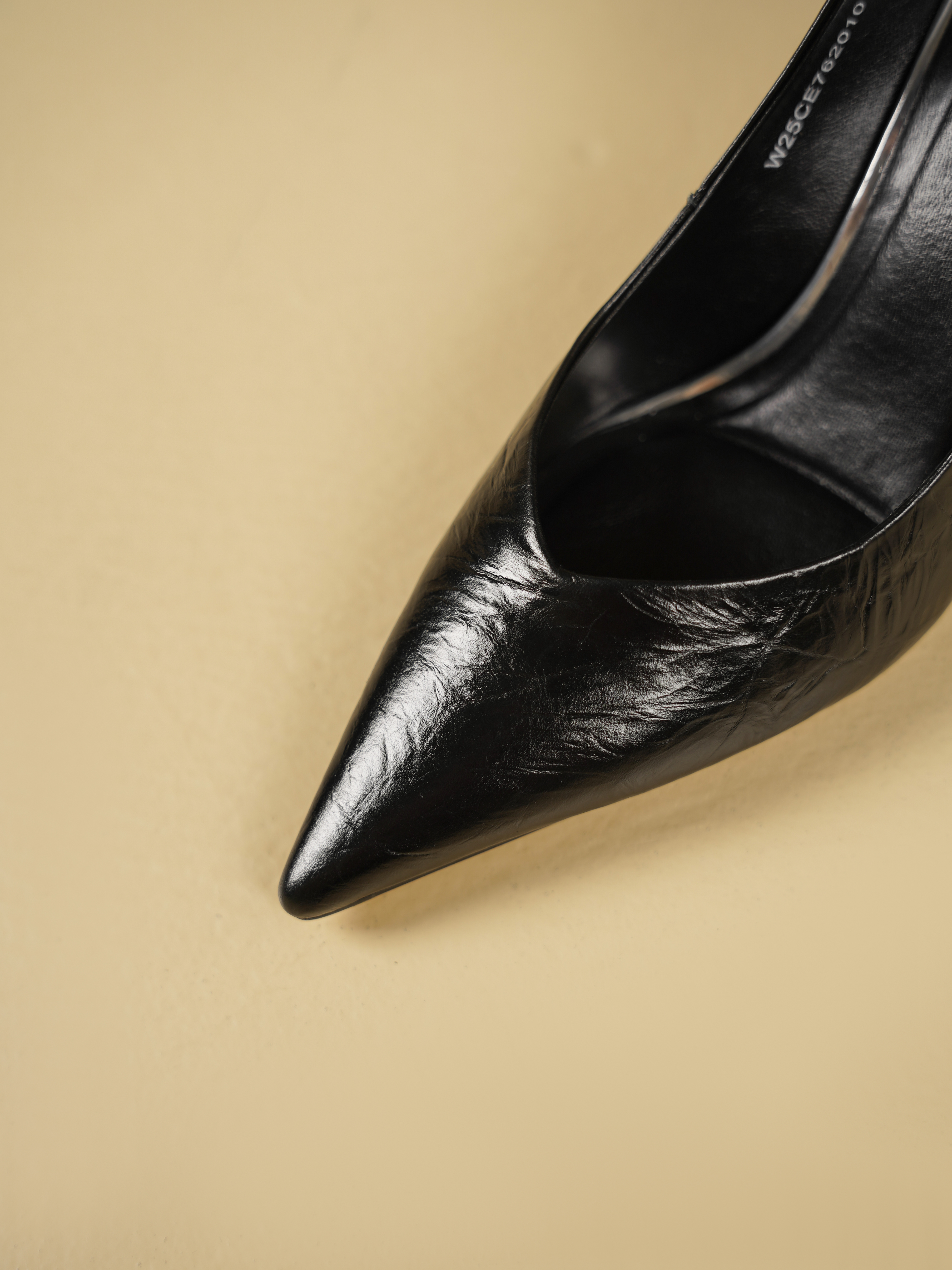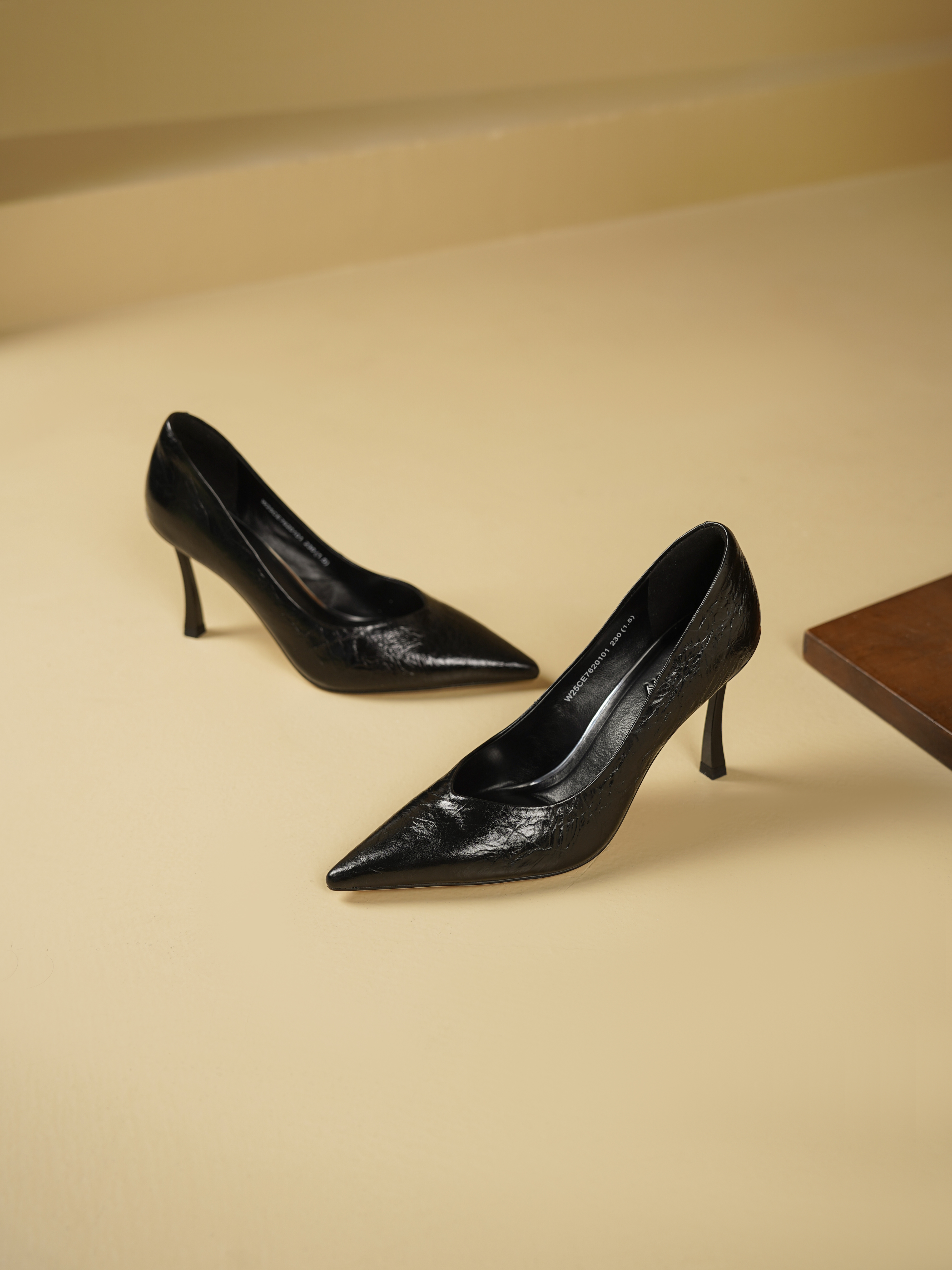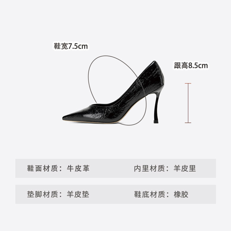 Westory2025年秋季极简尖头高跟软牛皮通勤百搭V口单鞋W25CE76201