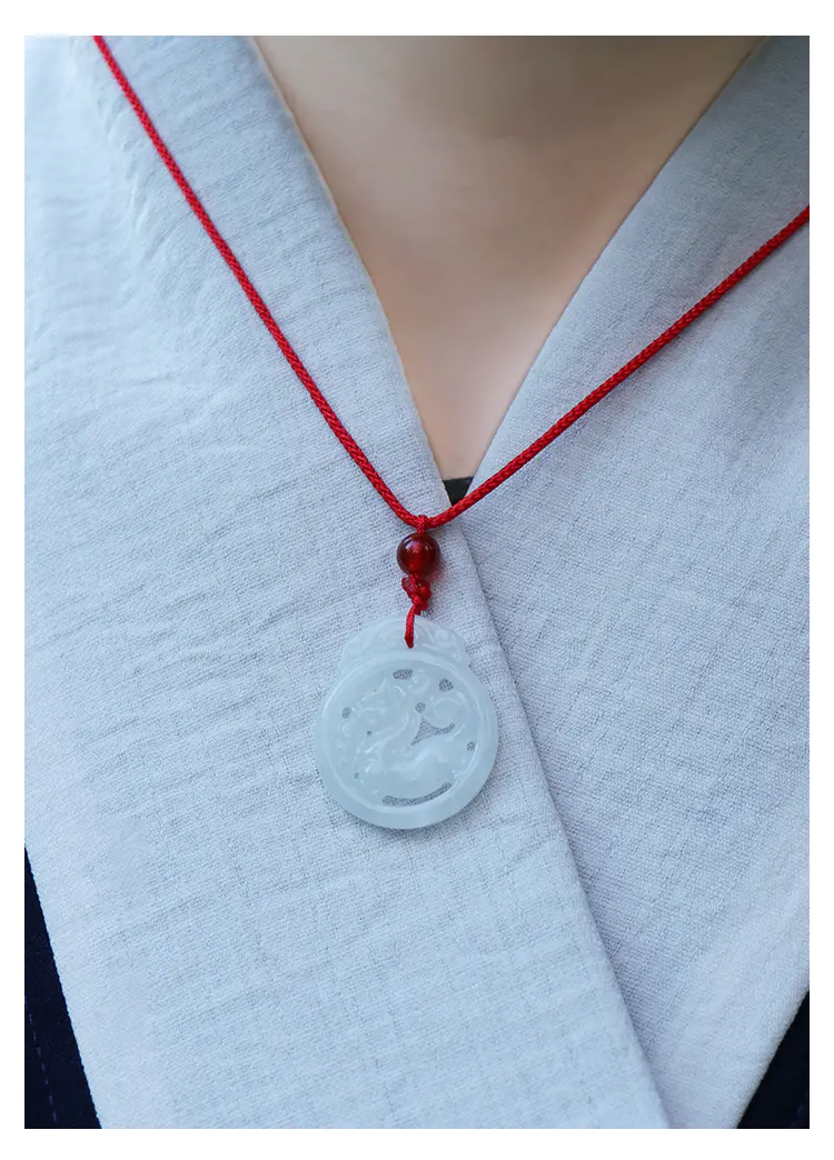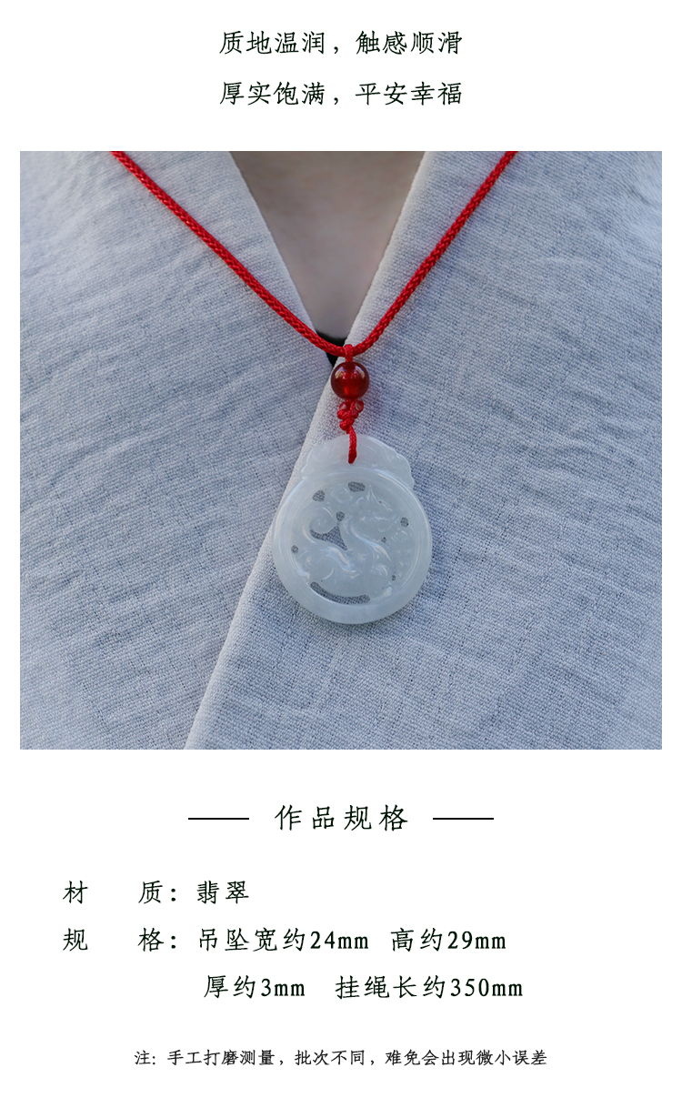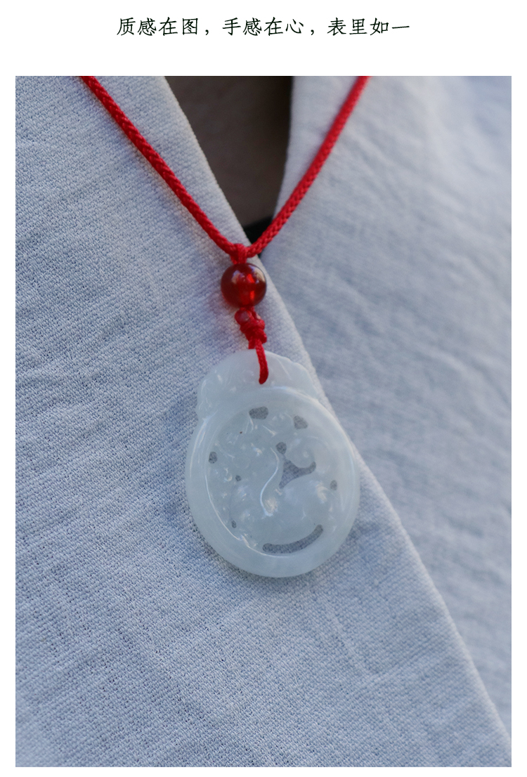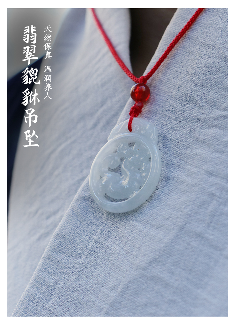 缅甸A货翡翠镂空貔貅吊坠男女新款红挂绳玉石项链