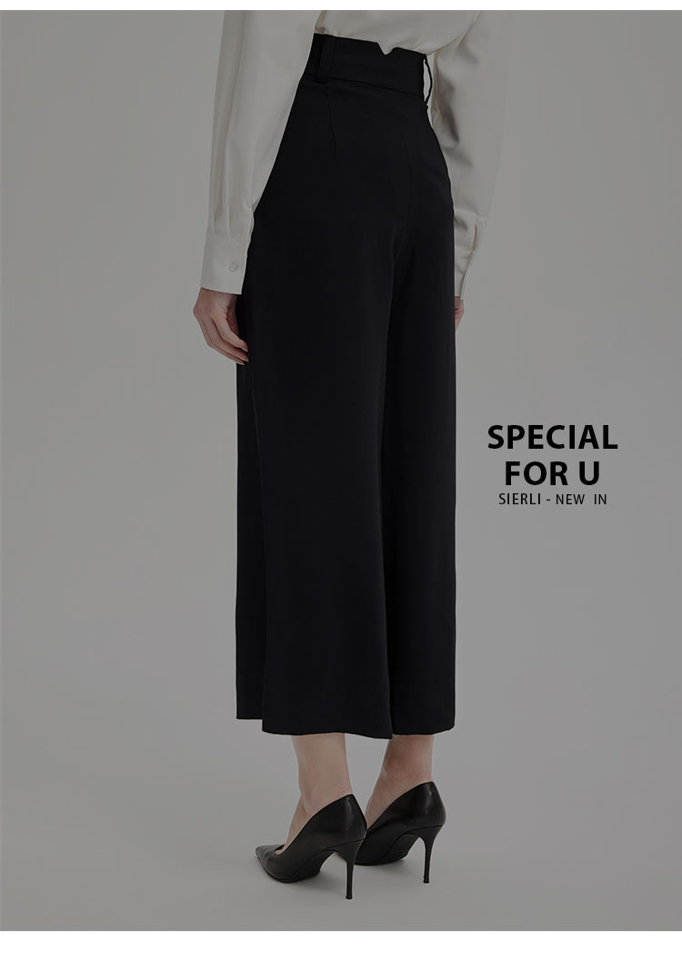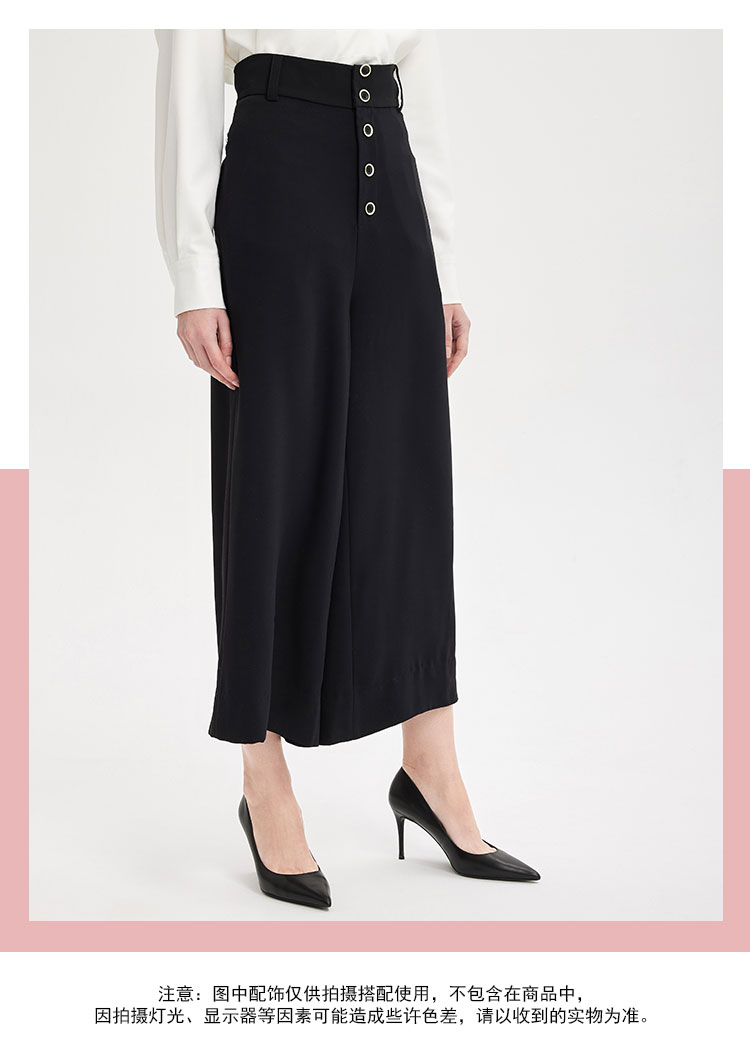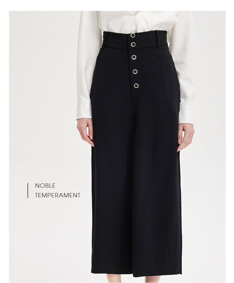 PE3A1斯尔丽夏季新品丝质排扣高腰宽松阔腿裤