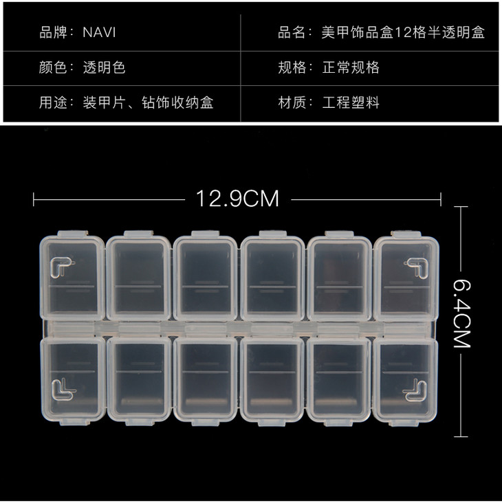 NAVI美甲饰品盒12格半透明盒