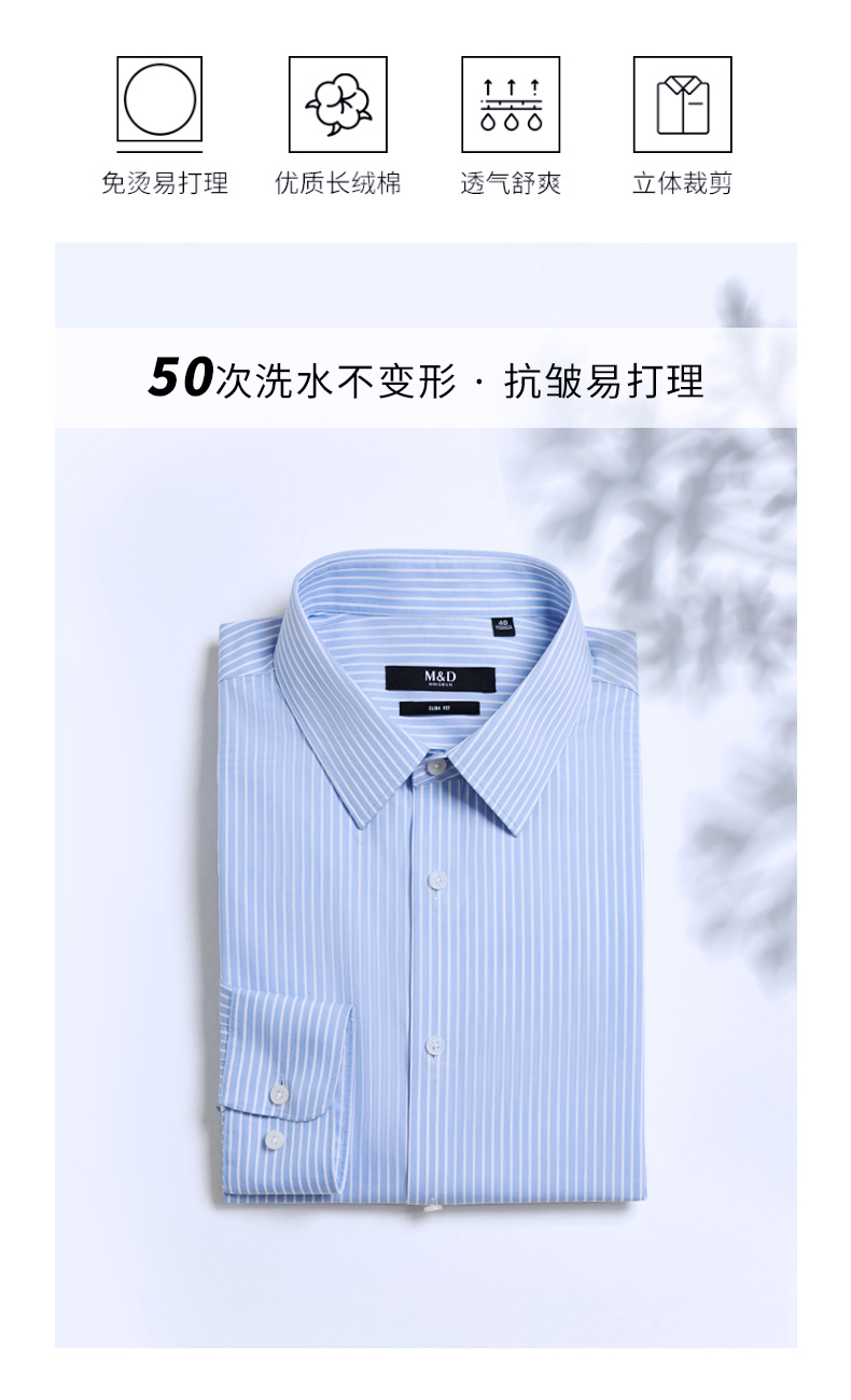 MD名盾长袖衬衫春夏新品男士纯棉DP免烫衬衫商务通勤条纹衬衣
