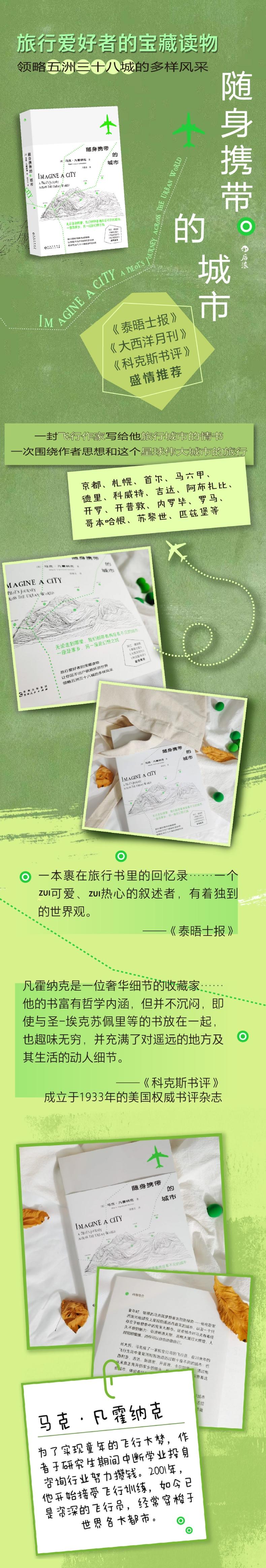 童年时,敏感的马克就梦想着去别处探索——他在卧室的发光地球仪上发现的遥远而真实的城市,以及一个只存在于他想象中的完美大都市。这些城市对马克有着经久不衰的魅力:街道畅通无阻,高楼大厦灯火辉煌,人群熙熙攘攘,而你可以自由地做自己。 长大后,马克成了一家航空公司的飞行员,在20余年的飞行生涯中重复而短暂地造访过数十座不同的城市:巴西利亚、吉达、新德里、开普敦、卡尔加里……透过他从未真正离开的家乡的镜头,他从高处和近处观察着这些城市,体验着这些城市的景色、声音和气味。 在这部作品中,马克用敏锐而富有诗意的语言,将城市的历史、地理、文化和科学,以及他自身迷人的生活回忆和对家乡、旅行、关系的美丽沉思交织在一起,带我们踏上了一段不可思议的旅程。