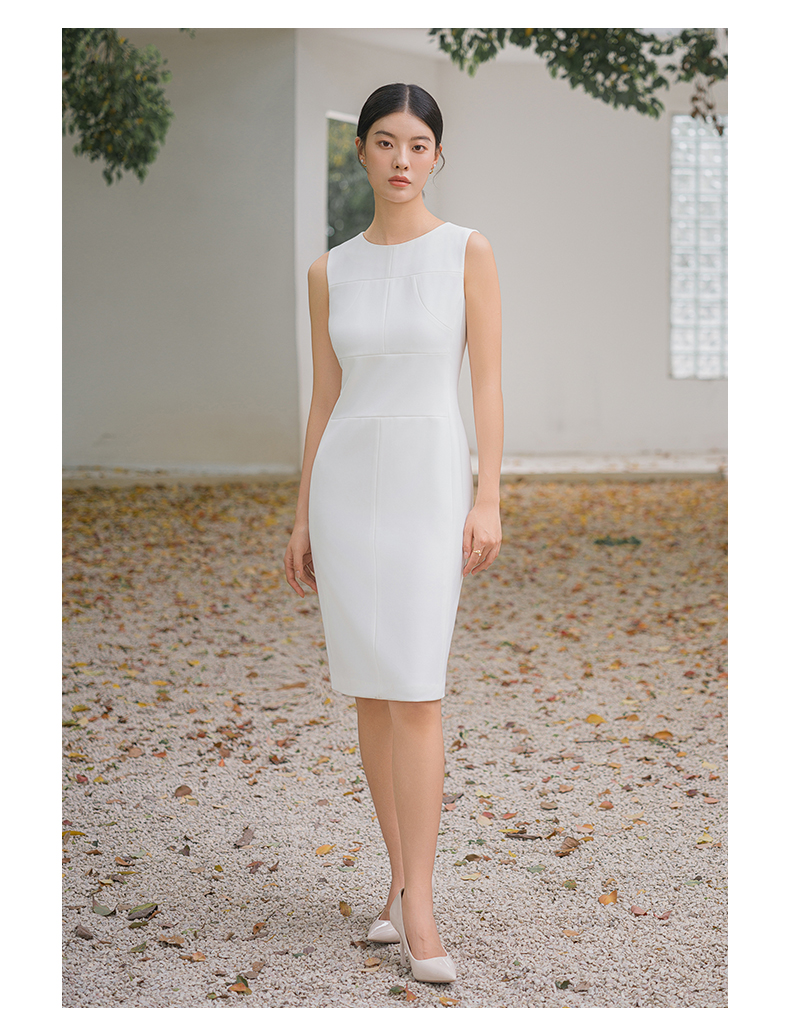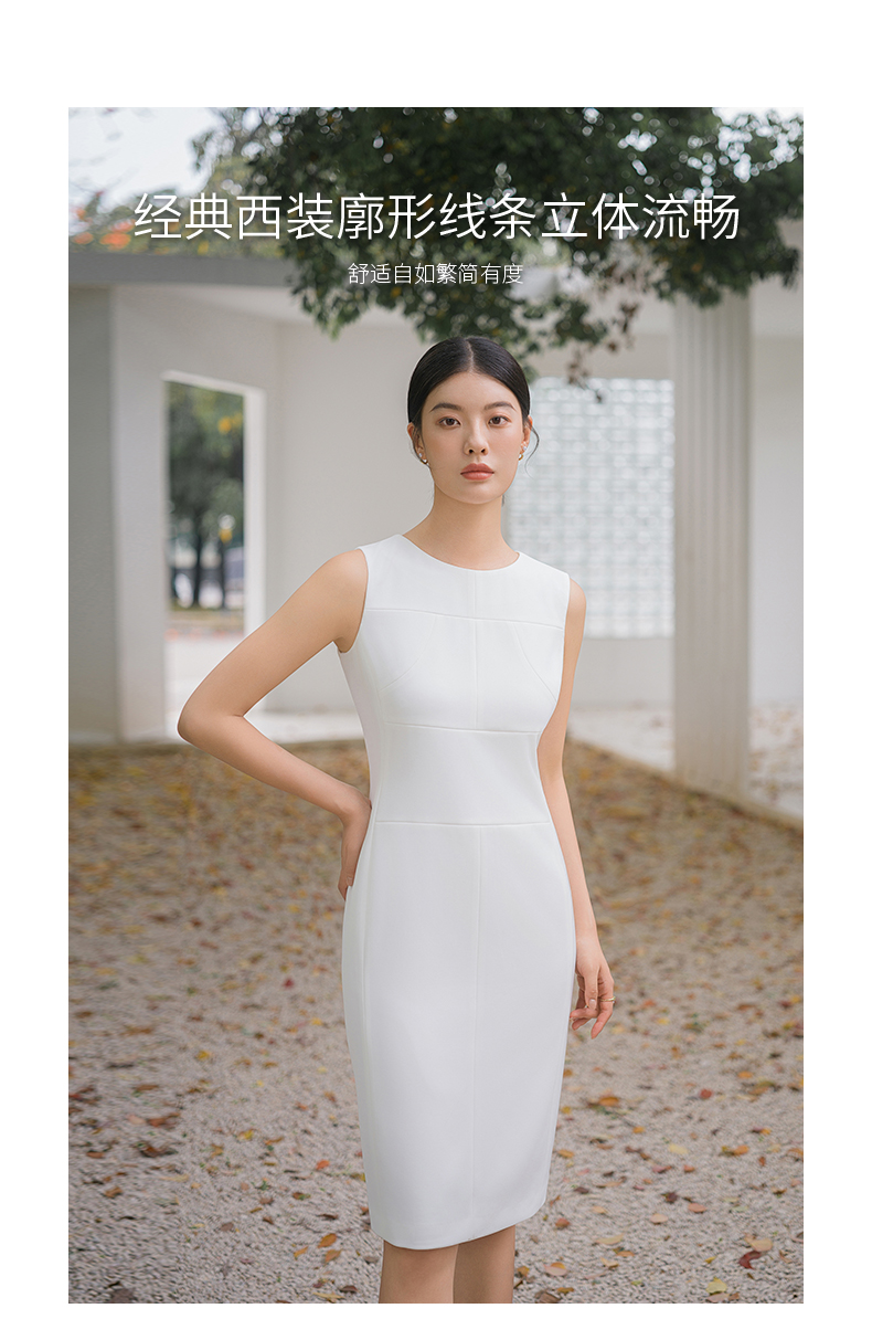 IWY/优雅白领法式连衣裙女夏季无袖西装裙显瘦修身配西装职业装裙Q14259