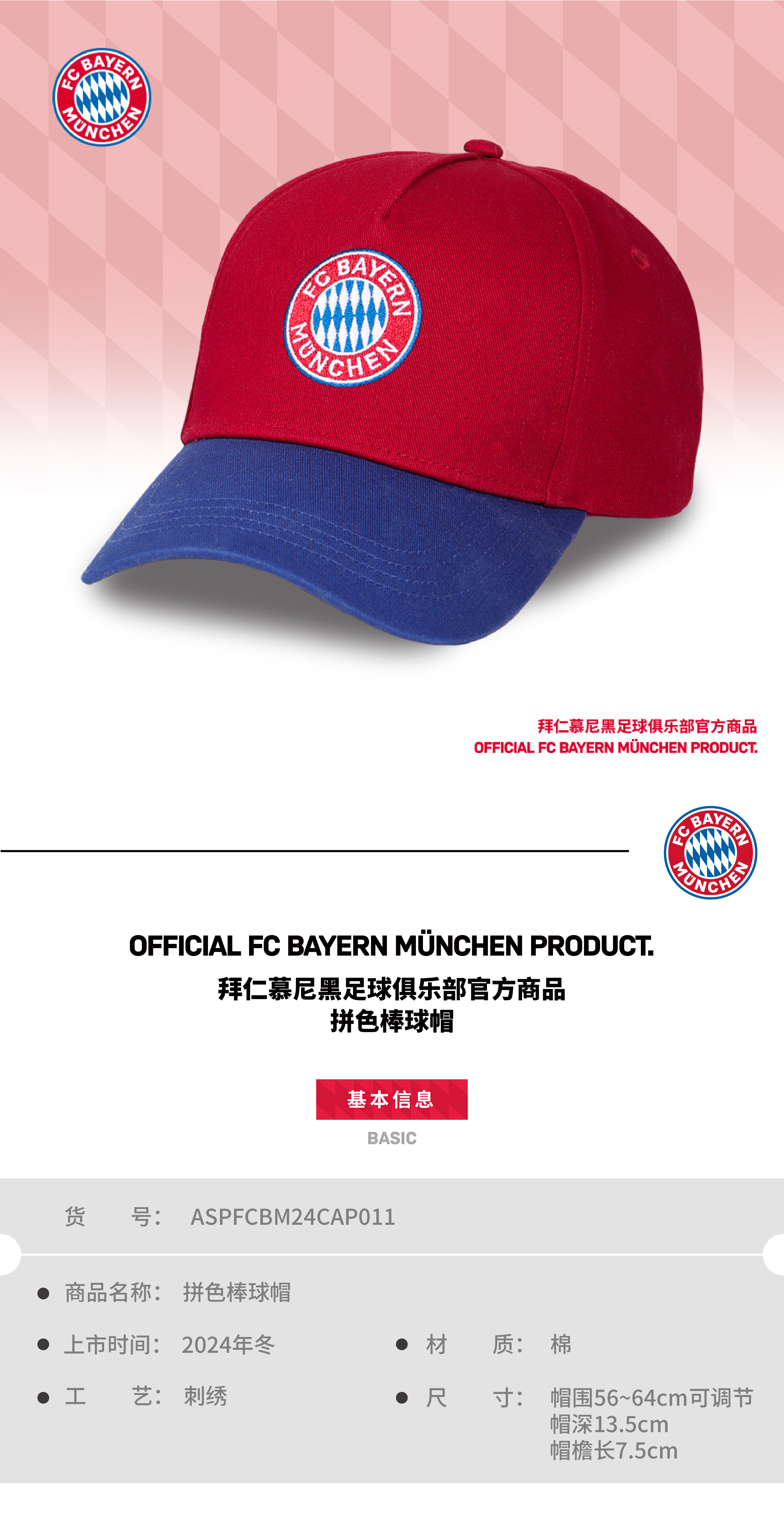 【官方正版】拜仁慕尼黑足球俱乐部|拼色棒球帽球迷队徽刺绣帽子