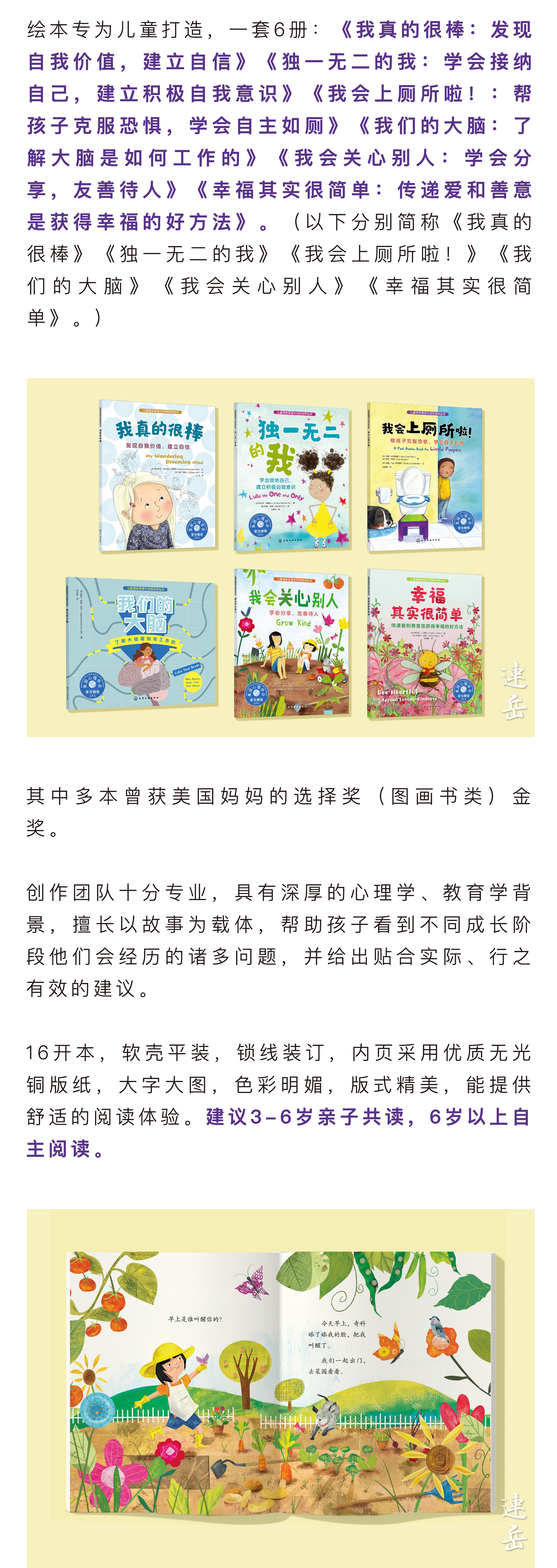 发现自我价值系列-儿童情绪管理与性格培养(共6册):《我真的很棒》《独一无二的我》《我会上厕所啦!》《我们的大脑》《我会关心别人》《幸福其实很简单》