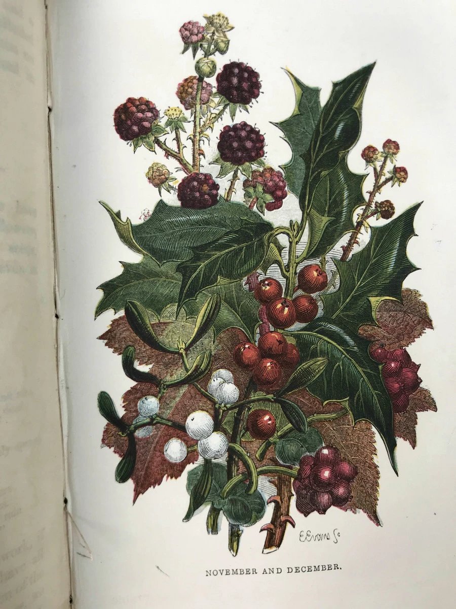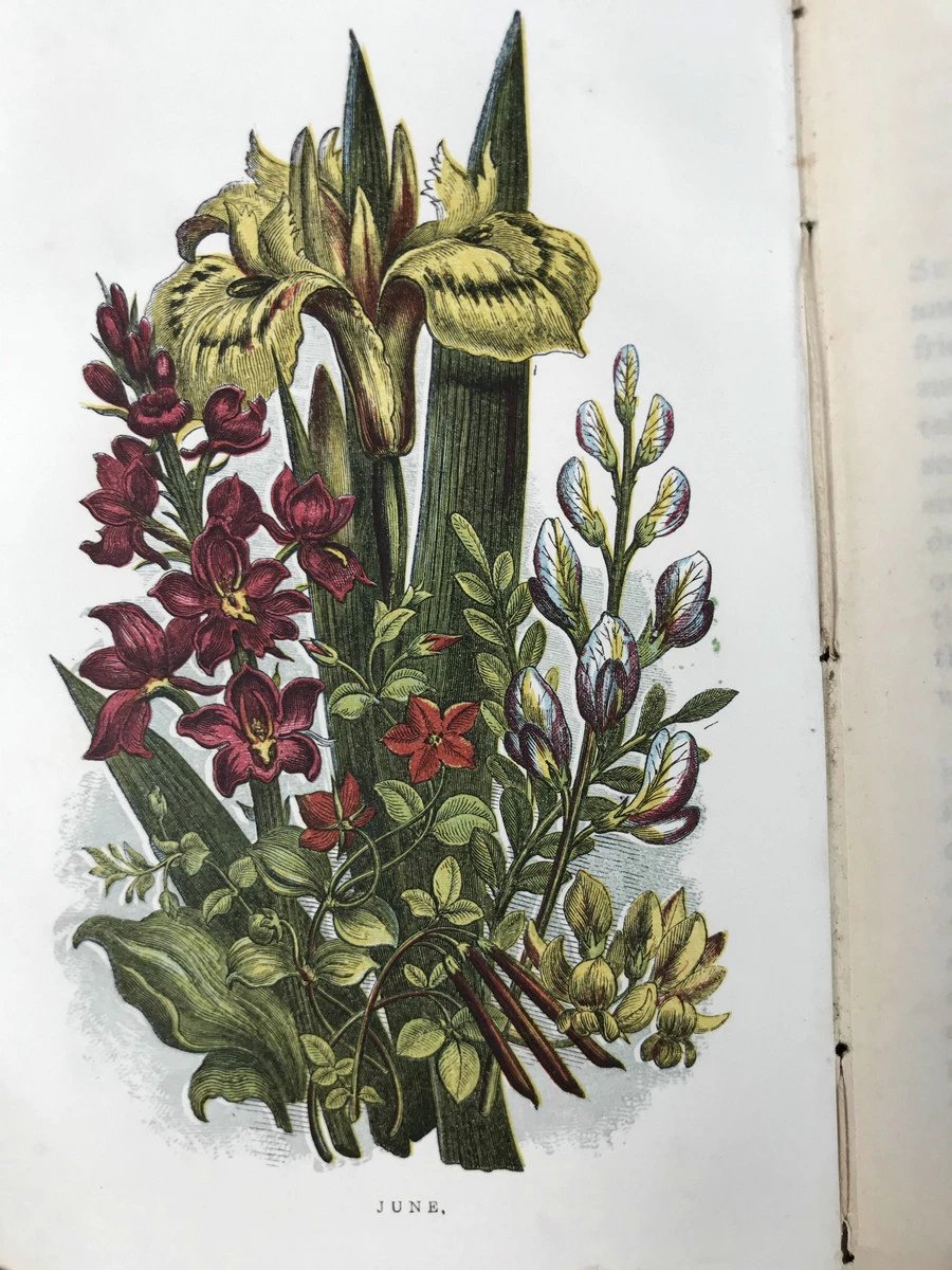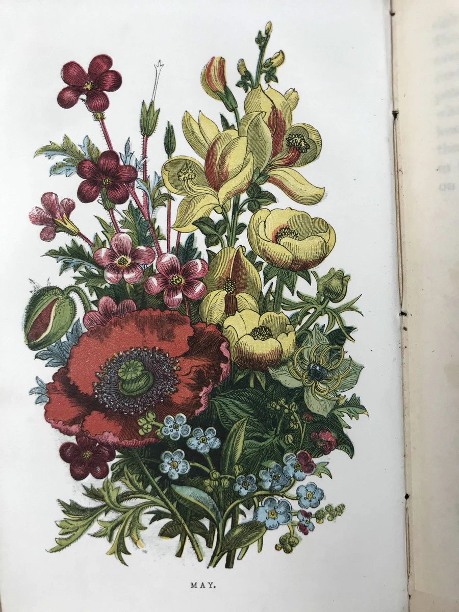 1859年 野花图鉴 8页套色版画171幅黑白版画插图 漆布精装64开