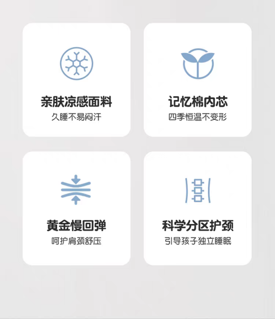 此款产品达到A类婴幼儿用品安全 加工过程不添加甲醛,荧光剂等有害物质 亲肤无刺激,全家都可以使用 优选云感裸肌材质,包裹枕芯更亲肤软糯 零距离感受慢回弹,吸湿不粘腻