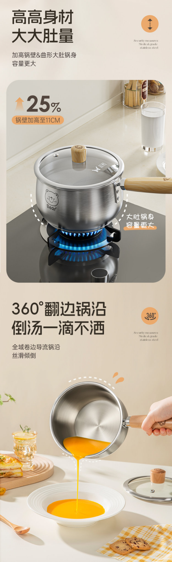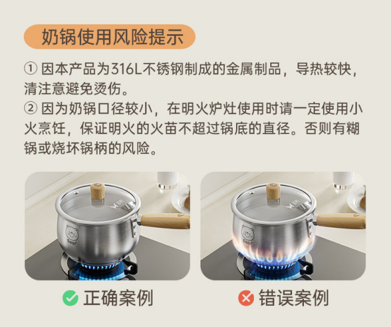 🌟【双枪316L不锈钢奶锅】✅1.316L医用级不锈钢,健康0涂层❤️ 2.双重权威检测,食品接触级✅