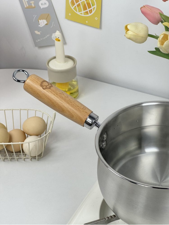 🌸细节里的小美好 🔍这款奶锅在细节上也做得非常出色 它采用了加长手柄防烫设计 榉木是舒适自然的天选好材质 榉木的纹理柔和而温暖 给人一种自然之美 榉木木质坚硬而稳定,耐腐蚀性强 还具有天然的清新香气 因此很多厨用工具把手都选用榉木