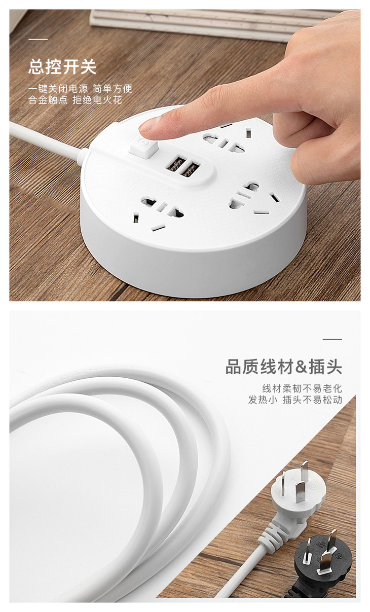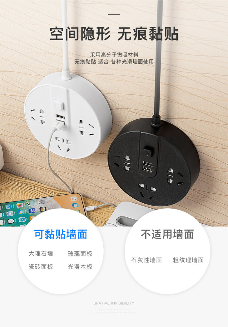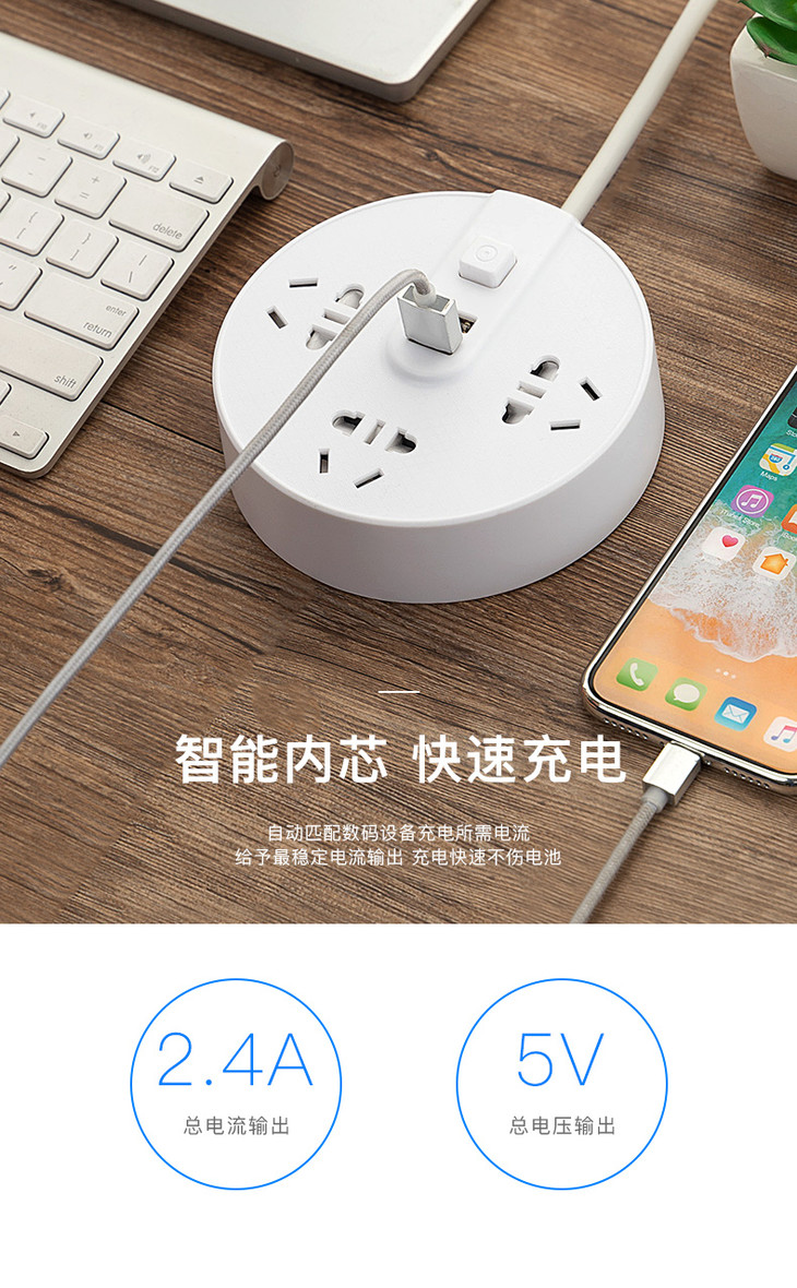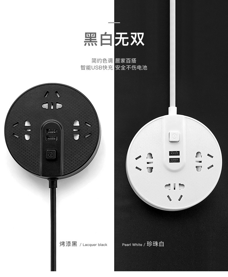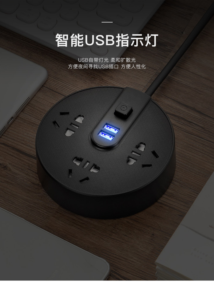 创意插线板USB快充自带指示灯送小夜灯(小夜灯颜色随机)1810-4