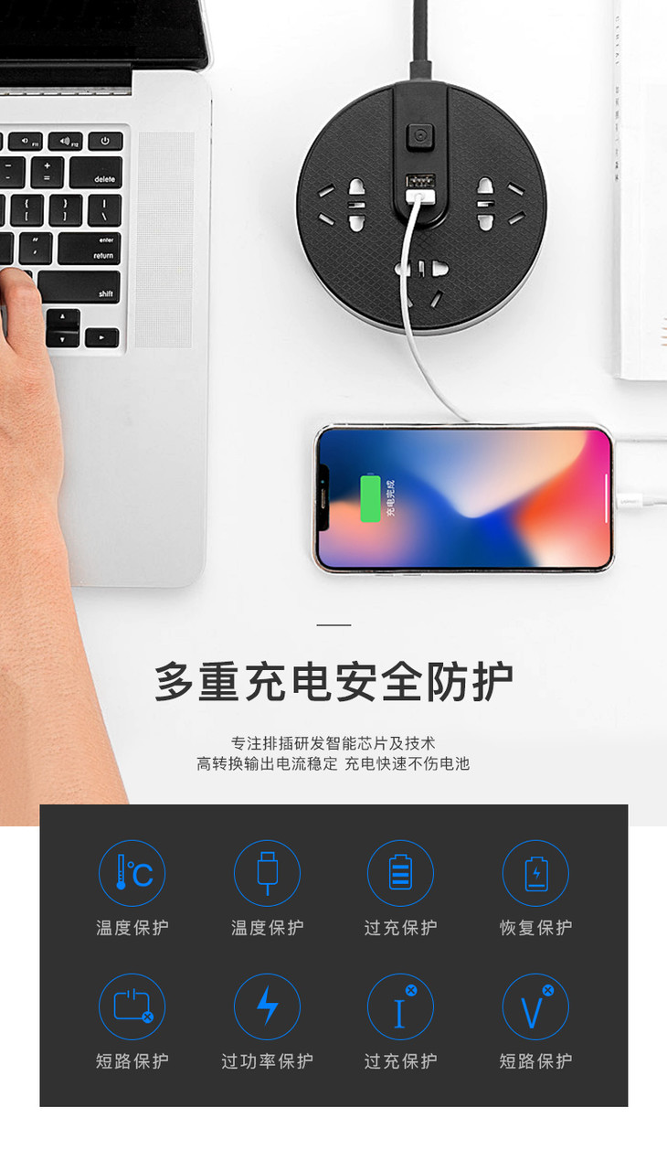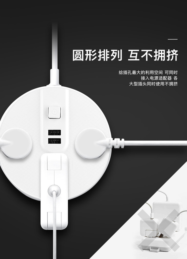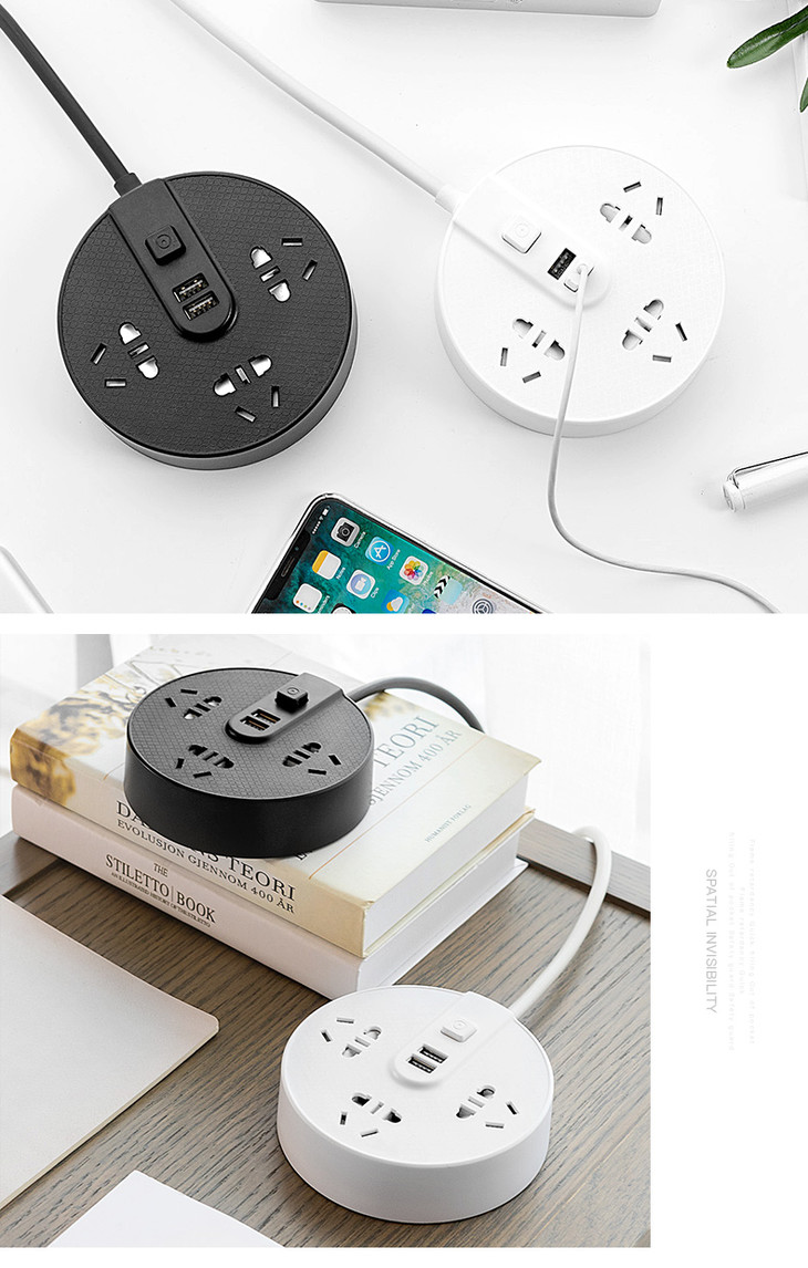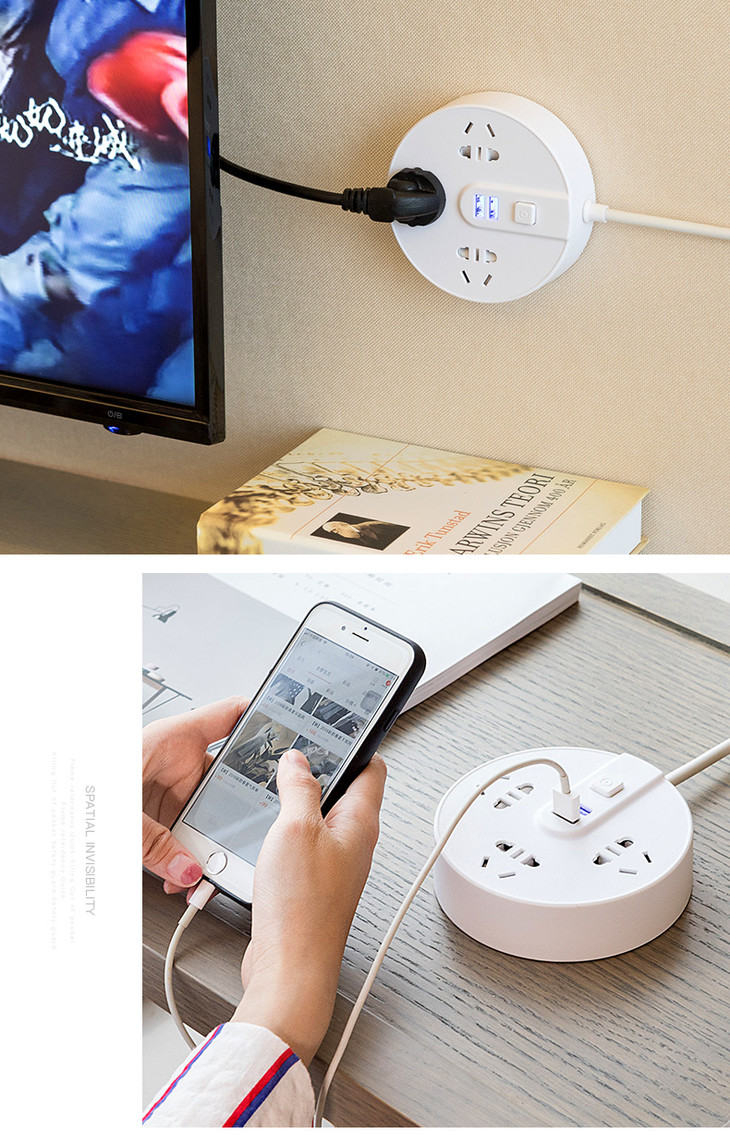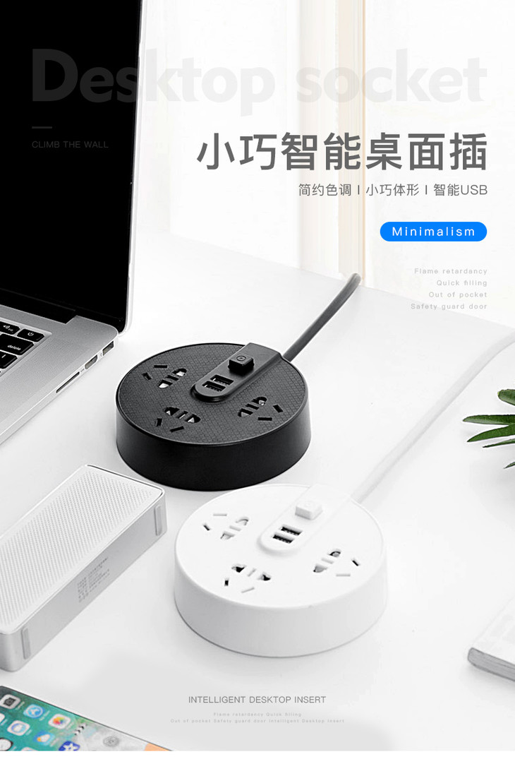 创意插线板USB快充自带指示灯送小夜灯(小夜灯颜色随机)1810-4